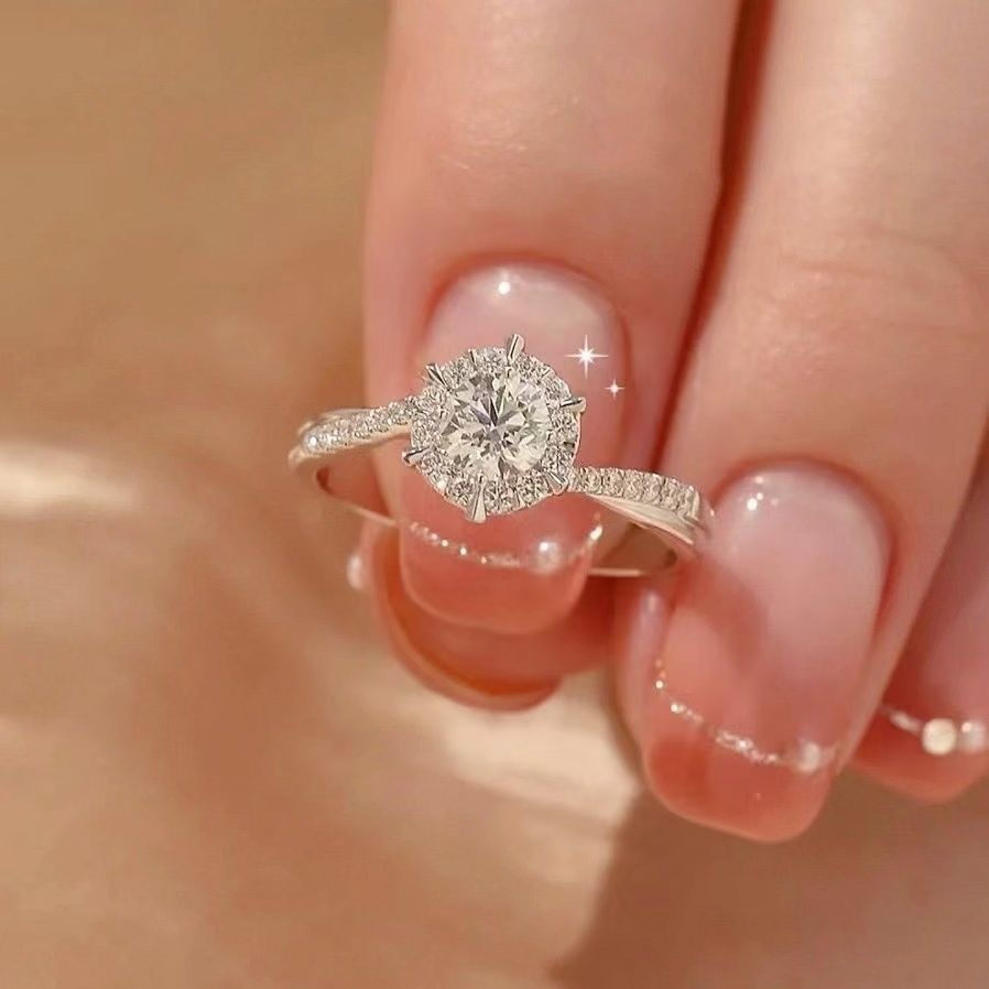 Brilliant fashion design flash diamond six-pointed star ring women's high-end sense simple elegant index finger ring wholesale generation