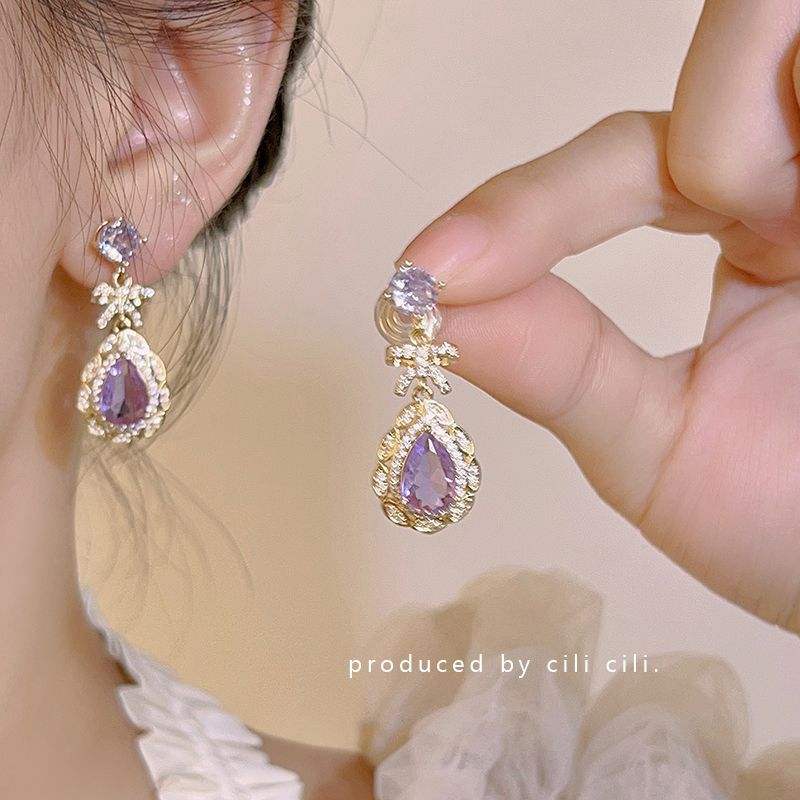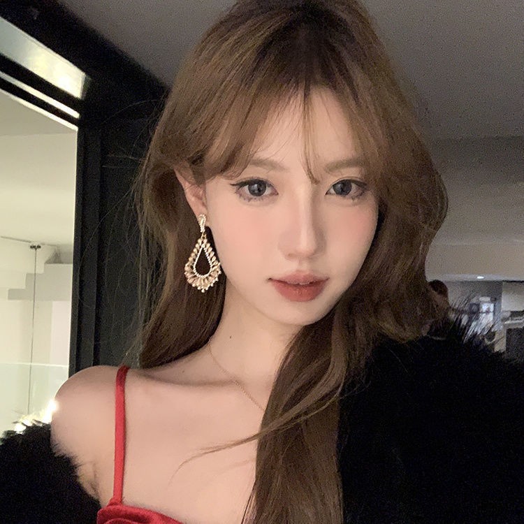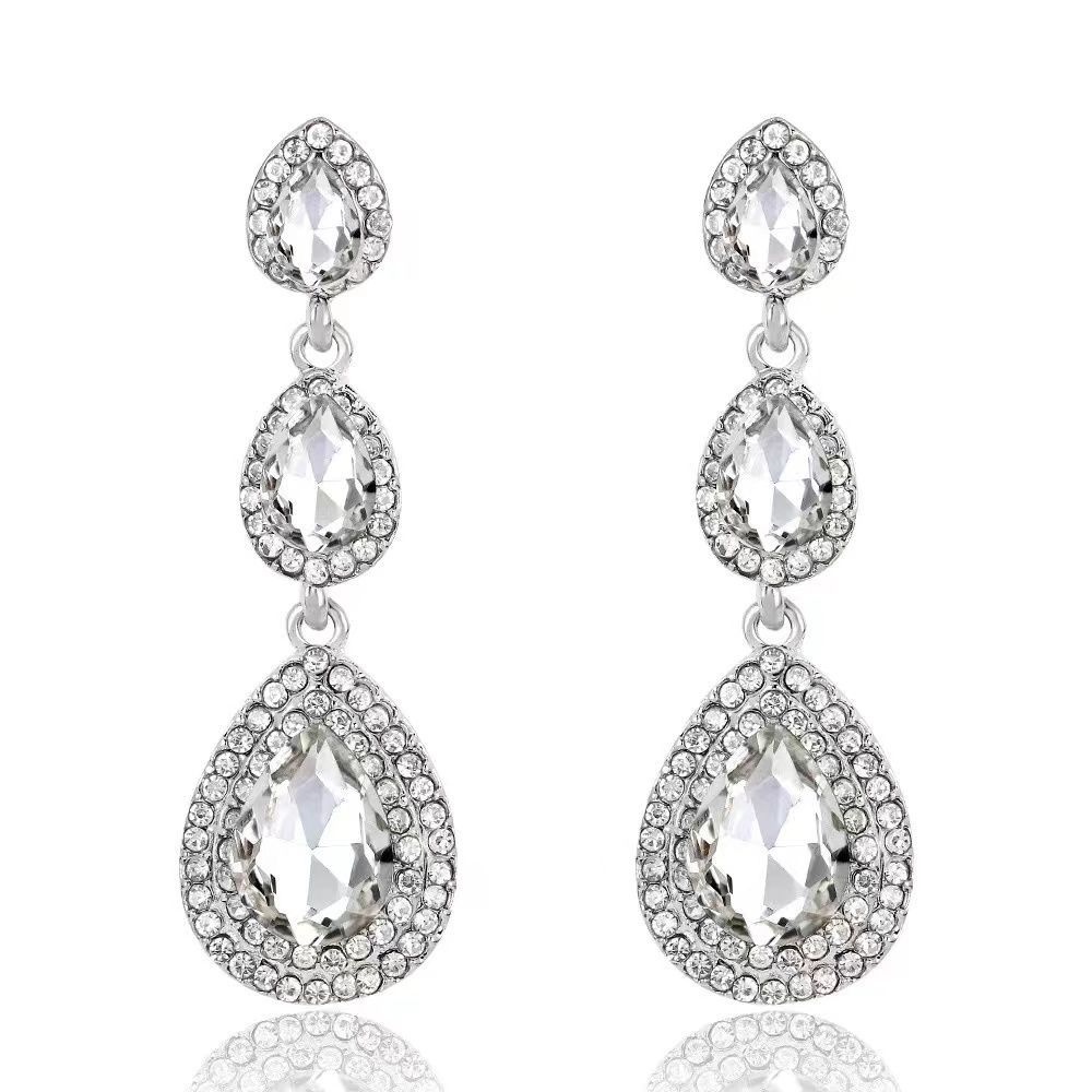Color: 3#1 pair of earrings-full diamond long water drop d284