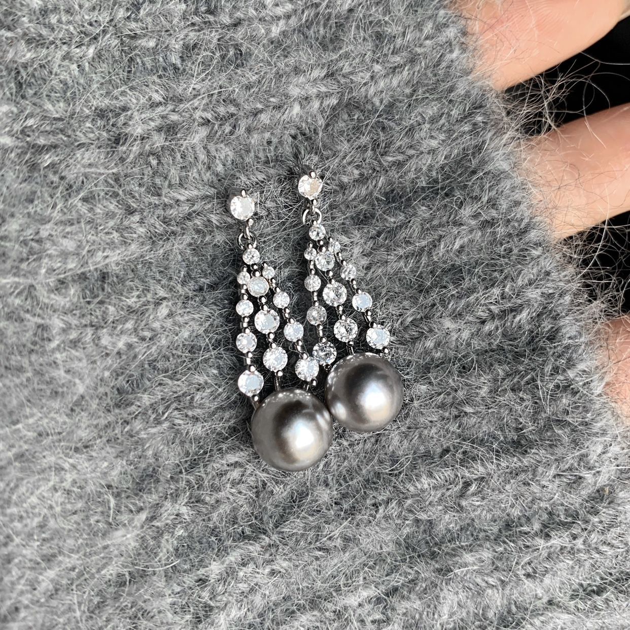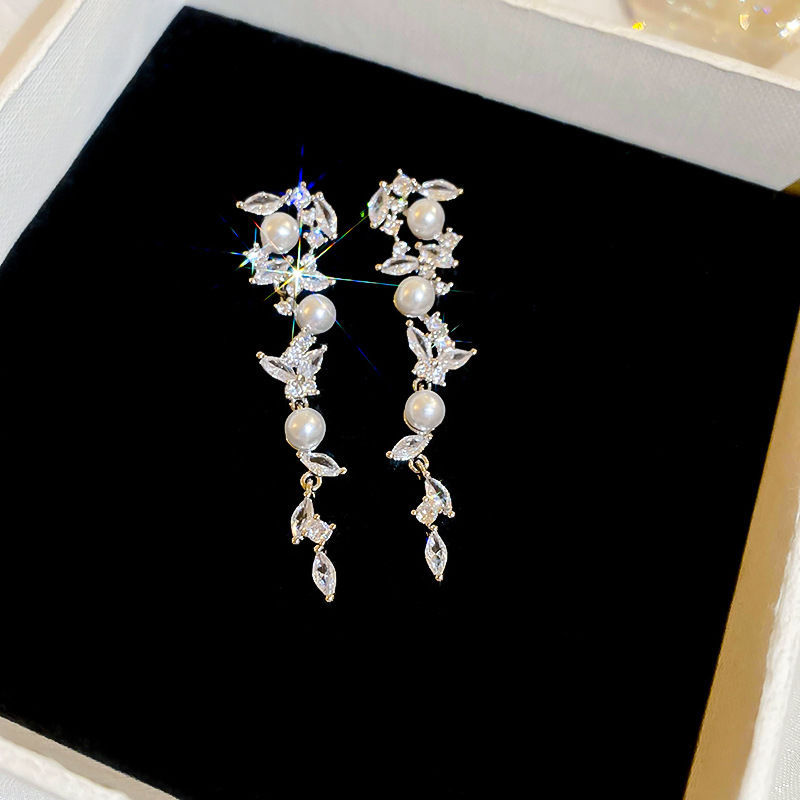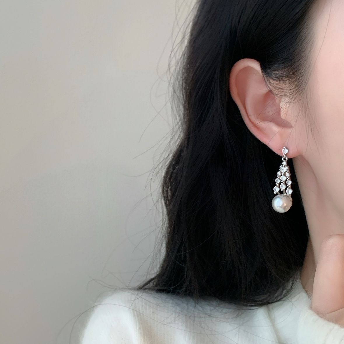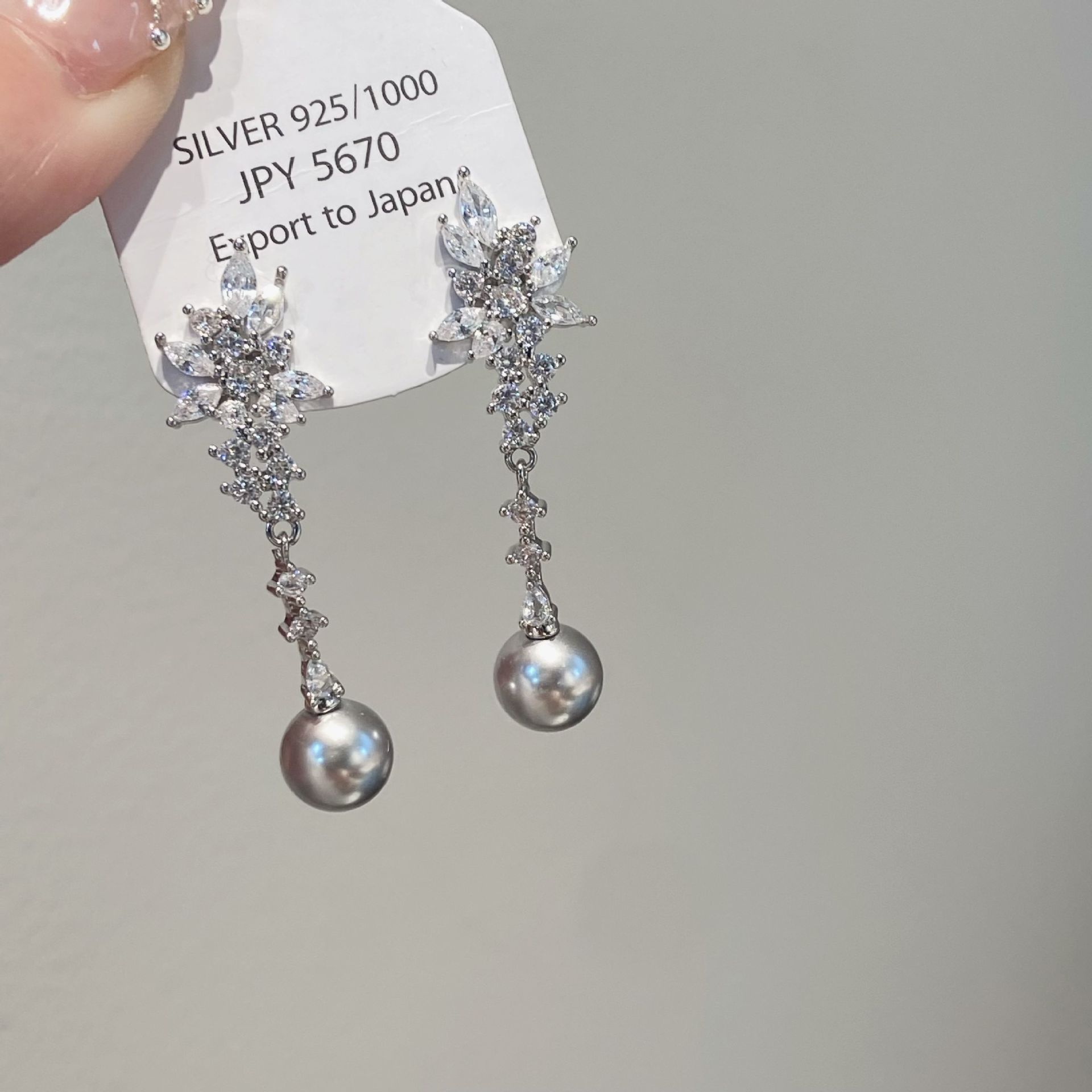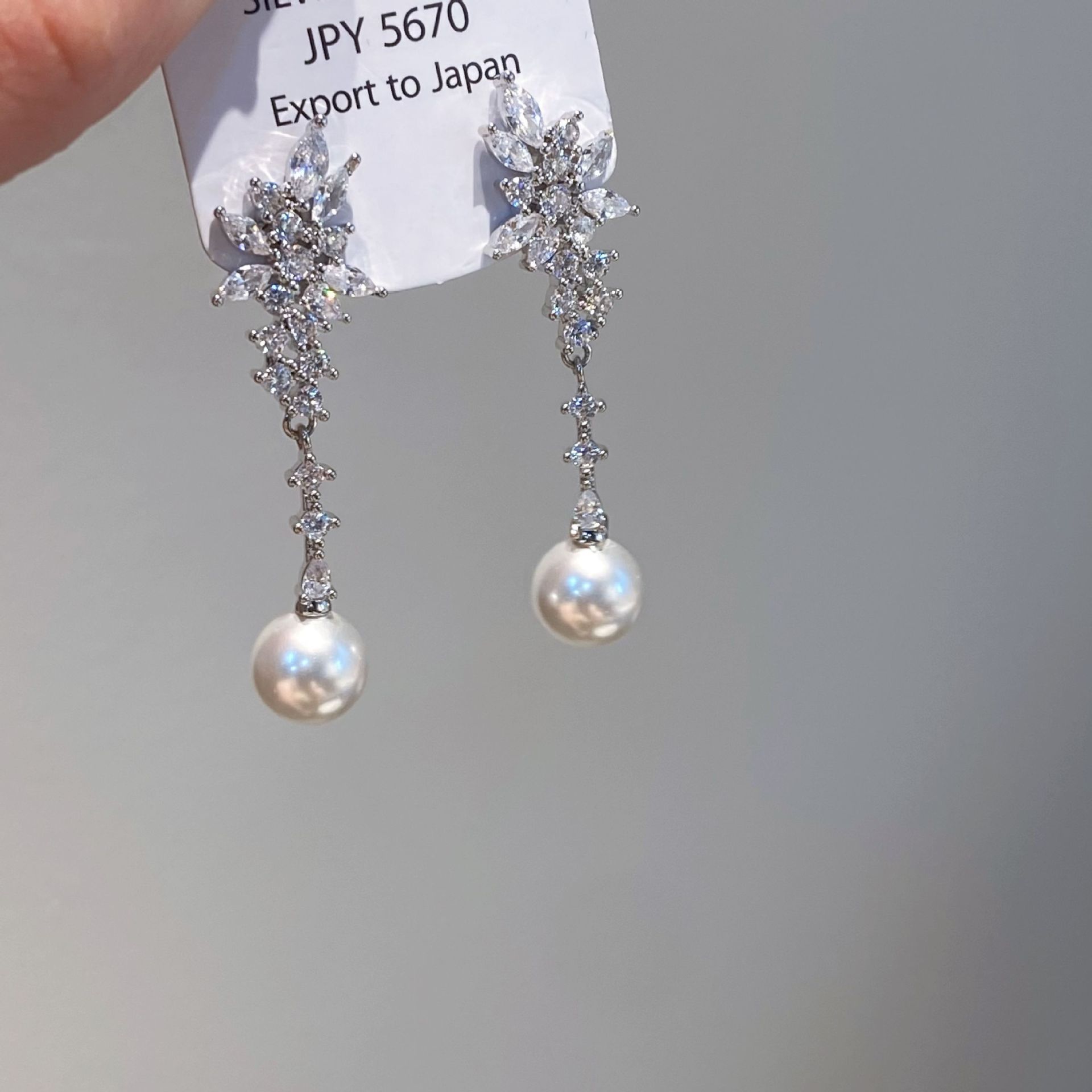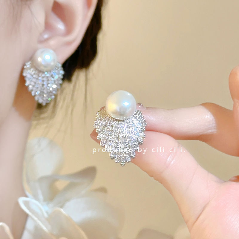 Color: 6#1 pair of earrings-full diamond pearls d287