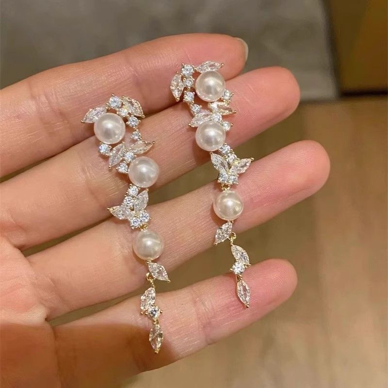 Color: 5#1 pair of earrings-gold-pearl inflorescence d286