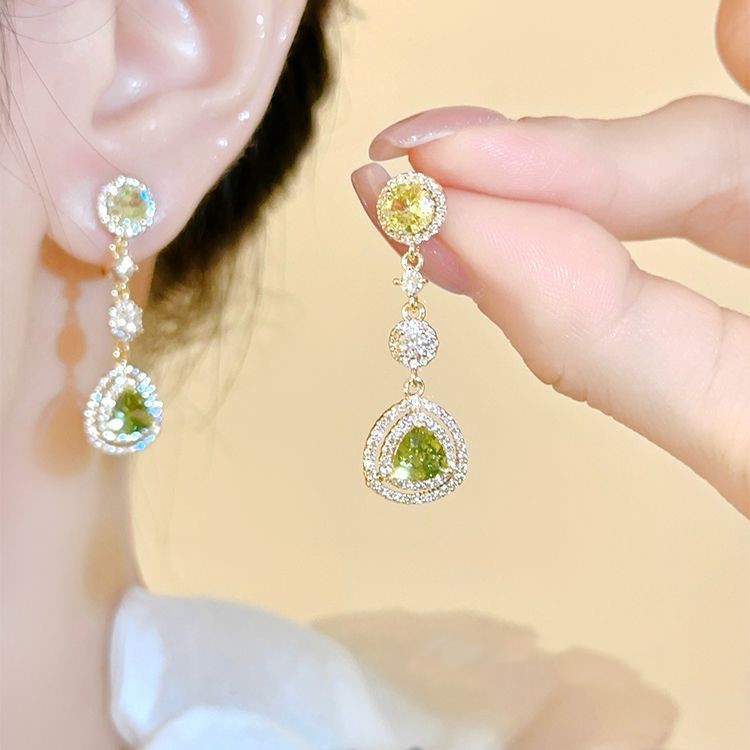 Color: 12#1 pair of earrings-olive green full diamond d297