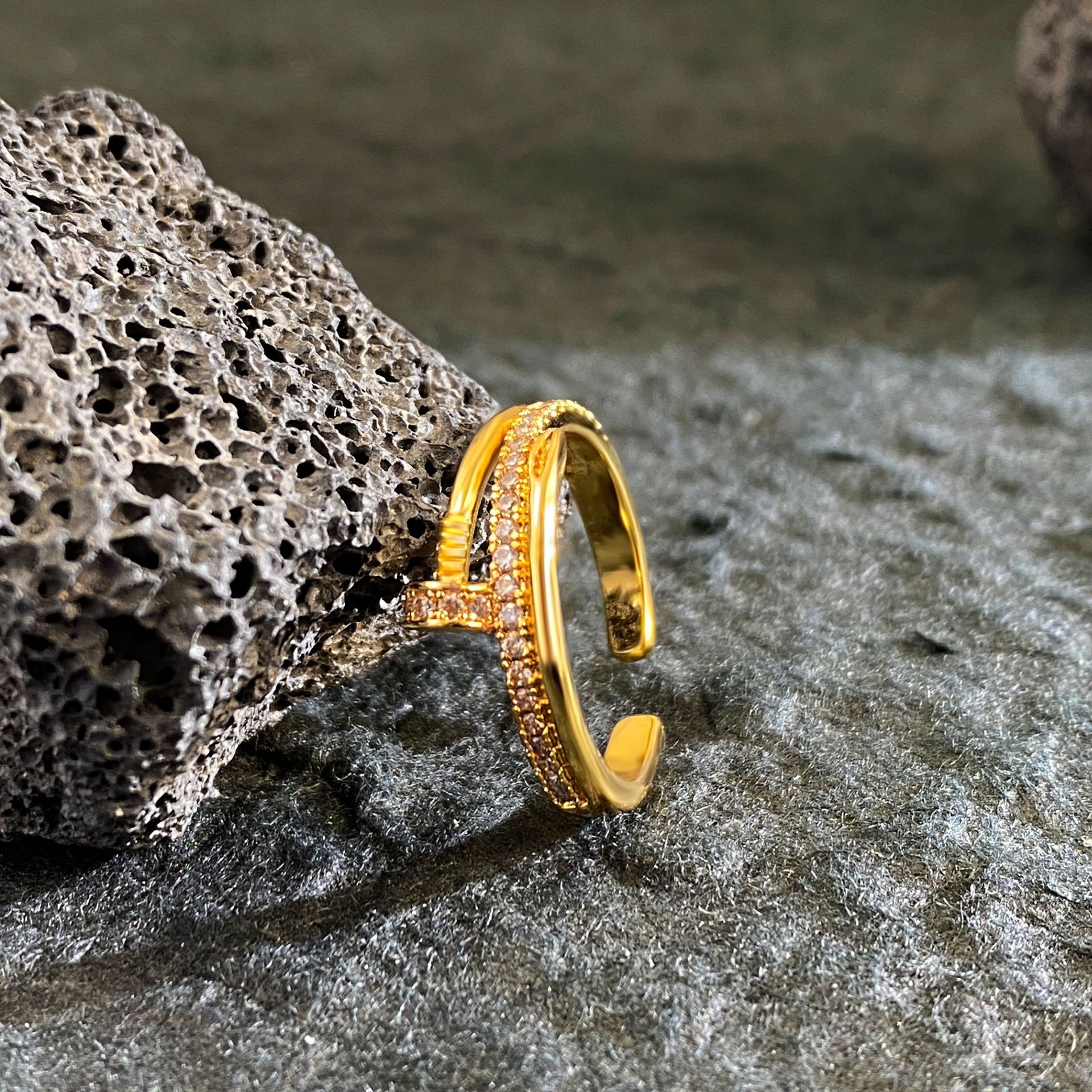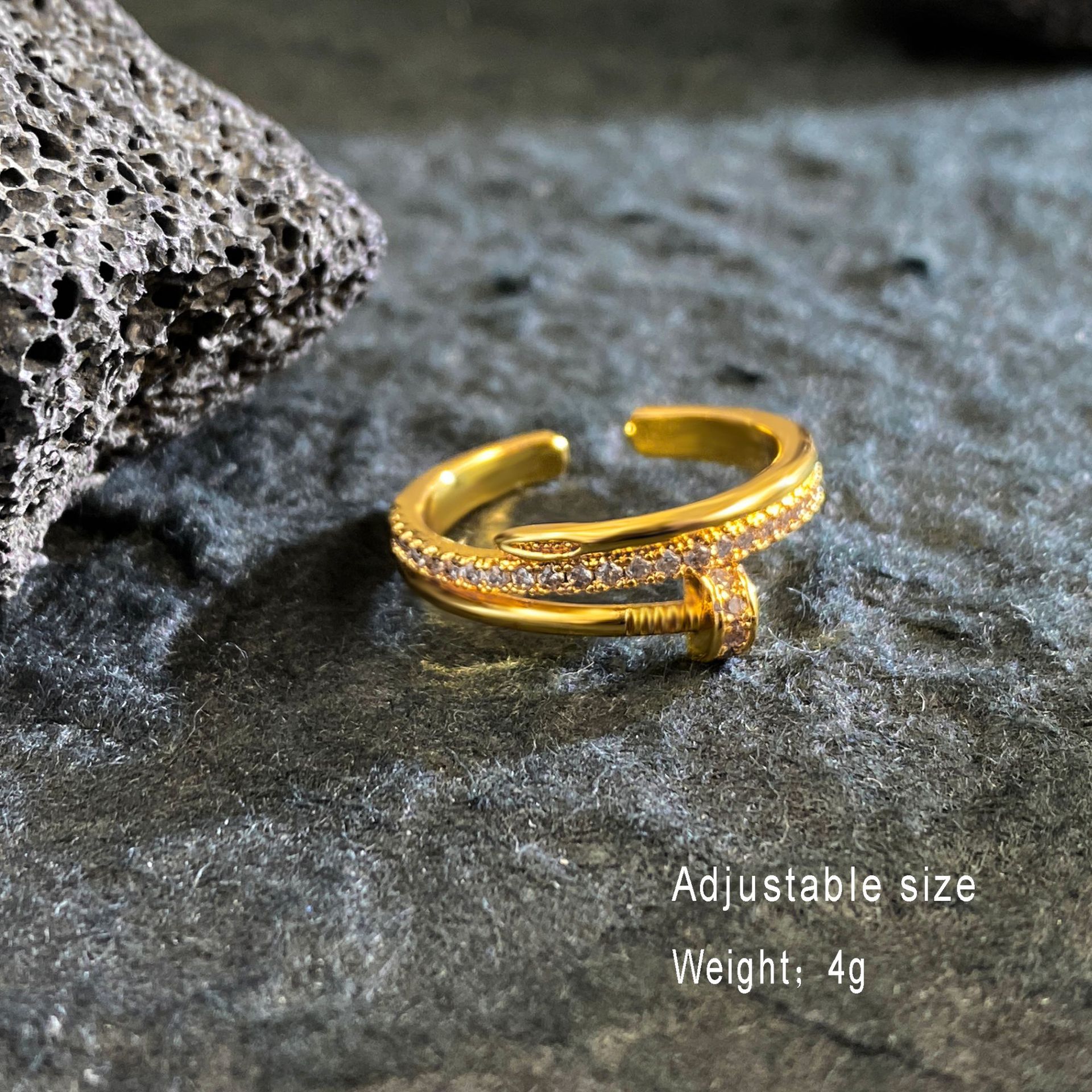 Color: Gold-full zirconium nail open ring