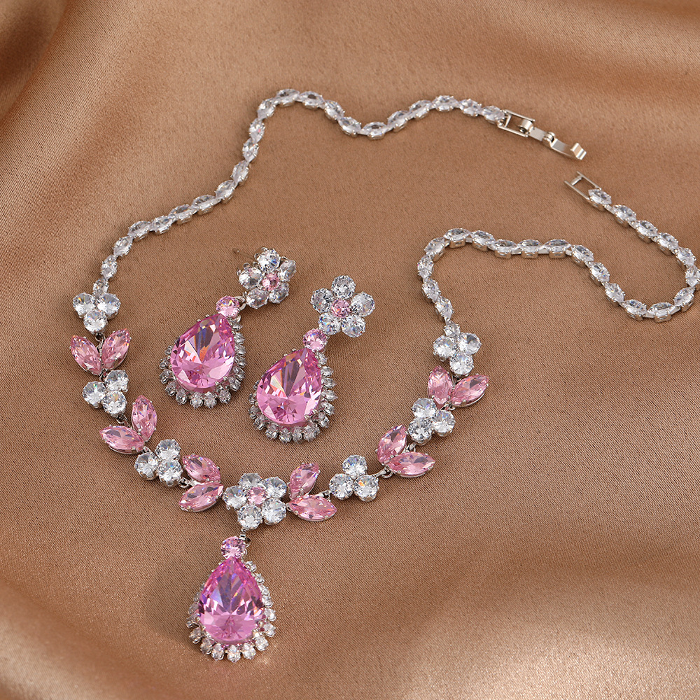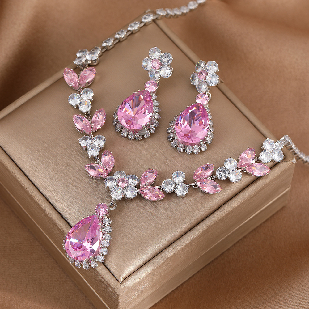 European and American Zircon Water Drops Light Luxury Necklace 2024 New Elegant Commuter Two-piece Set Collarbone Chain All-match Fashion Necklace