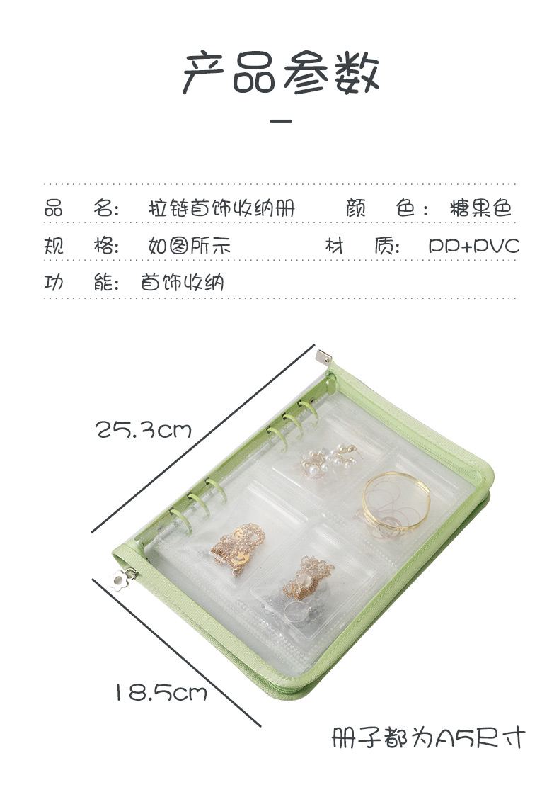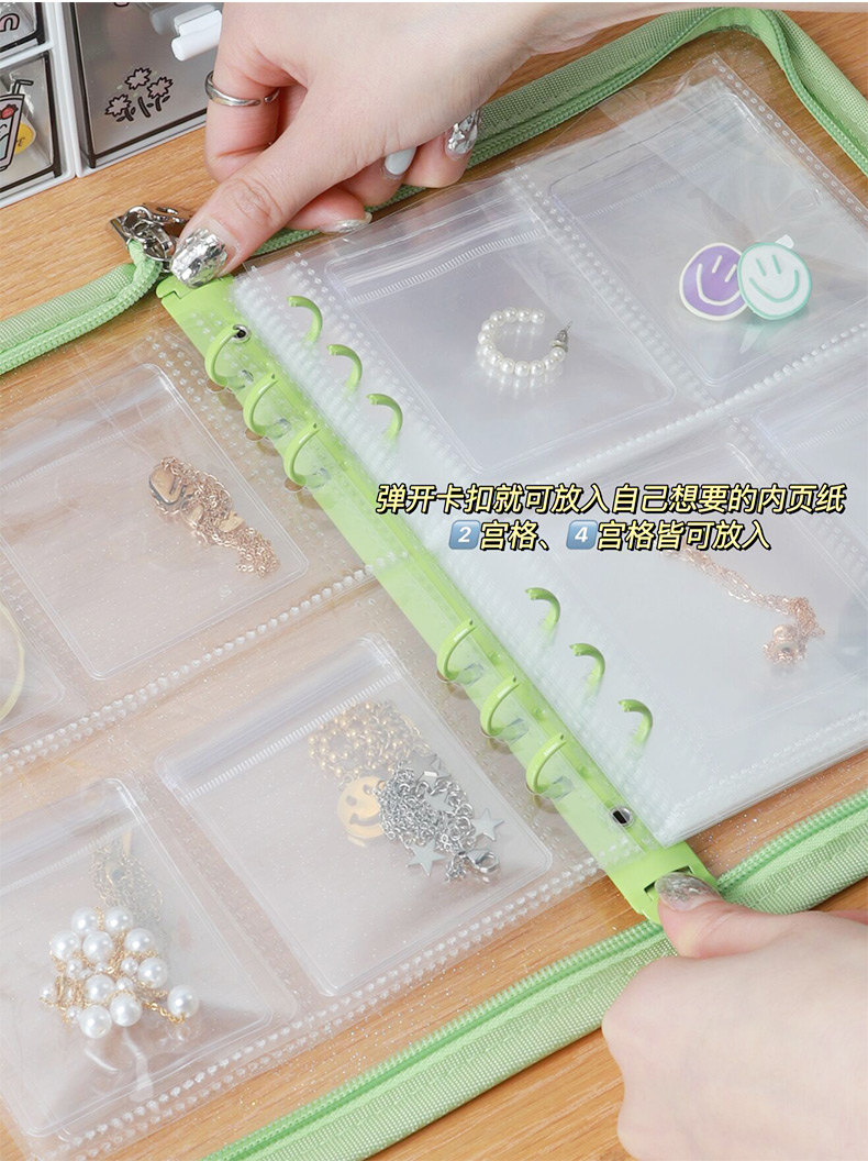 Color: Zipper style green*1 (4 grids, 80 card slots, can store rings, earrings, etc.)