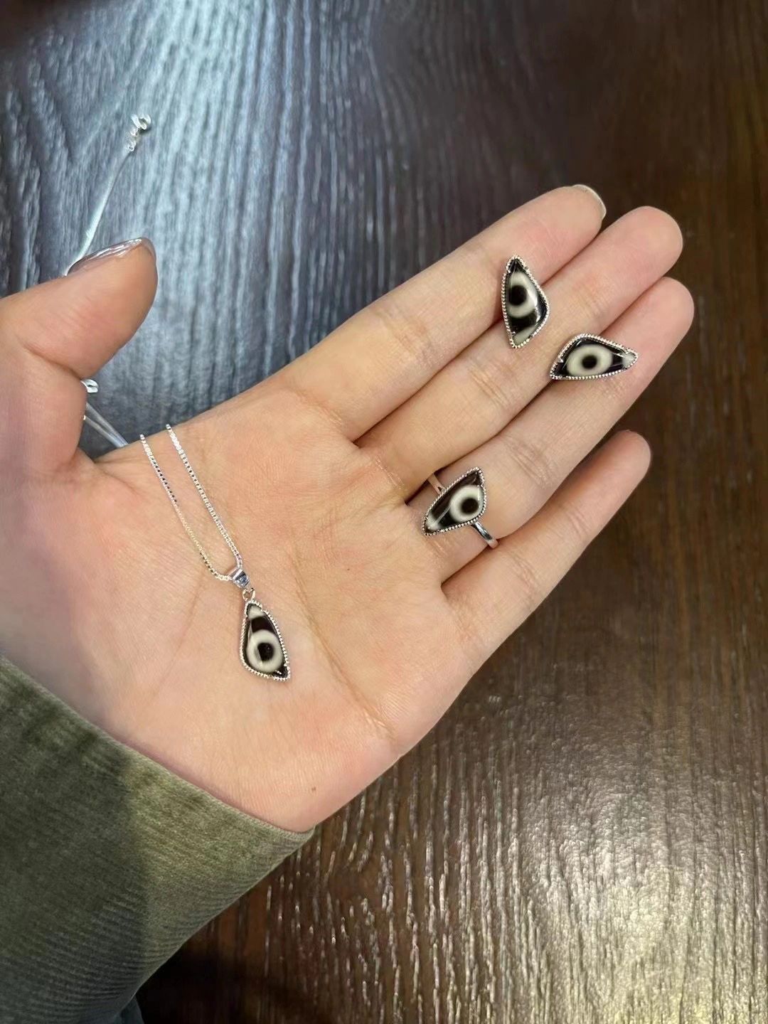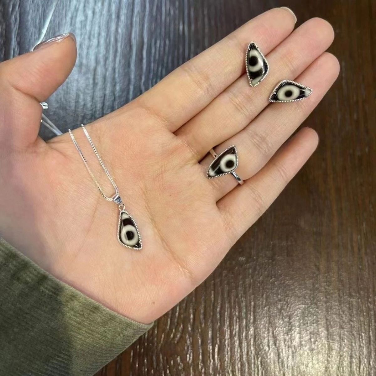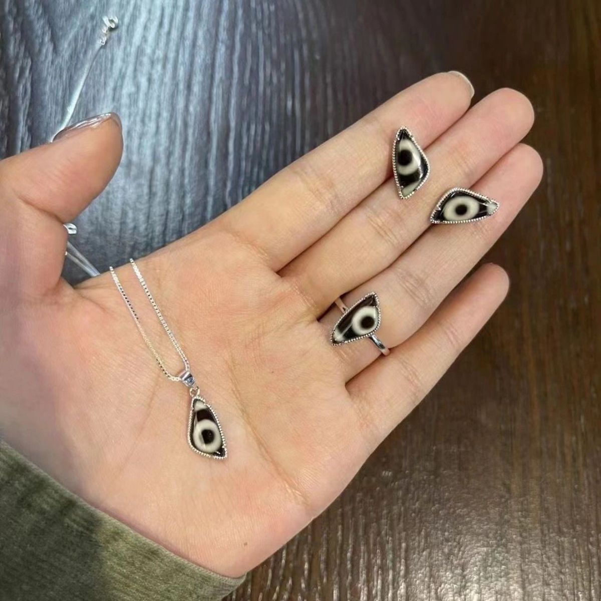 Xizang ethnic style inlaid artificial beads ring necklace earrings suit women's retro ethnic style jewelry all-match