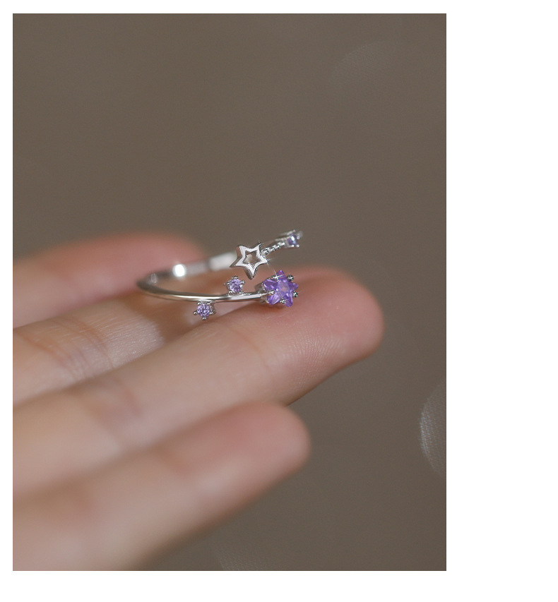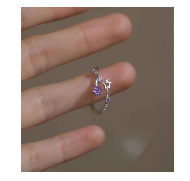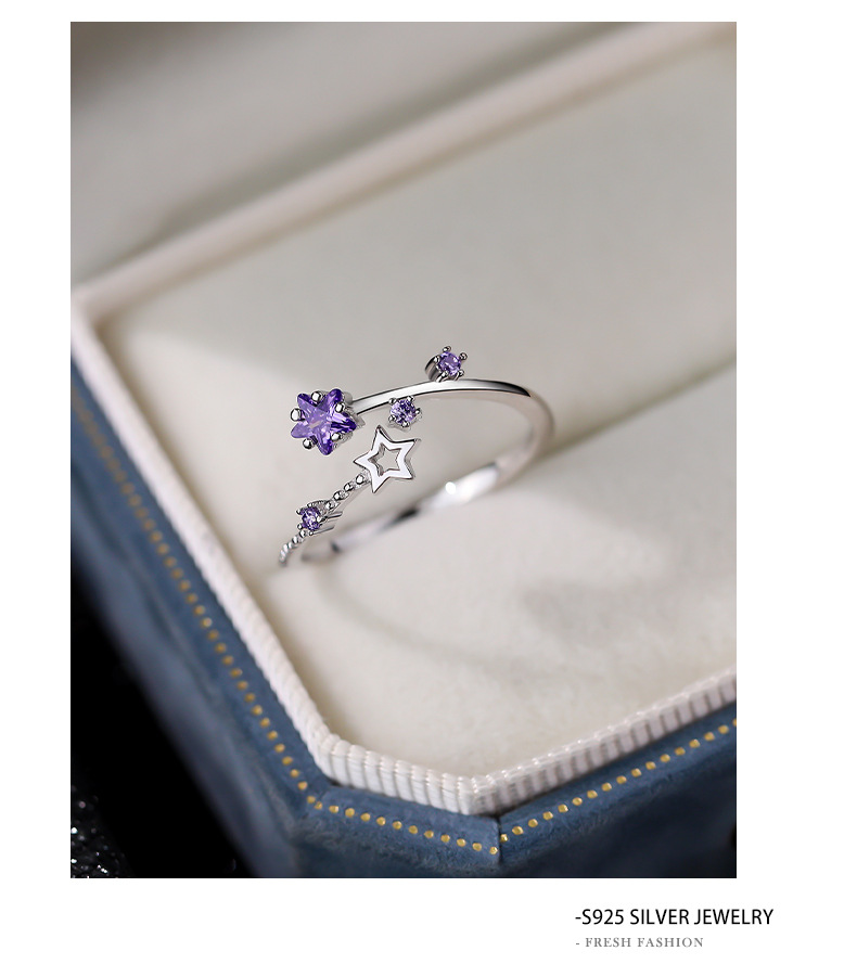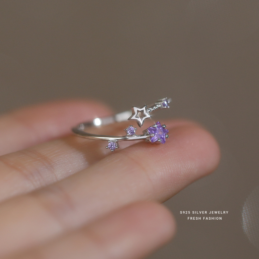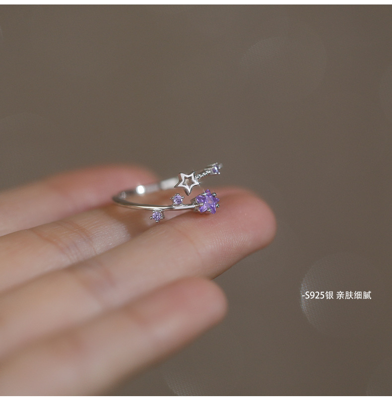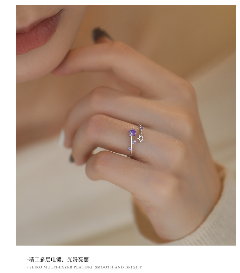 Korean Style Light Luxury Purple Zircon Star Ring Women's S925 Sterling Silver Niche All-match Star Wish Ring Adjustable