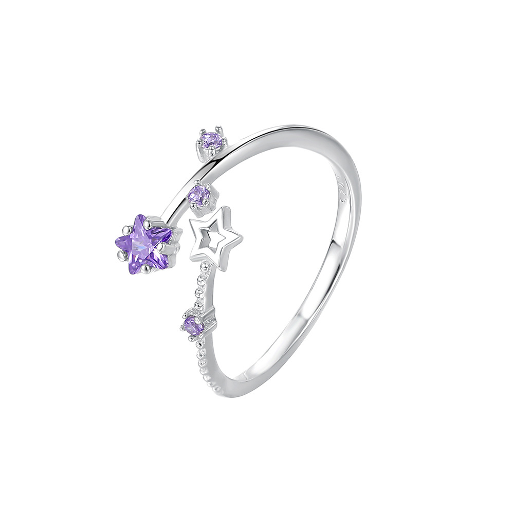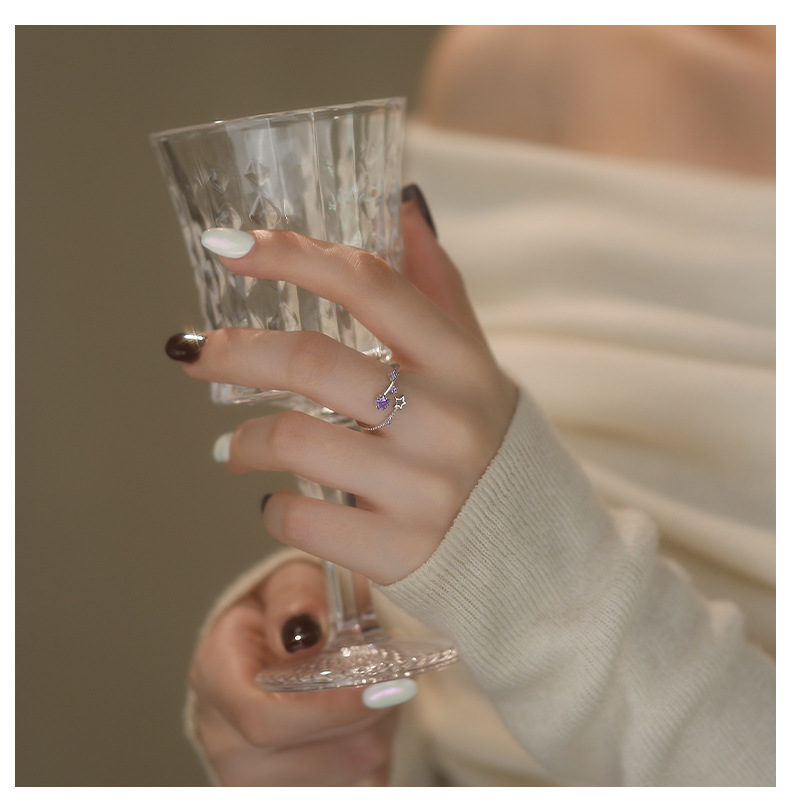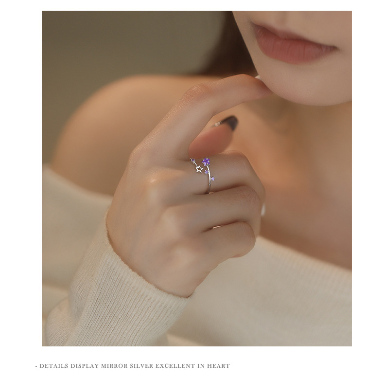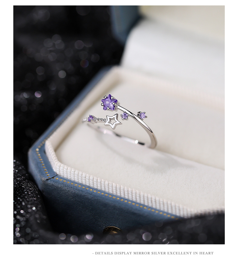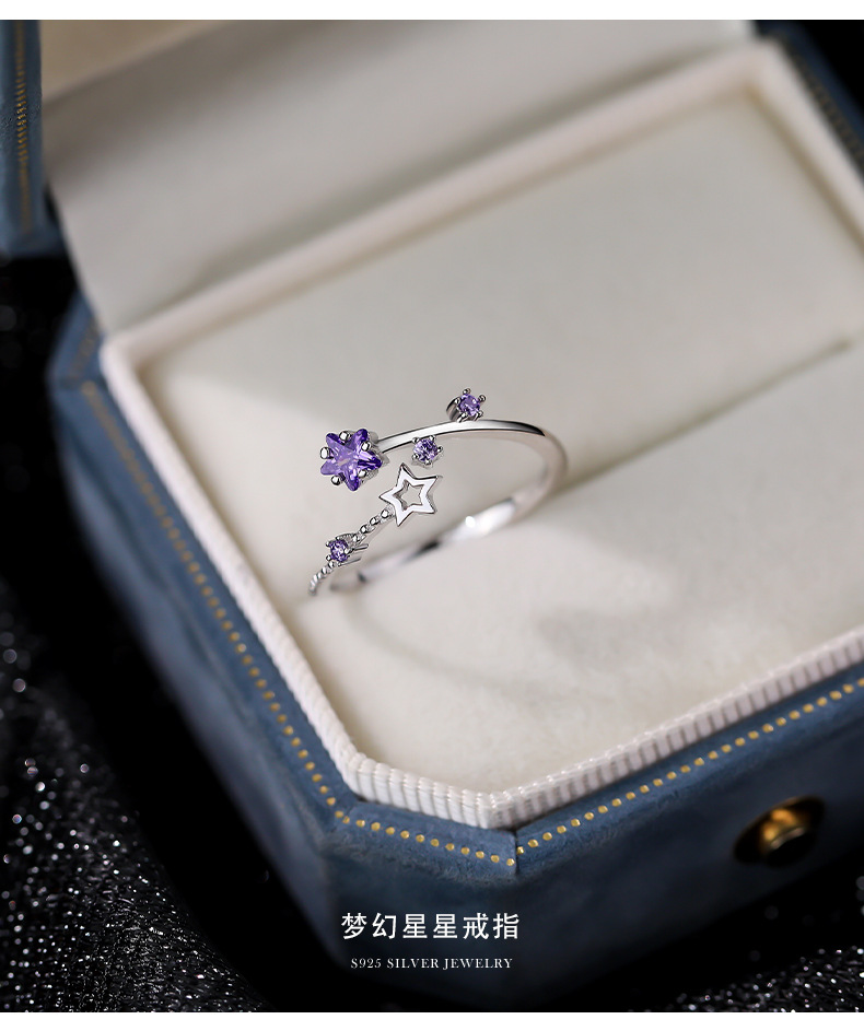 Korean Style Light Luxury Purple Zircon Star Ring Women's S925 Sterling Silver Niche All-match Star Wish Ring Adjustable