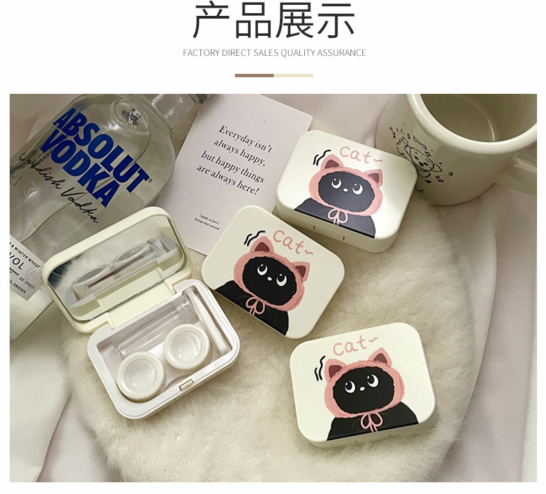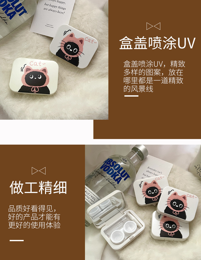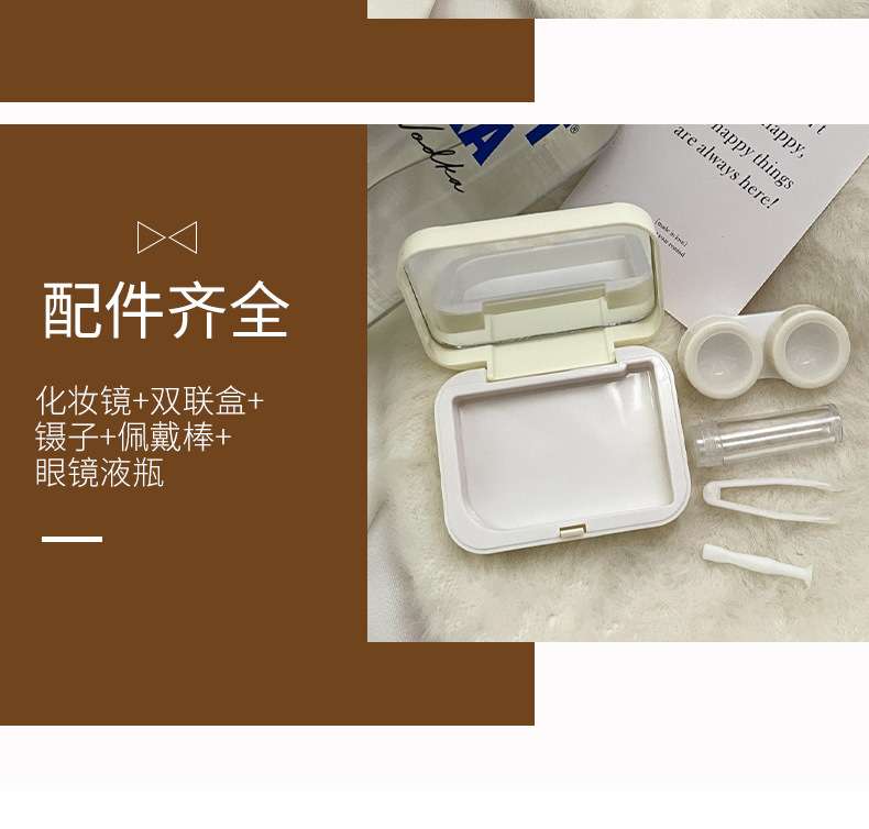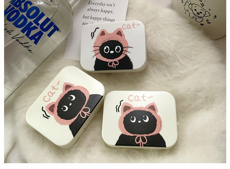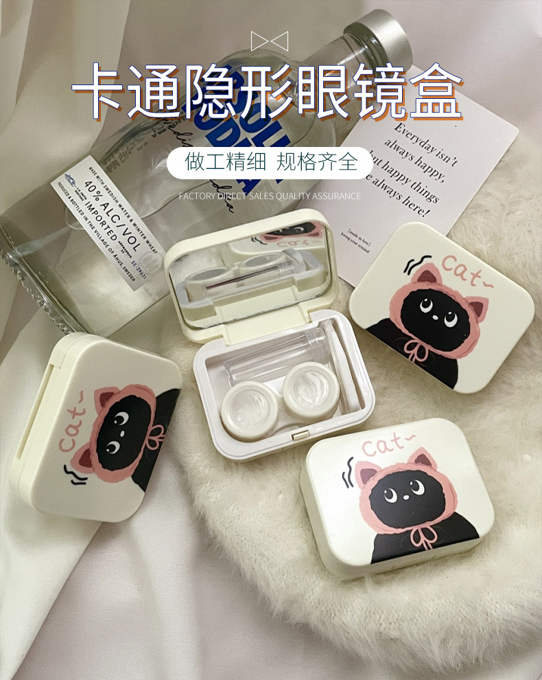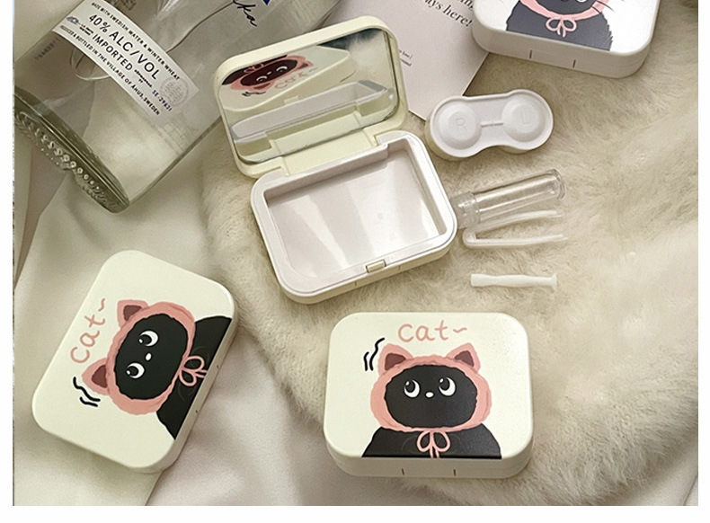 Contact lens box with mirror leak-proof cute cartoon compact portable contact lens storage box care box