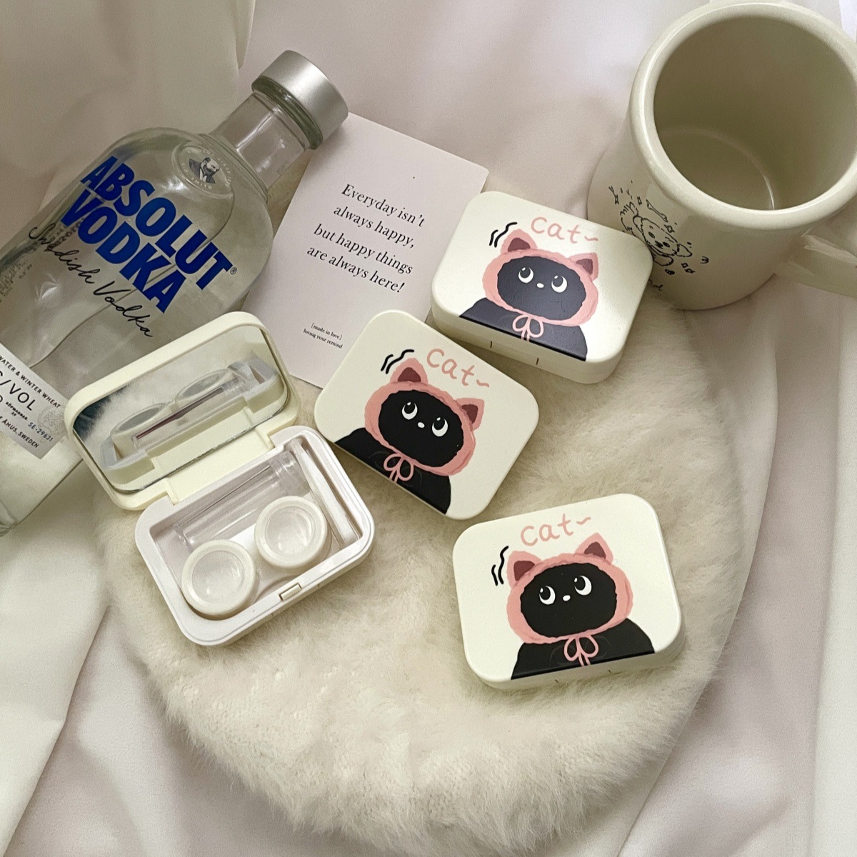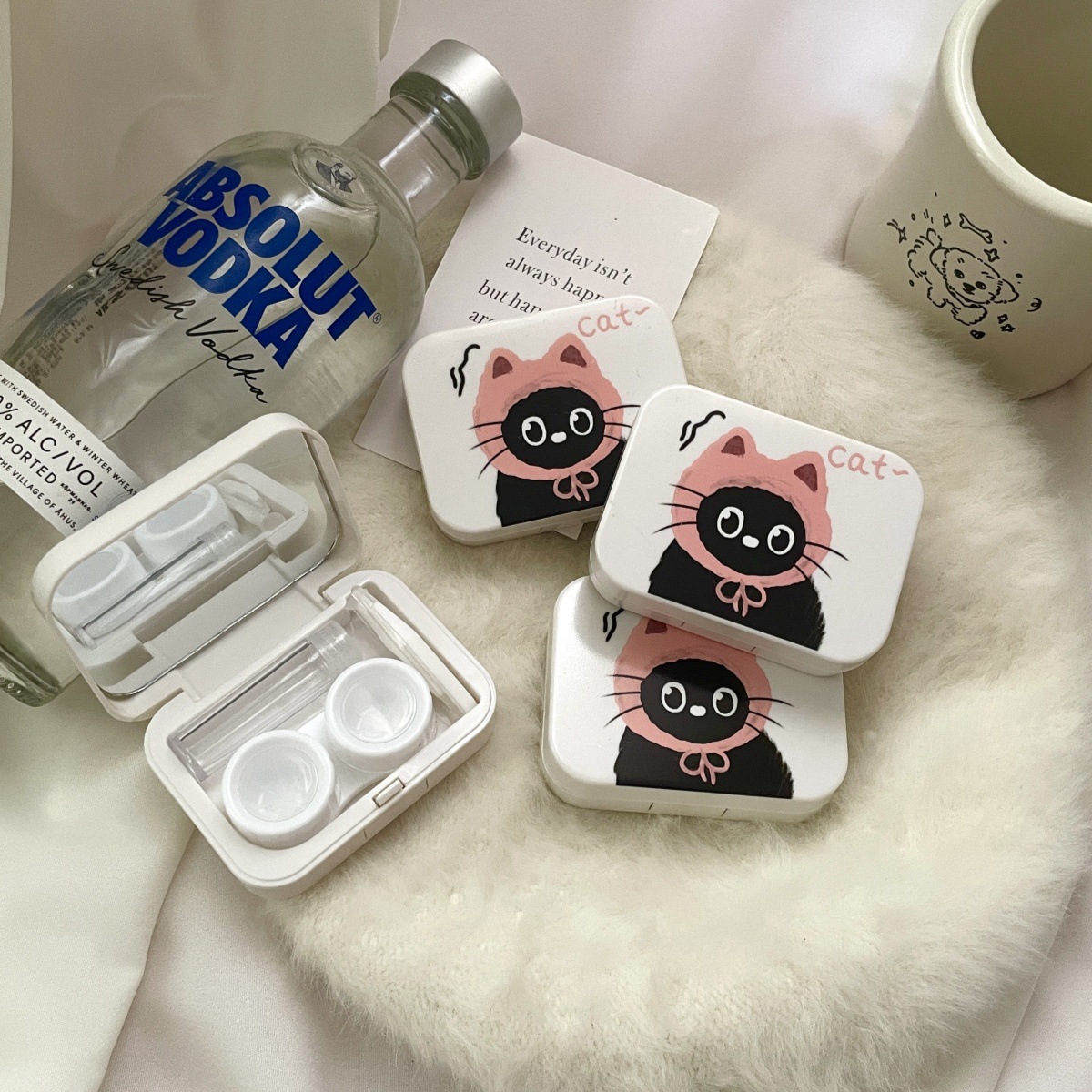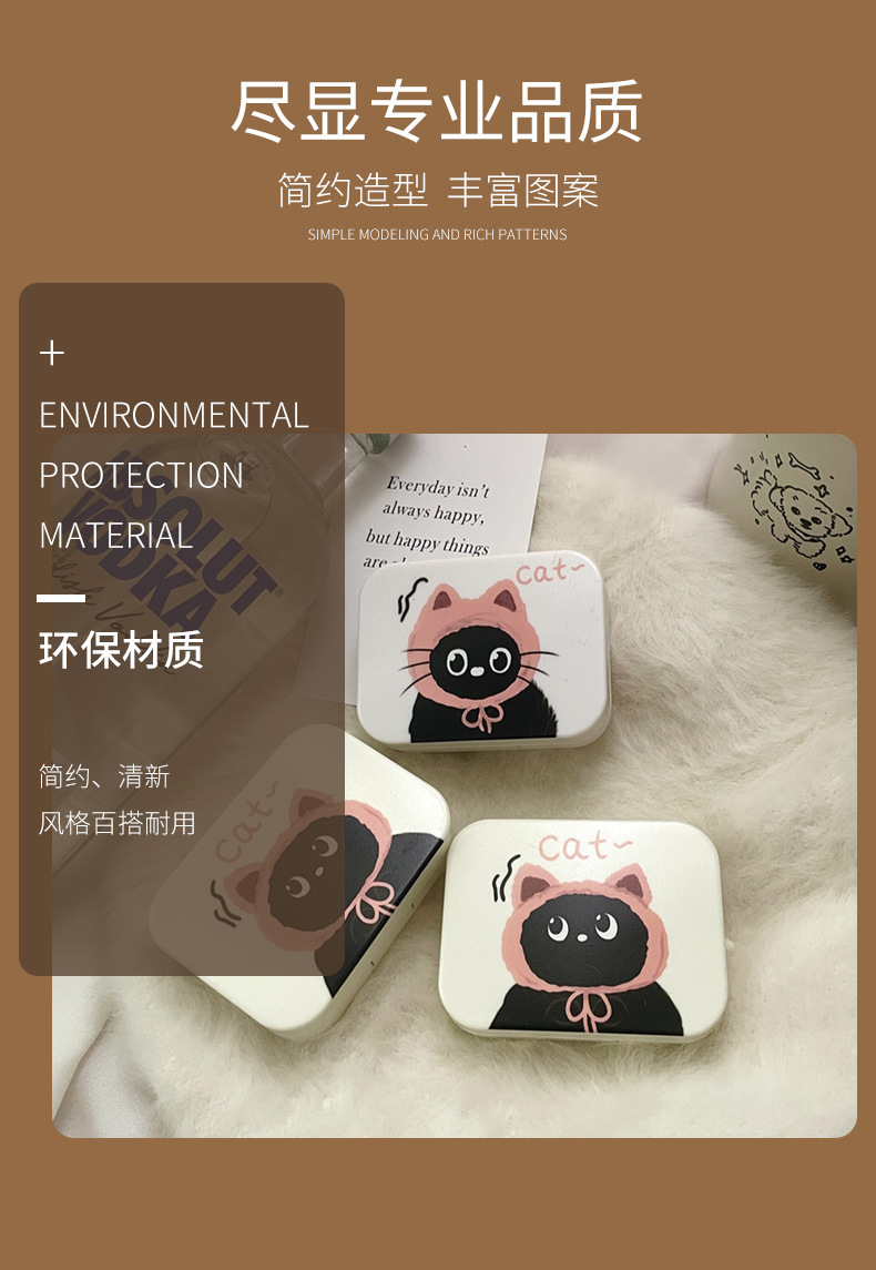 Contact lens box with mirror leak-proof cute cartoon compact portable contact lens storage box care box