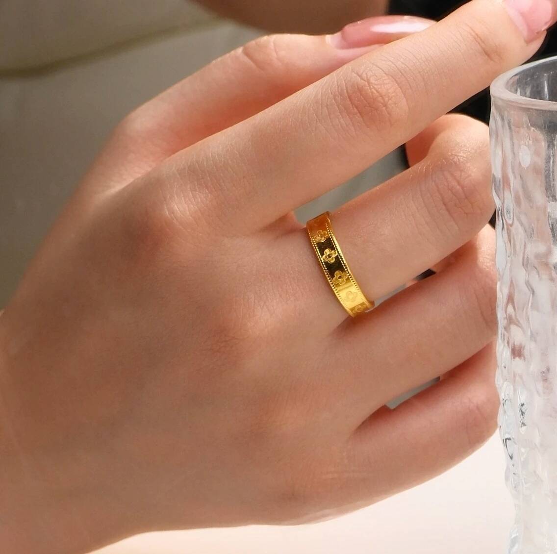 Light luxury all-match four-leaf clover ring female temperament niche high-end sense 18K gold lovers ring ring hand jewelry wholesale