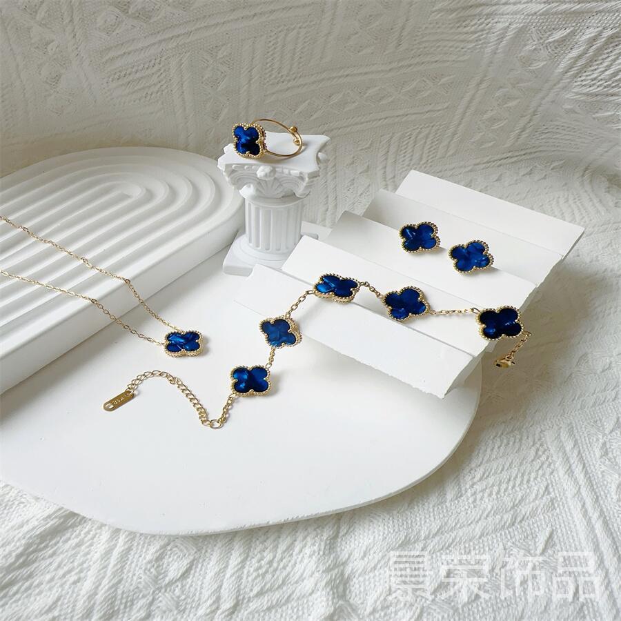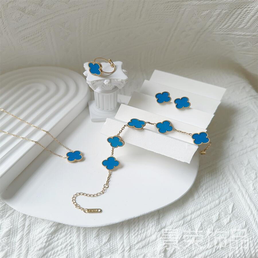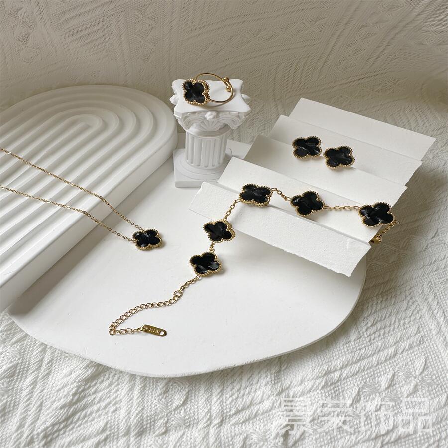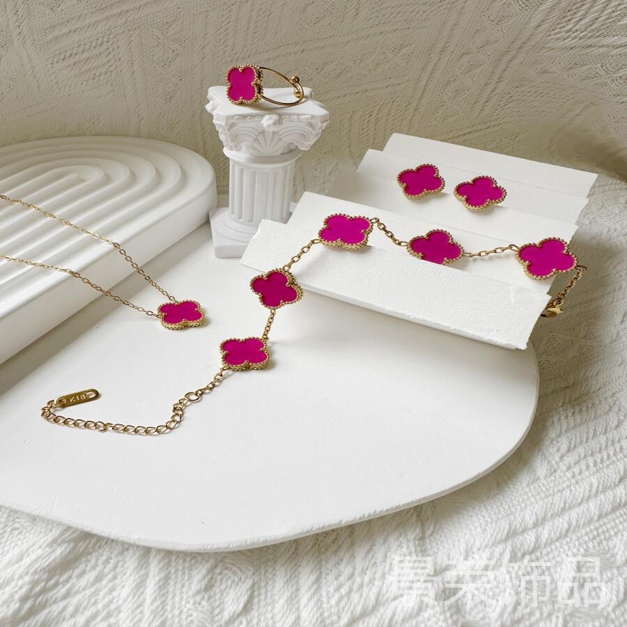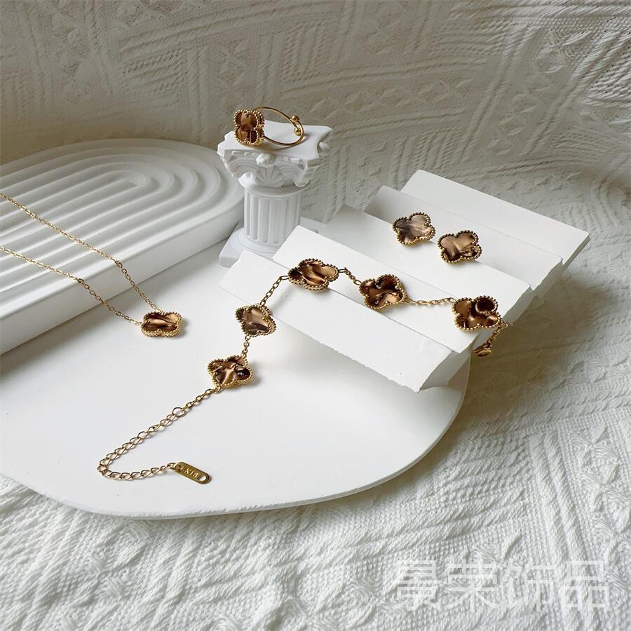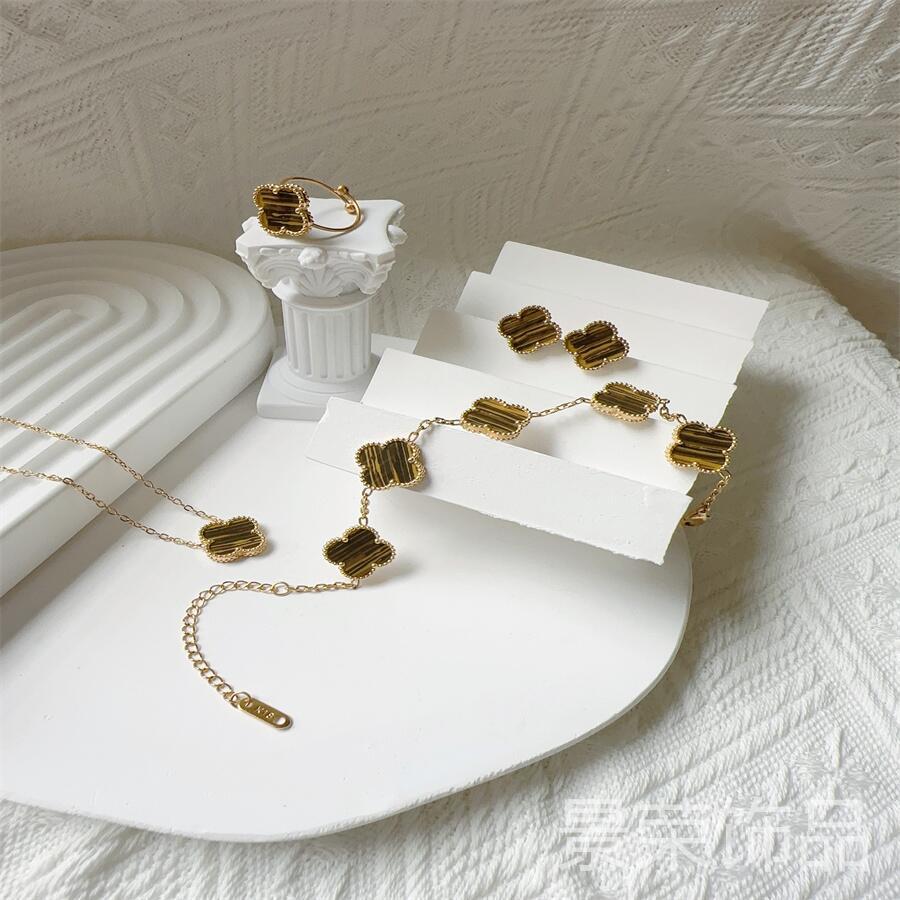 High version four-leaf clover 15MM groove 18K four-leaf clover bracelet necklace earring ring suit does not fade Fritillaria