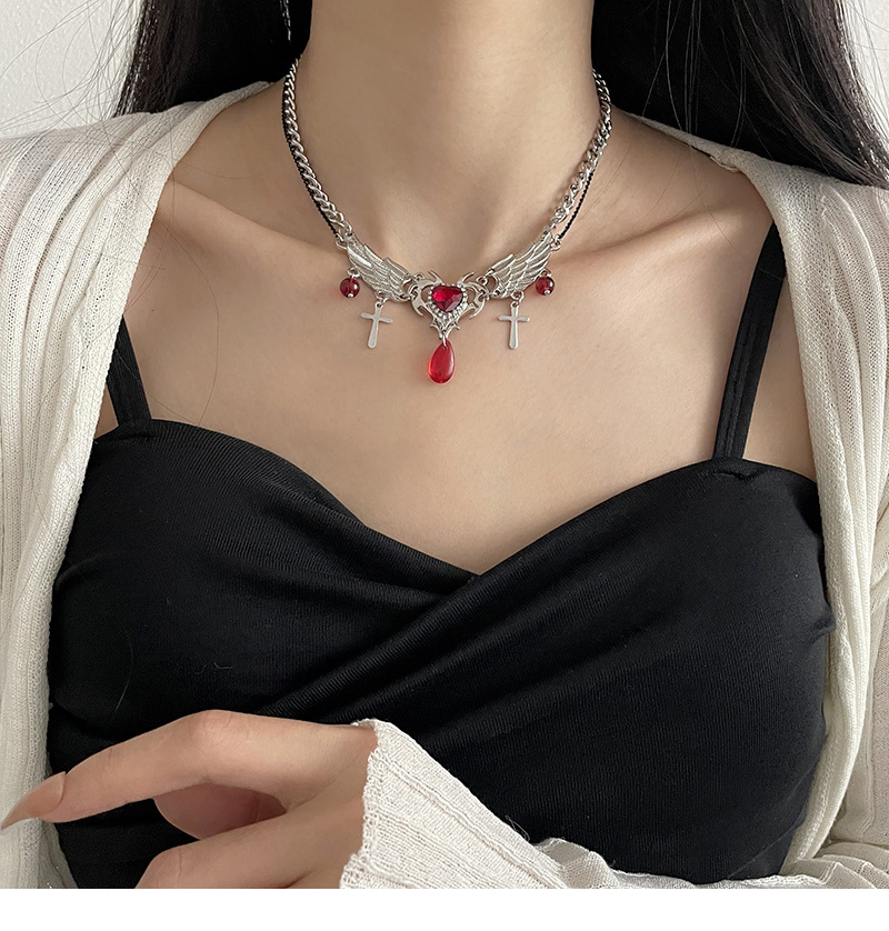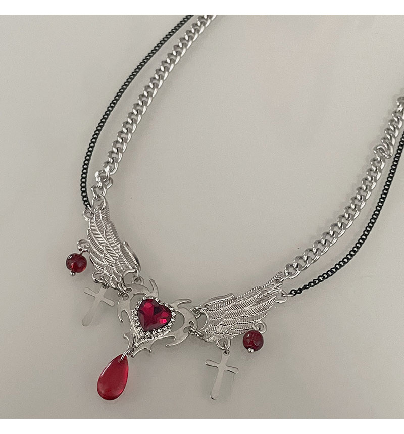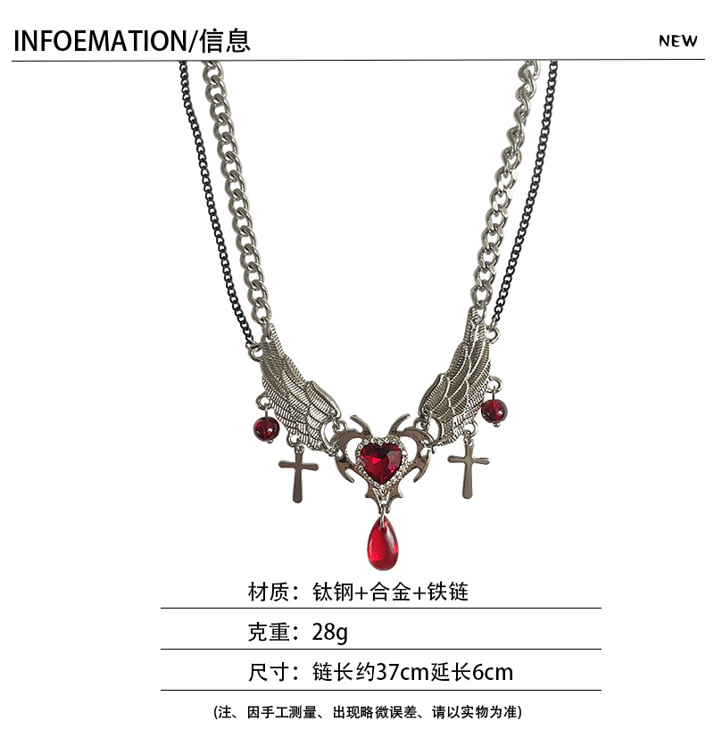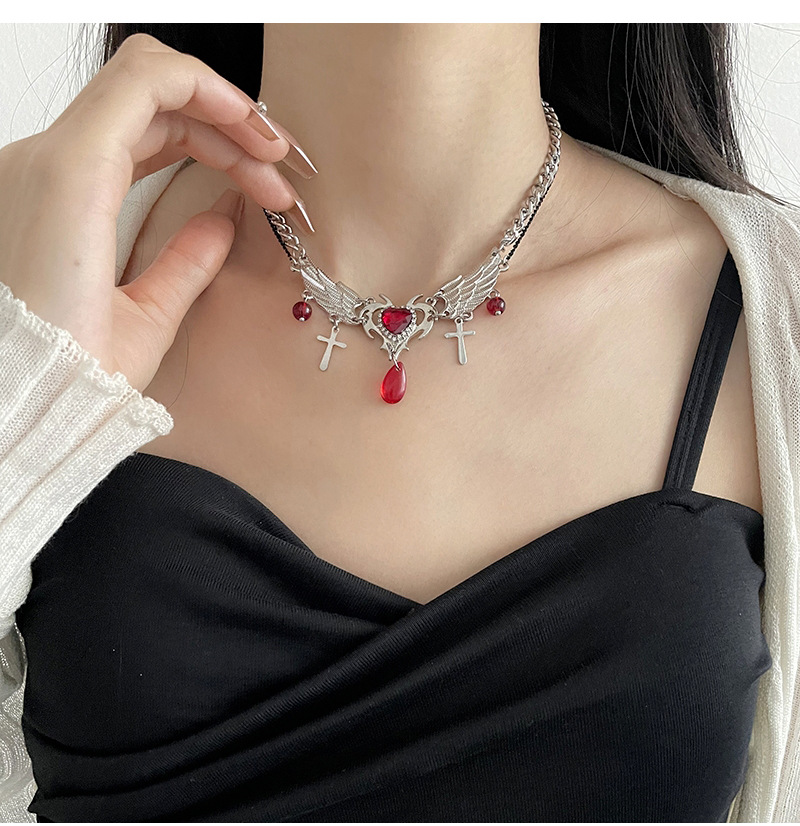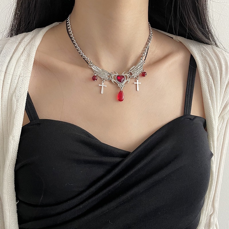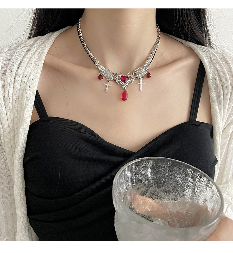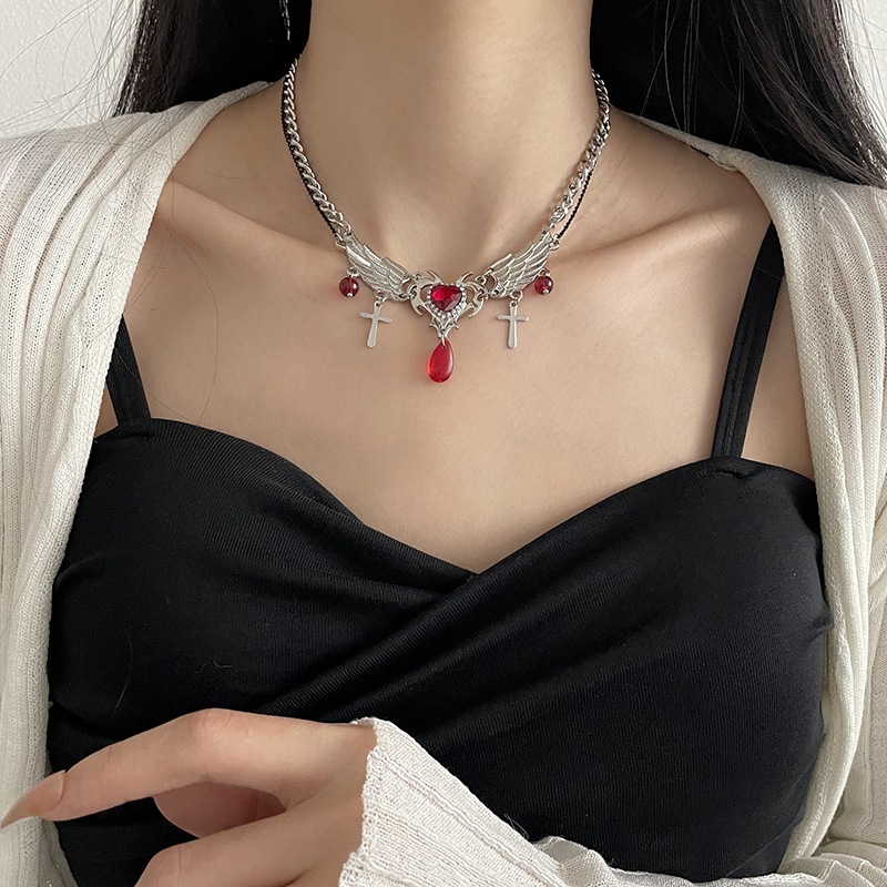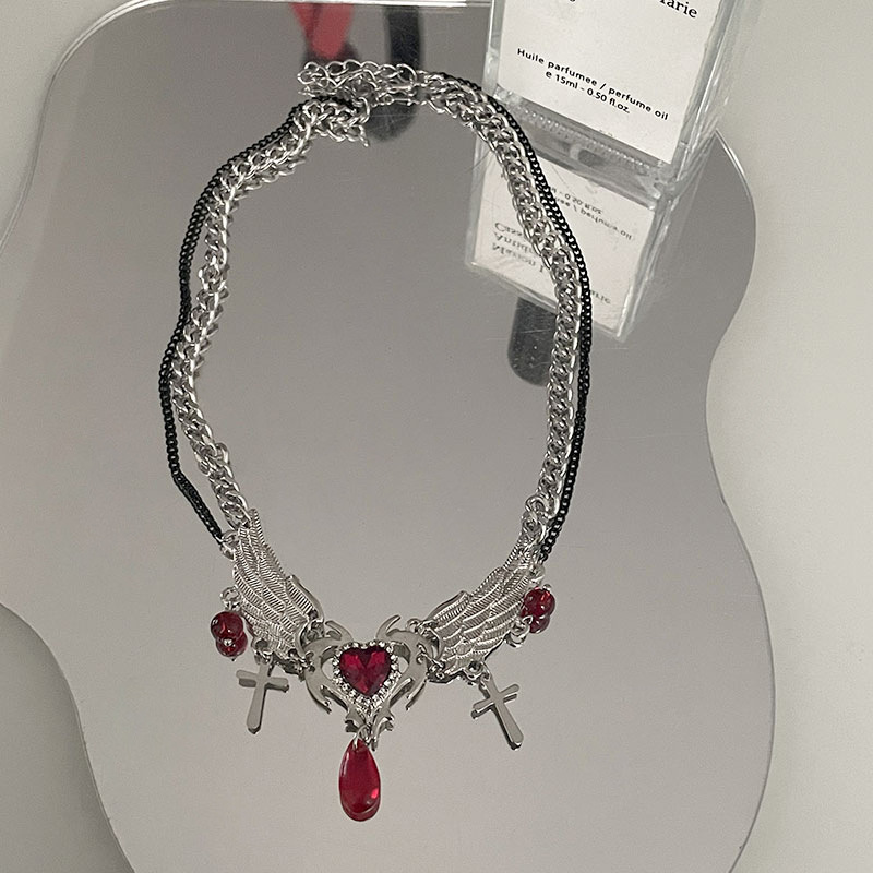 Red Love Stitching Wings Cross Pendant Necklace Women's Niche Light Luxury Y2K Spice Girls Subculture Clavicle Chain