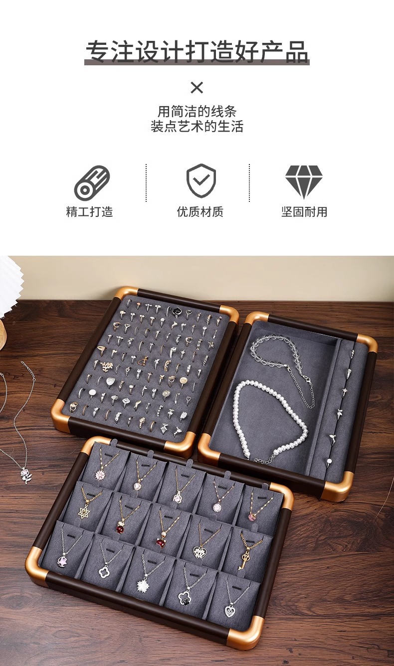 Walnut Color Jewelry Display Tray Retro Jewelry Display Solid Wood Necklace Tray Jewelry Bracelet Counter Stall