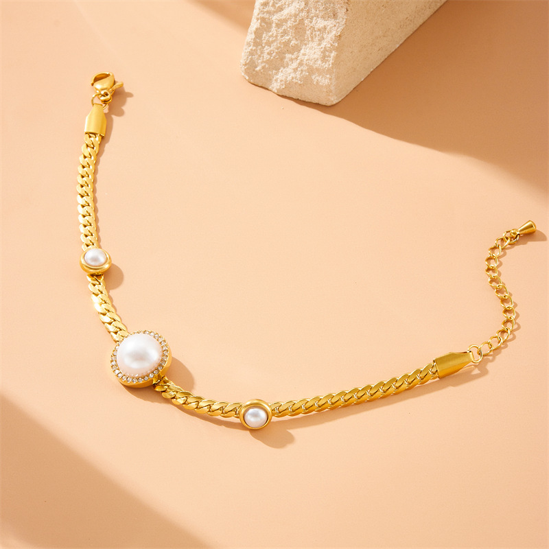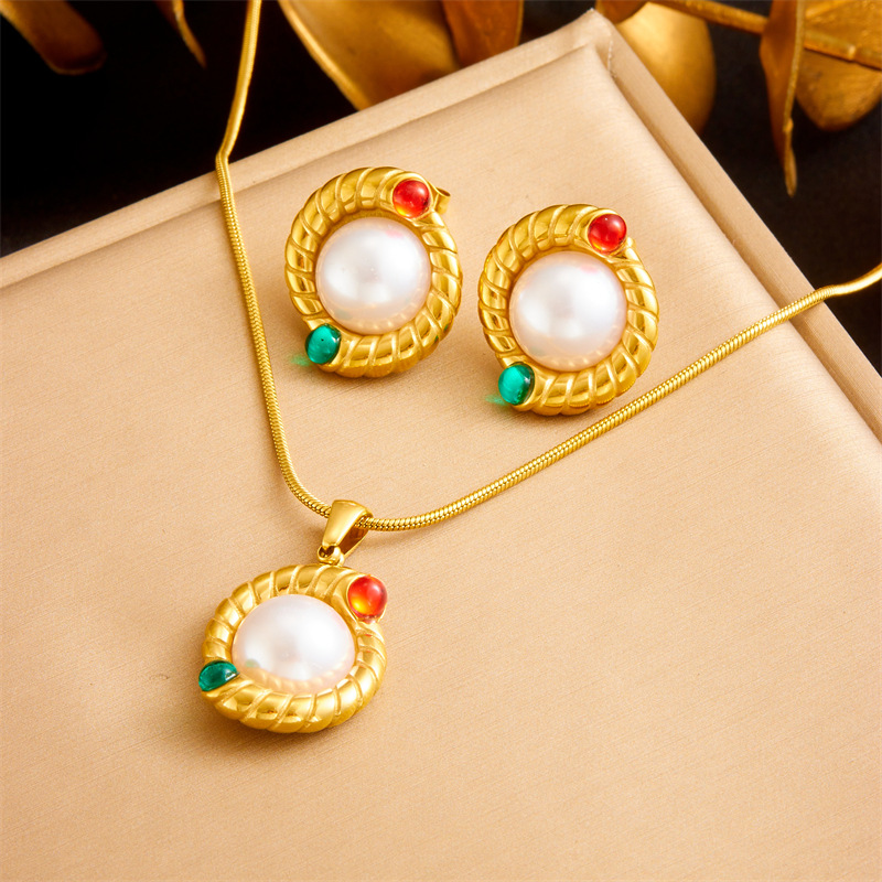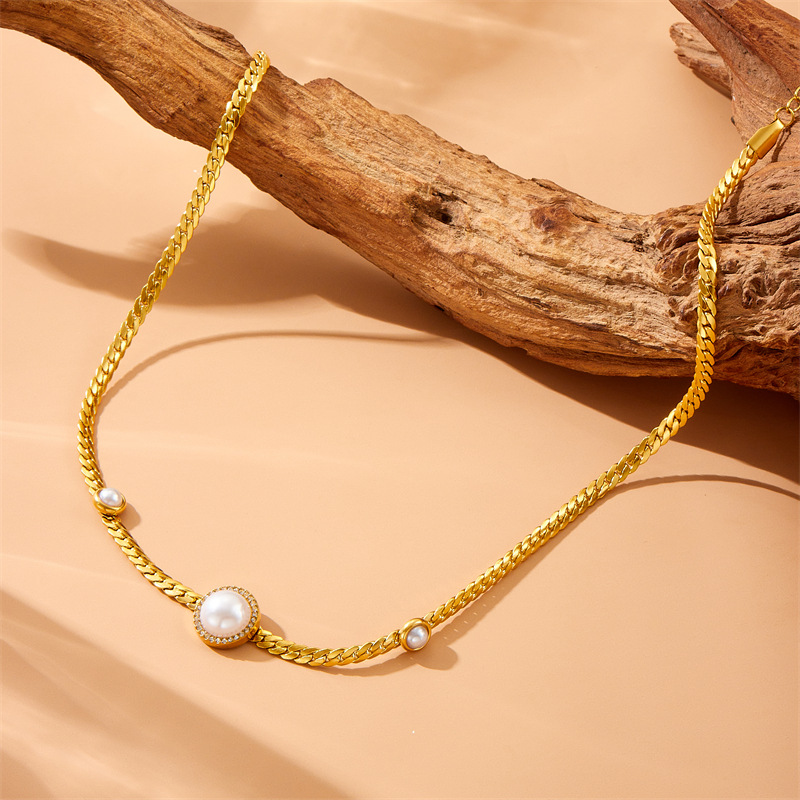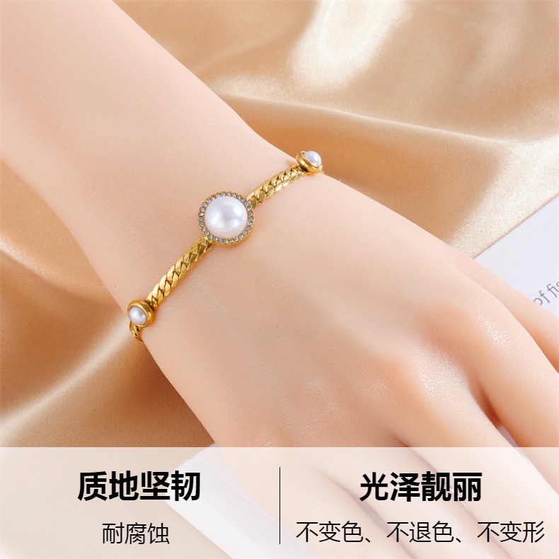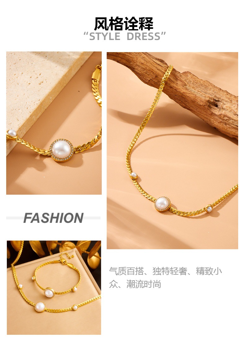 Fashion luxury round pearl diamond necklace temperament neck chain stainless steel bracelet cross-border wholesale suit