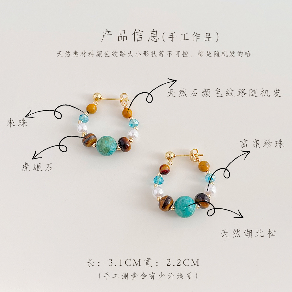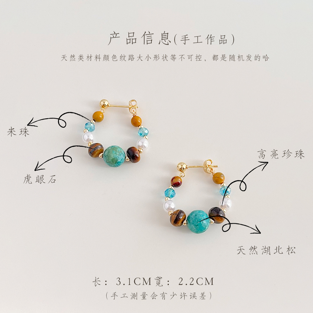 National Style Original Hand-made New Chinese Style Natural Stone Earrings Xizang Ethnic Style Literary Retro Earrings Distinctive Ear Jewelry