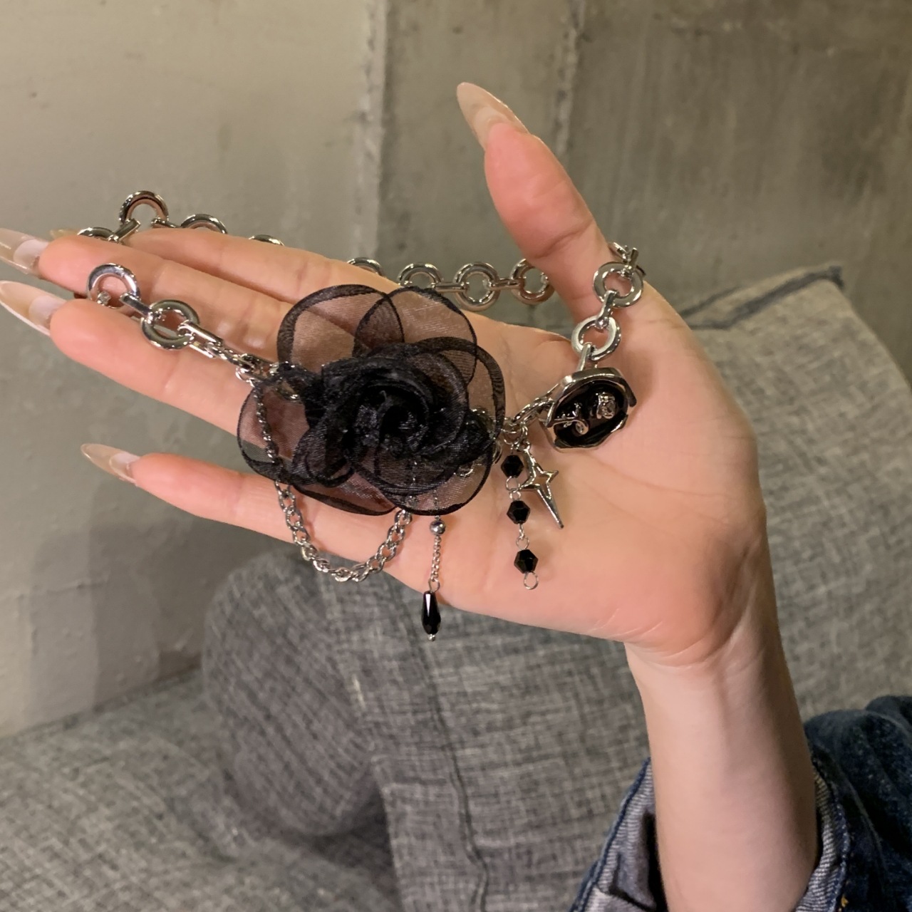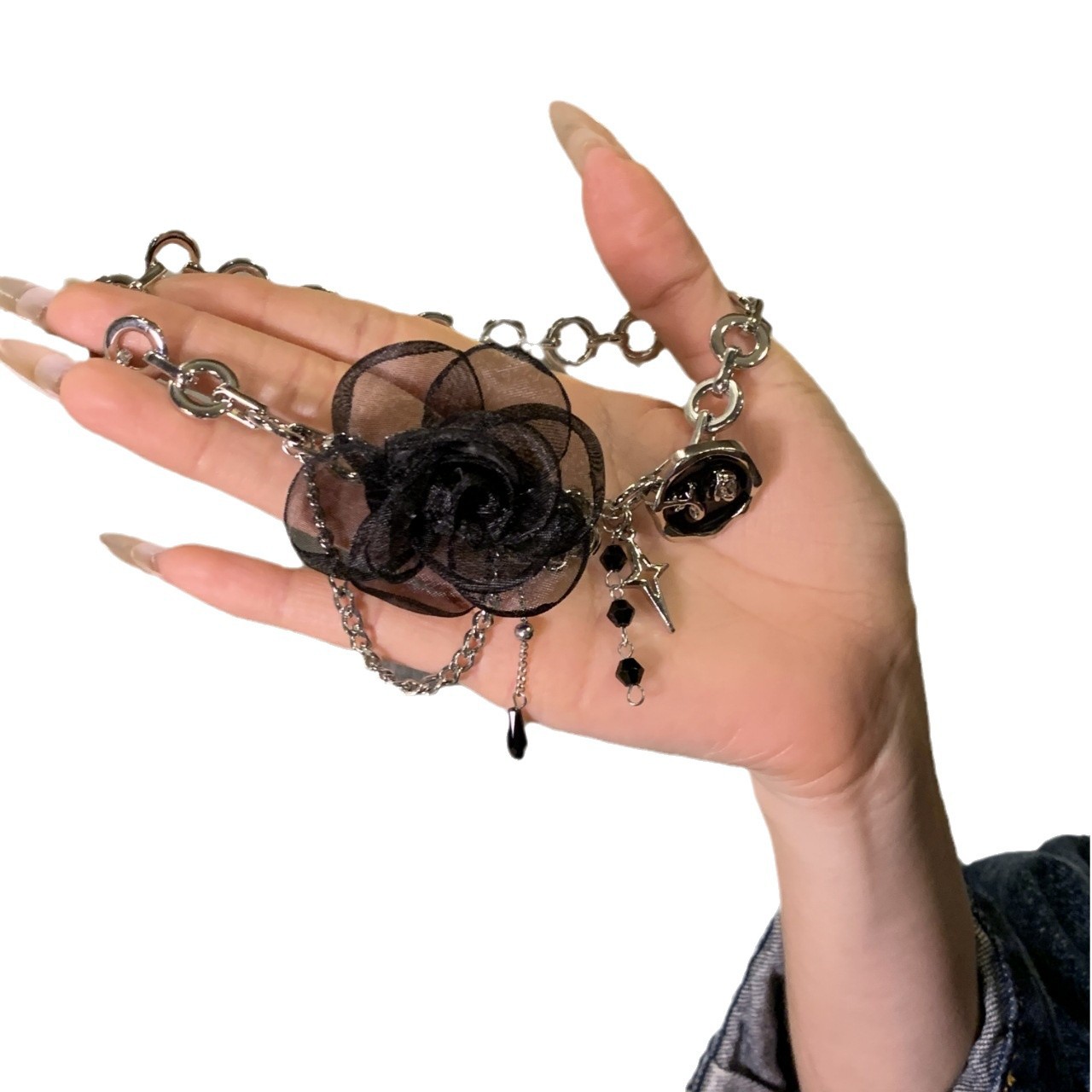 Black Lace Rose Stitching Necklace Feminine Light Luxury Sweet Cool Spice Girl Button Lock Bone Chain Sexy Necklace Chain Jewelry