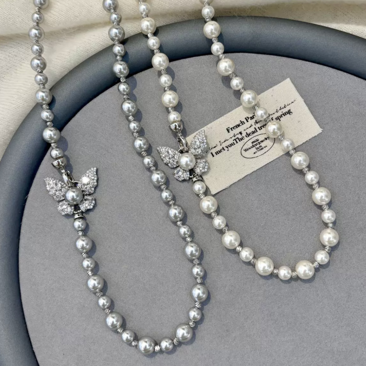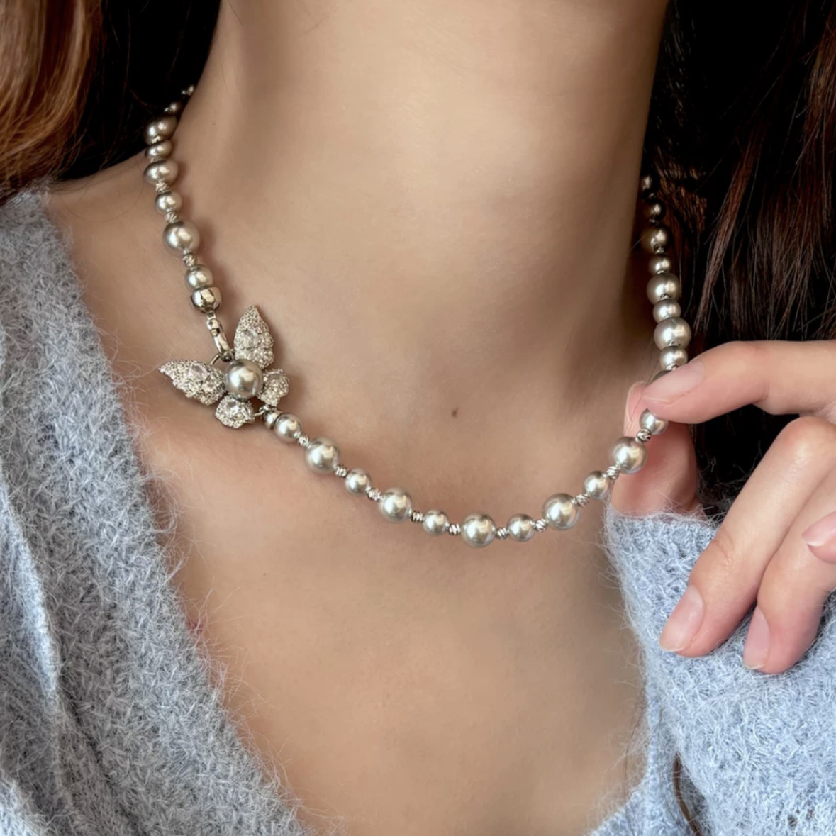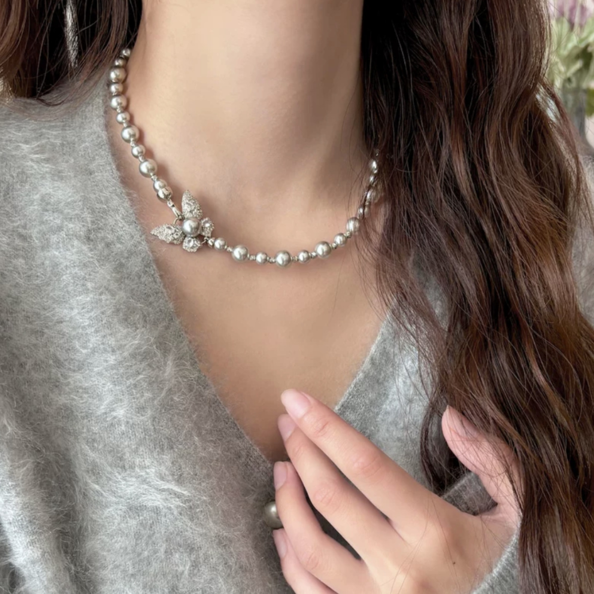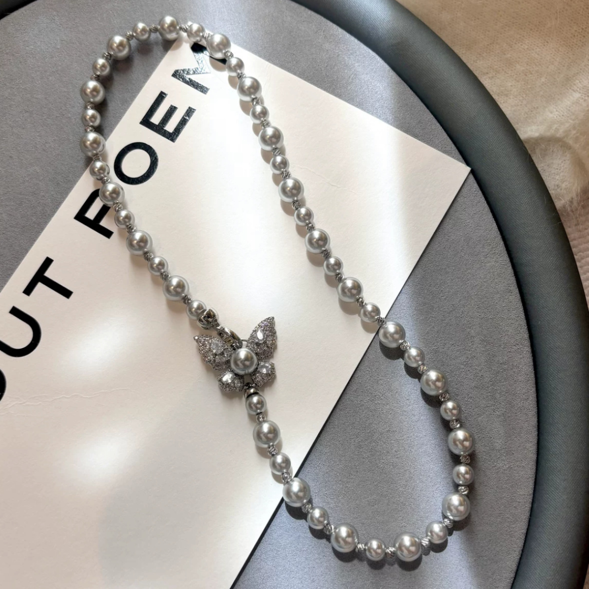 Color: R0378 dark gray Mixed Color Pearl Necklace