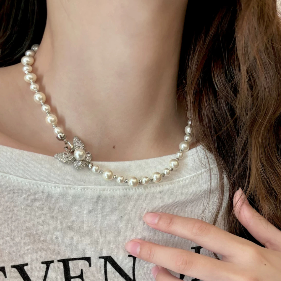 Color: R3037 diamond butterfly pearl earrings [a pair]]