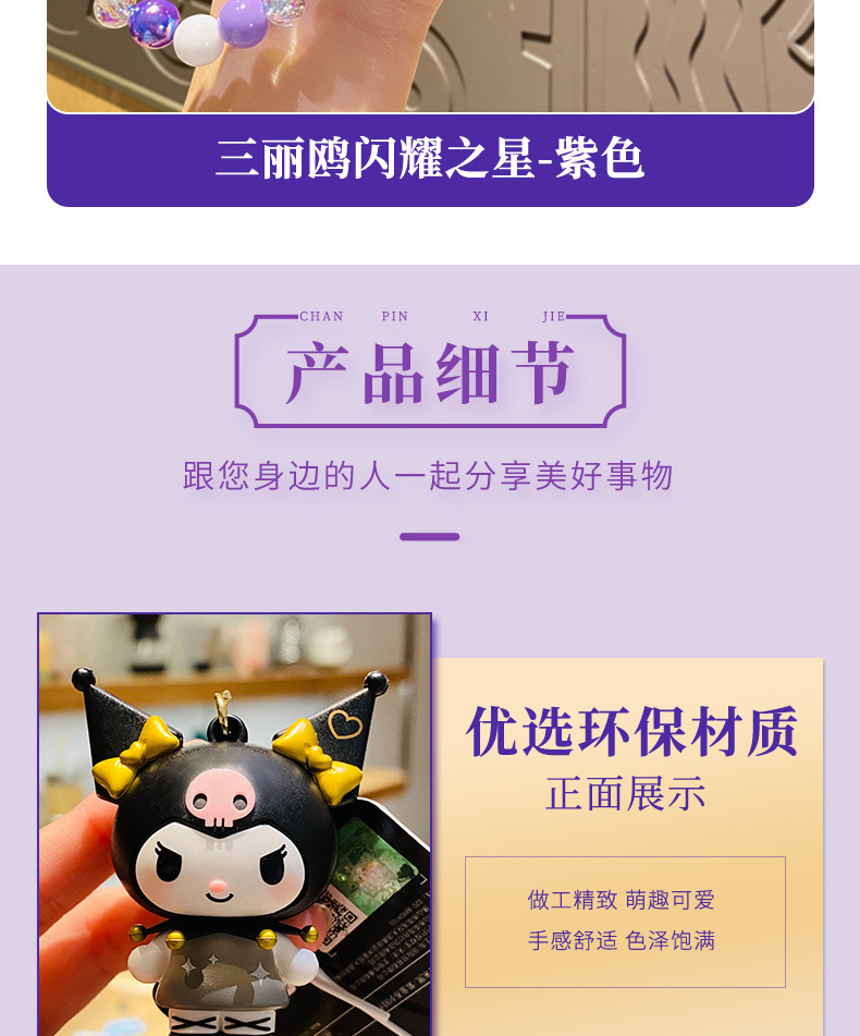 Genuine Cartoon Sanrio Shining Star Bracelet Keychain Doll Cute Couple Schoolbag Pendant Small Gift