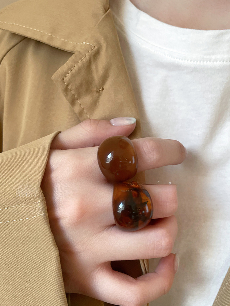 Autumn and Winter Retro Wide-Brimmed Resin Ring for Women 2025 New Fashion Personalized Index Finger Ring Niche Design Bestie Ring