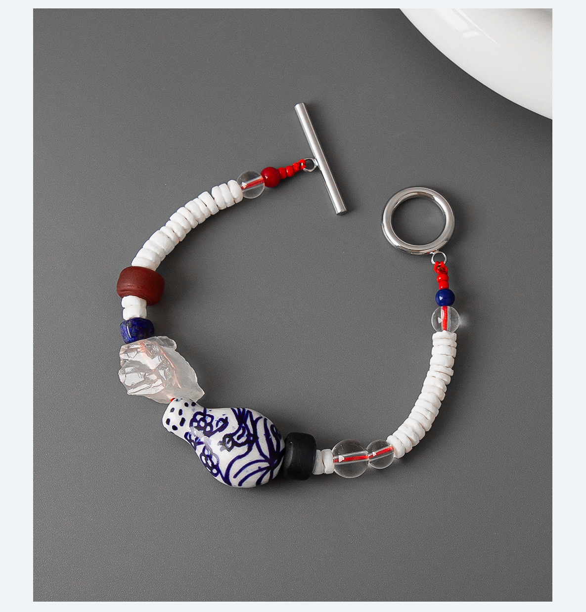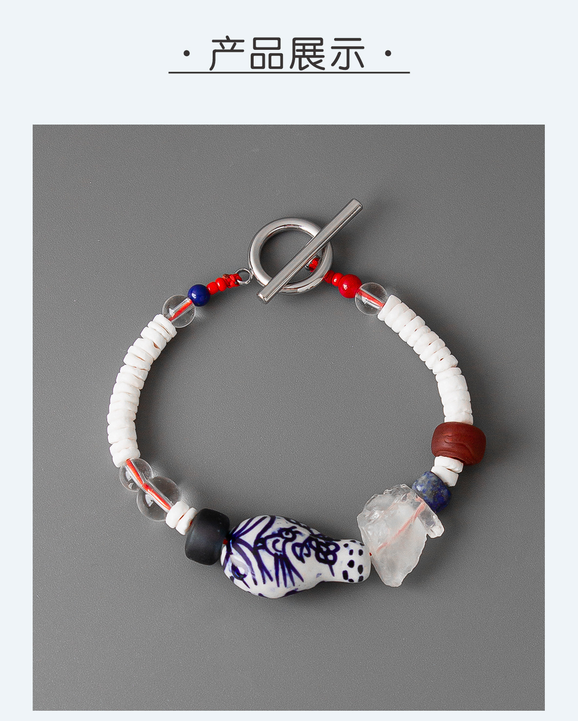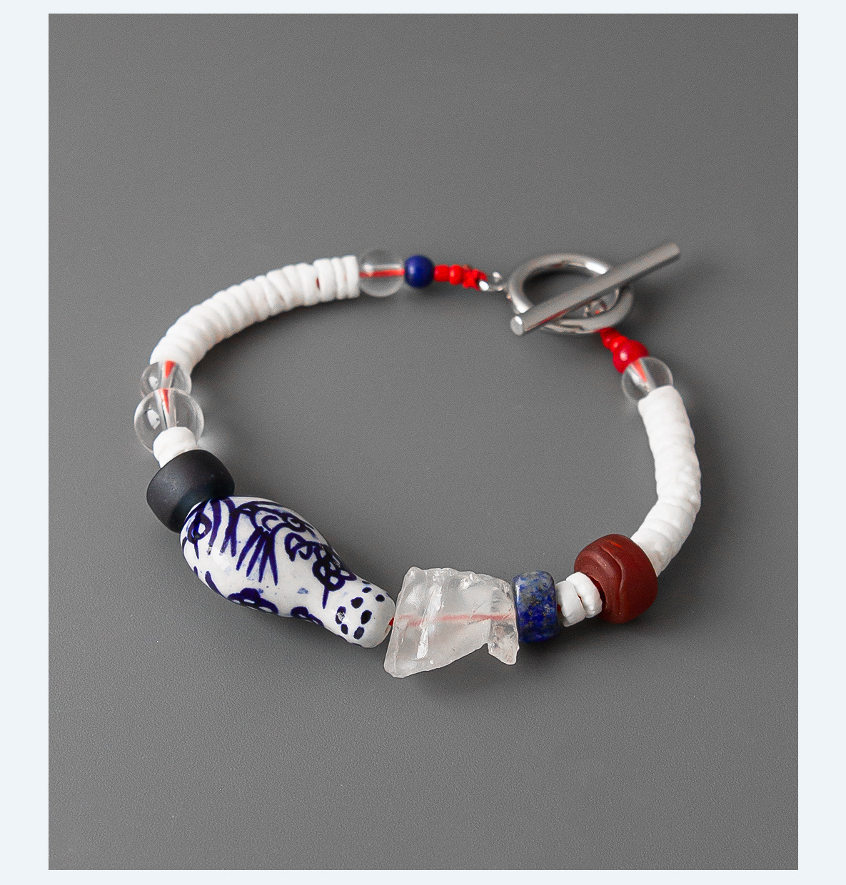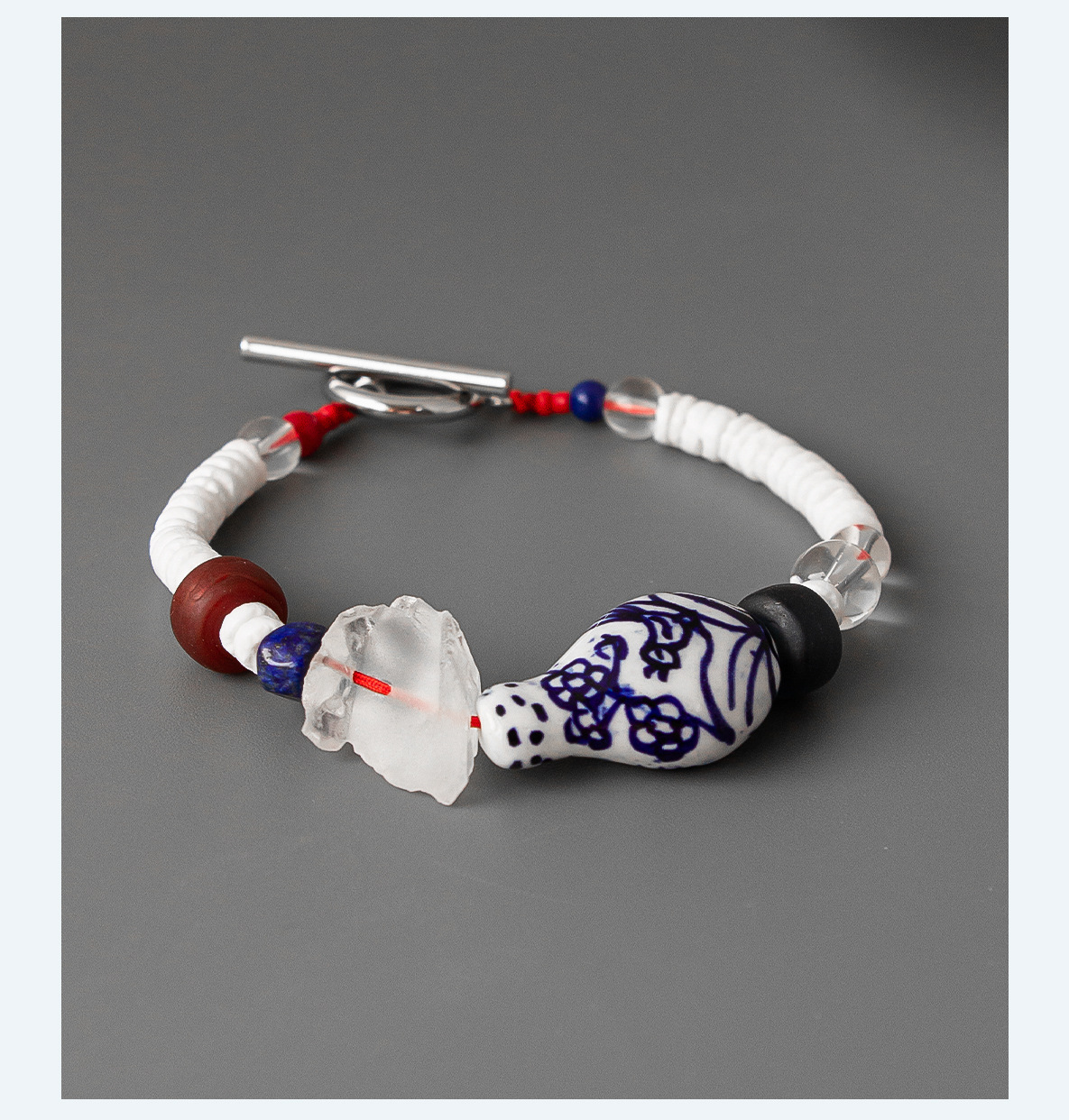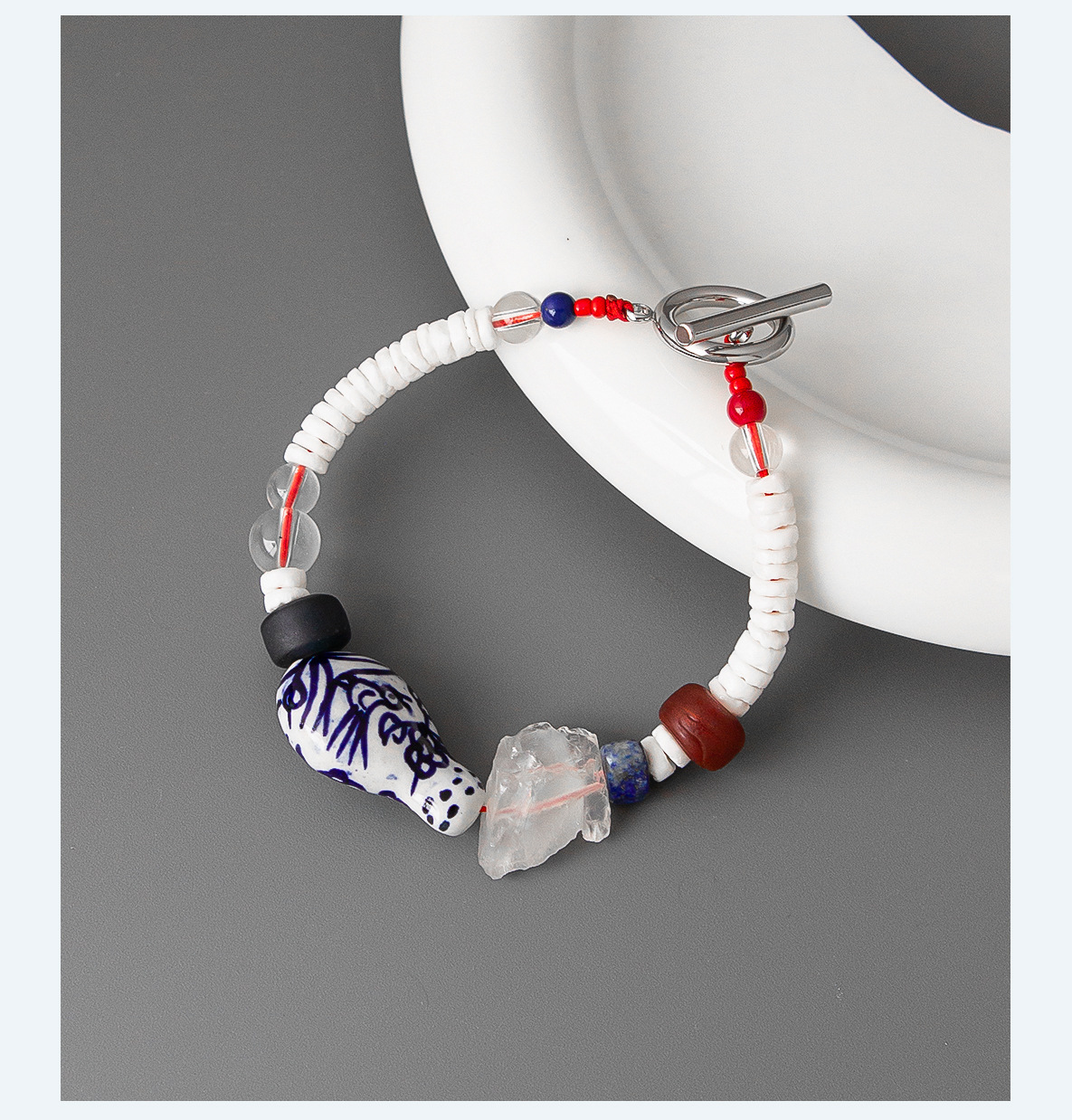 24 Winter New Beaded Bracelet Niche Handmade Multi-color Entry Luxury Ethnic Snow Mountain Blue and White Porcelain Bottle Beaded Bracelet