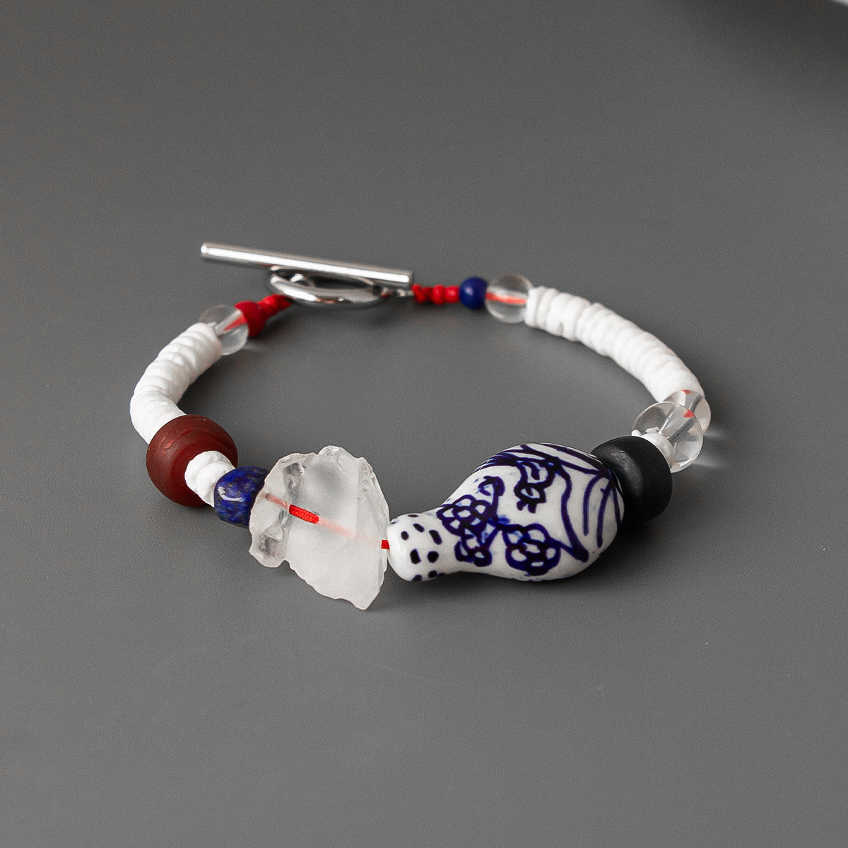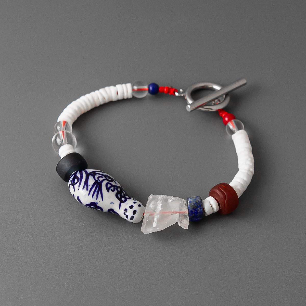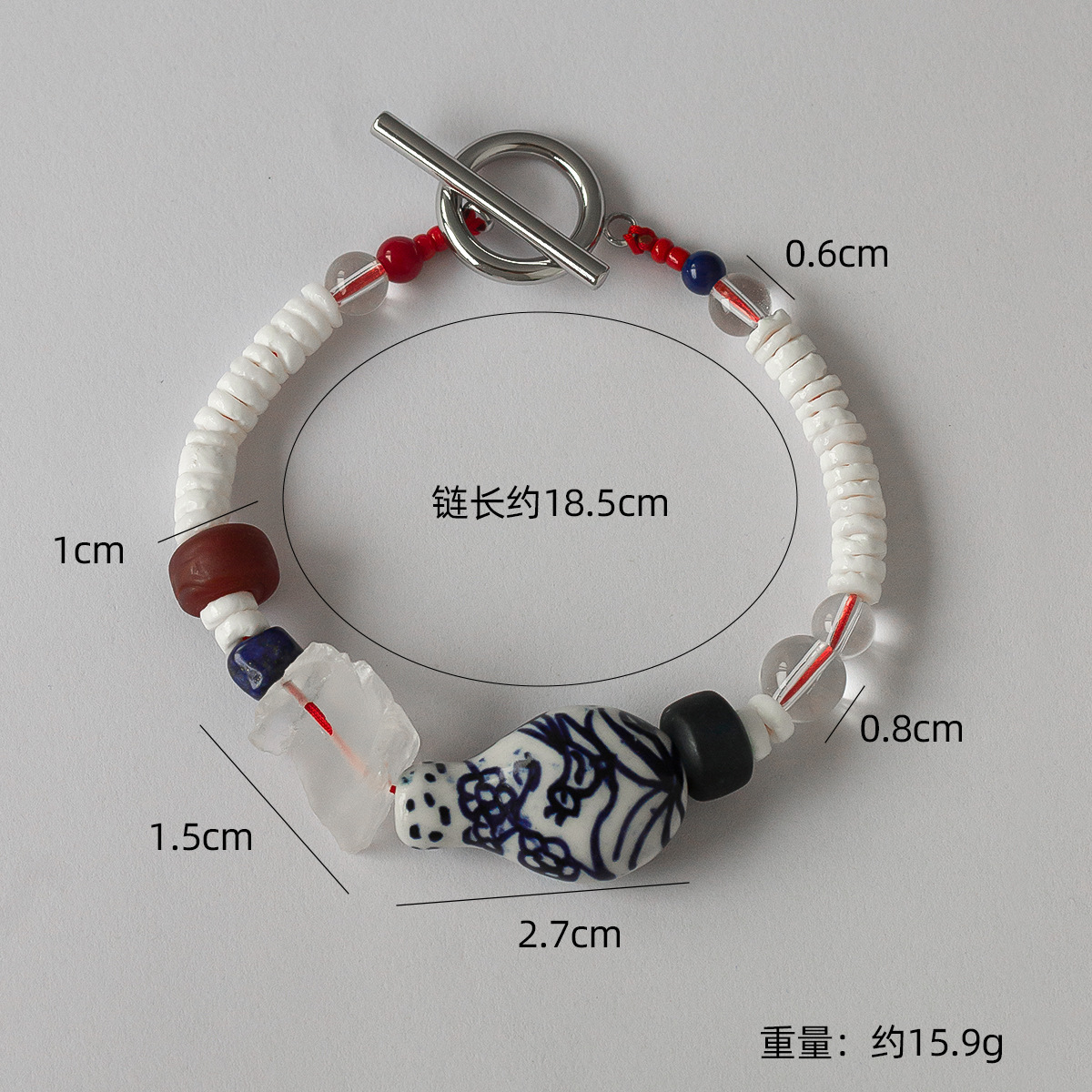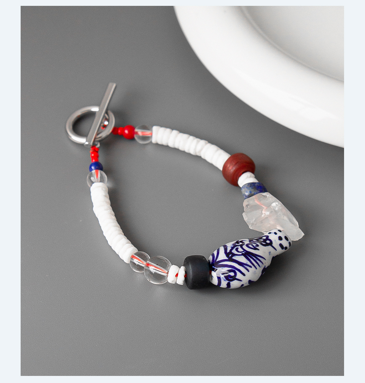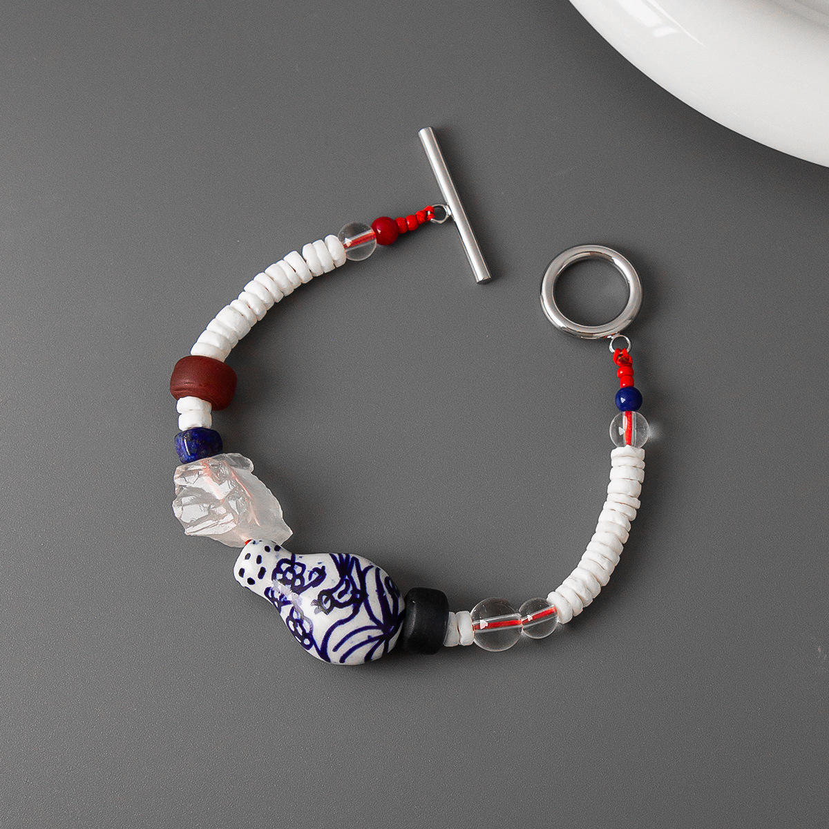 24 Winter New Beaded Bracelet Niche Handmade Multi-color Entry Luxury Ethnic Snow Mountain Blue and White Porcelain Bottle Beaded Bracelet
