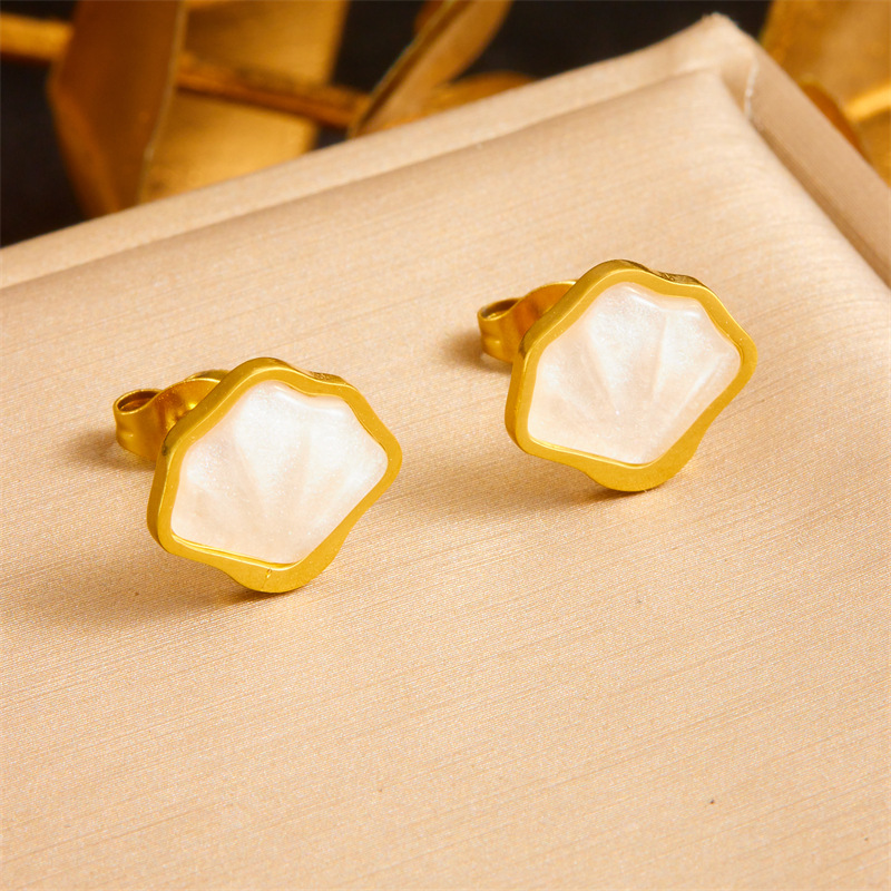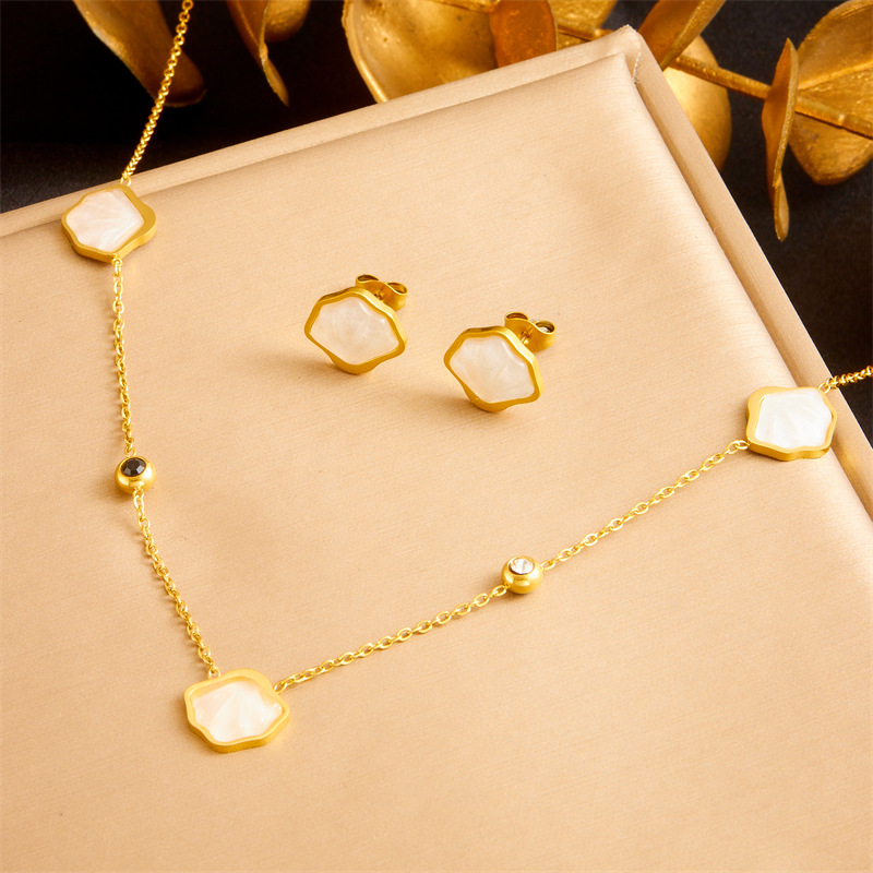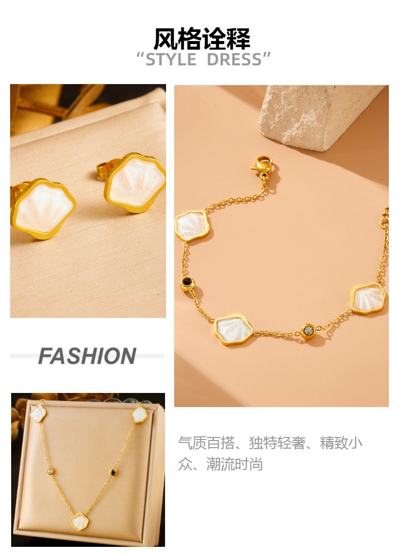 Cross-border fashion niche temperament white shell stainless steel accessories chain jewelry three-piece necklace earrings bracelet