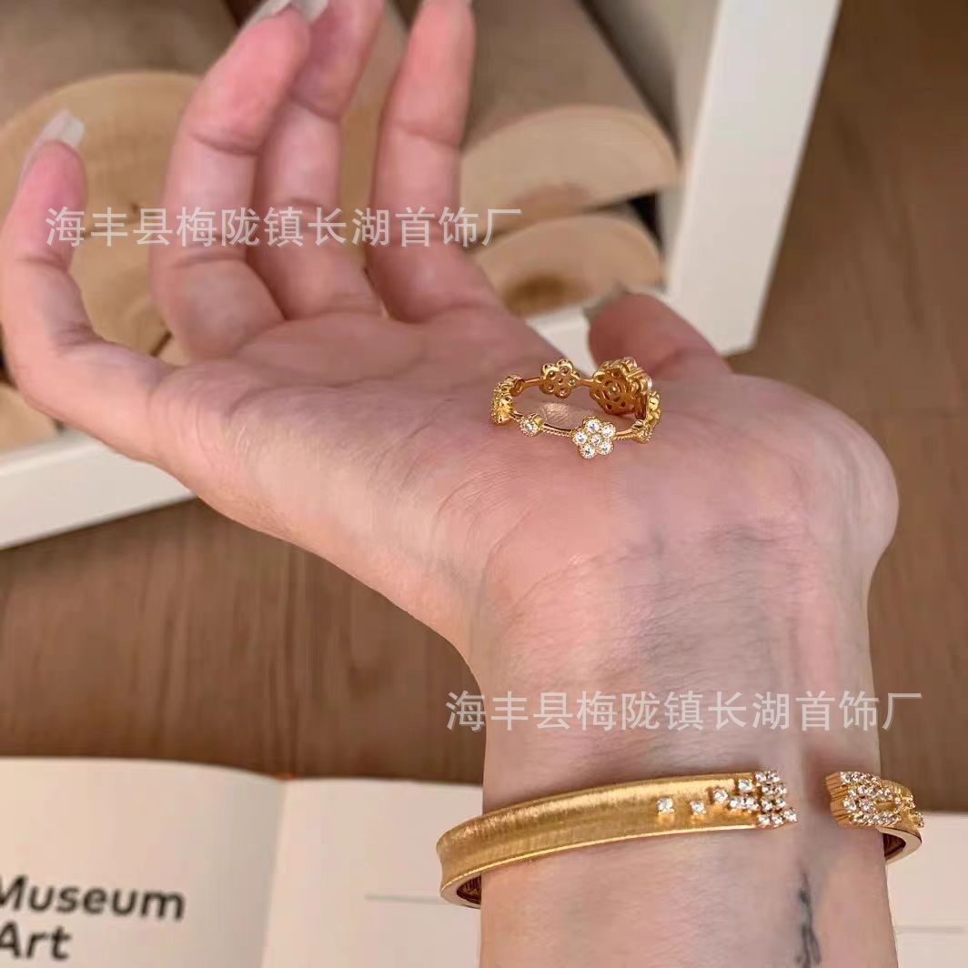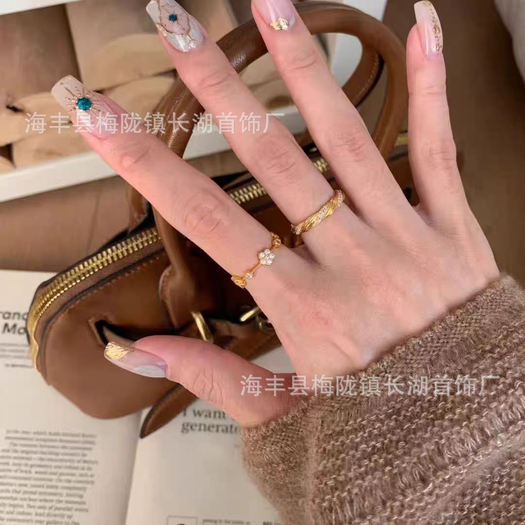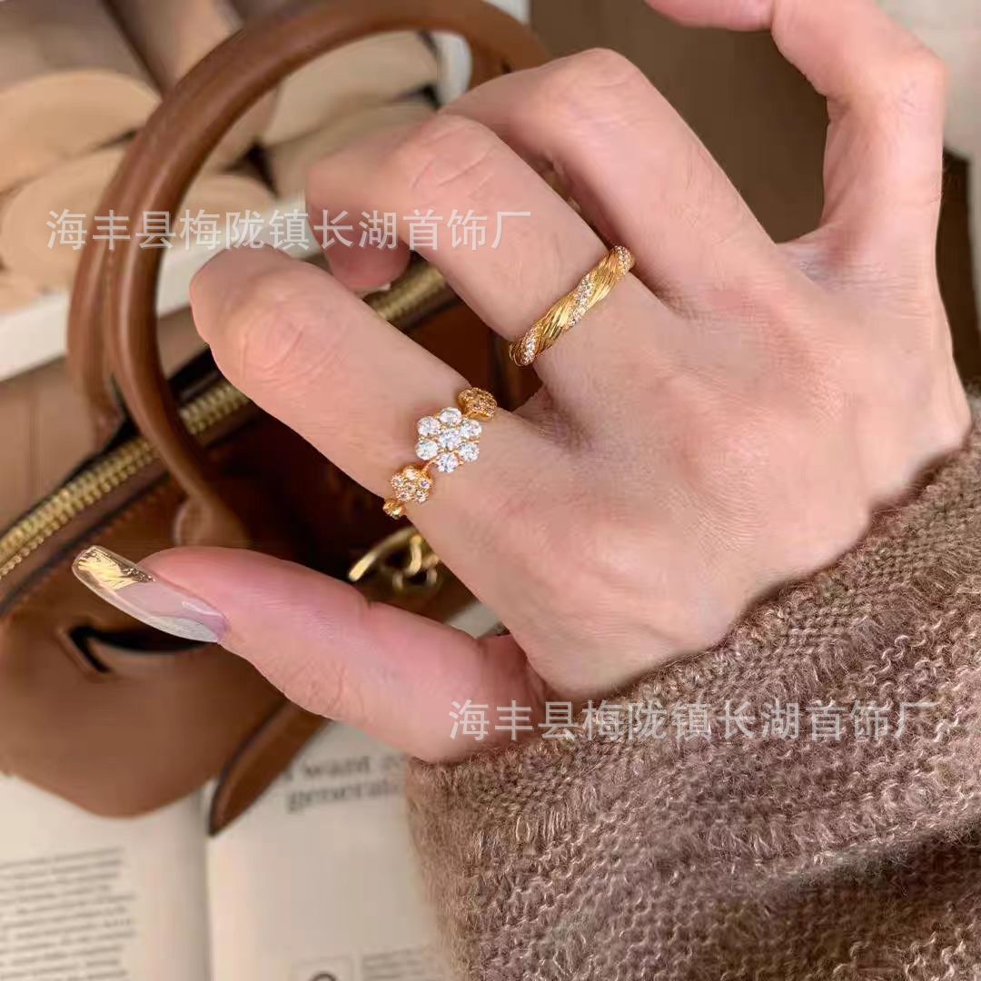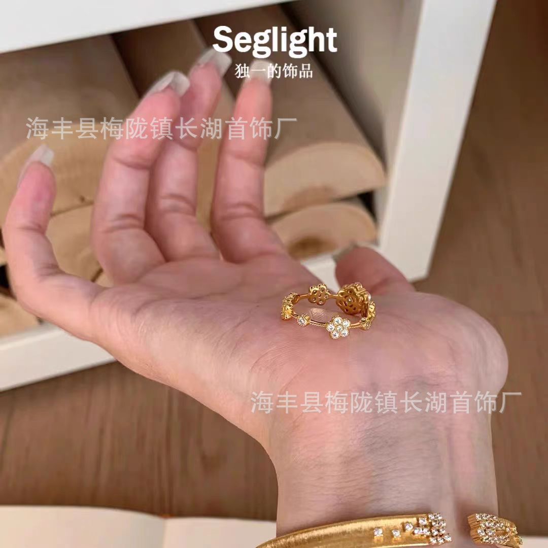 SEG Design Spring Blossom Five Flowers Small Rai Diamond Ring French Exquisite Micro Diamond Ring for Women
