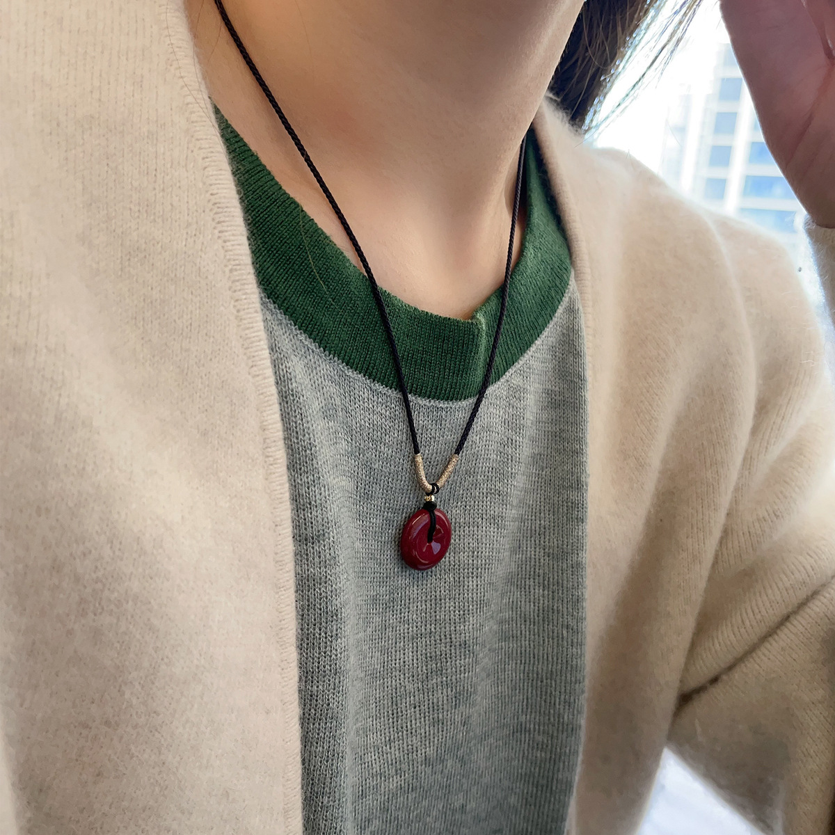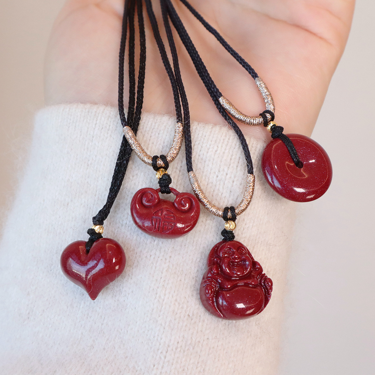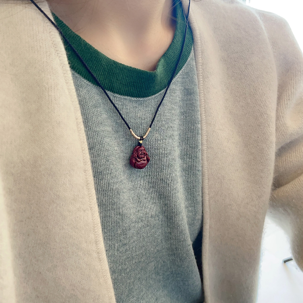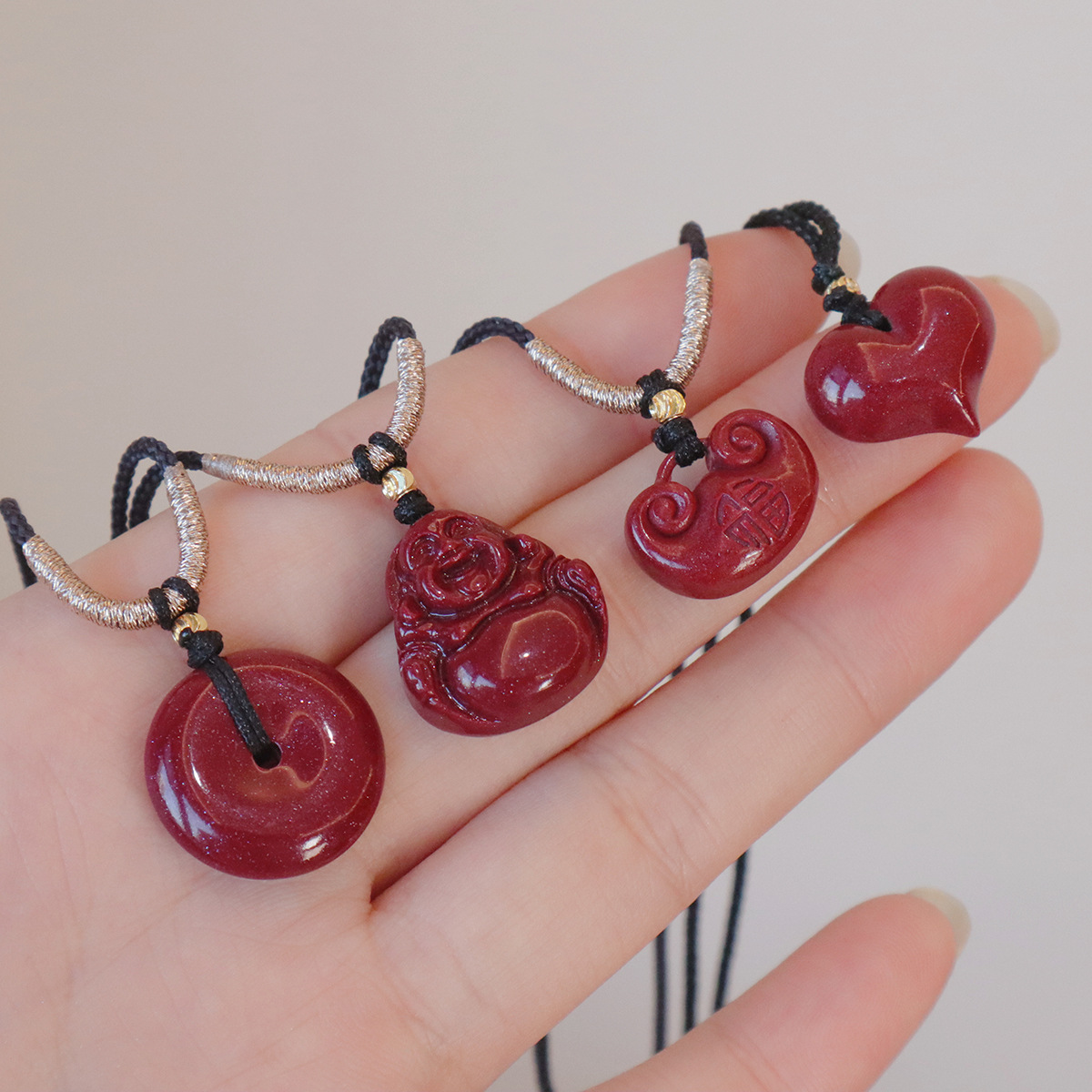 Natural raw ore high content cinnabar necklace peace buckle Buddha love pendant necklace men's and women's sweater chain wholesale