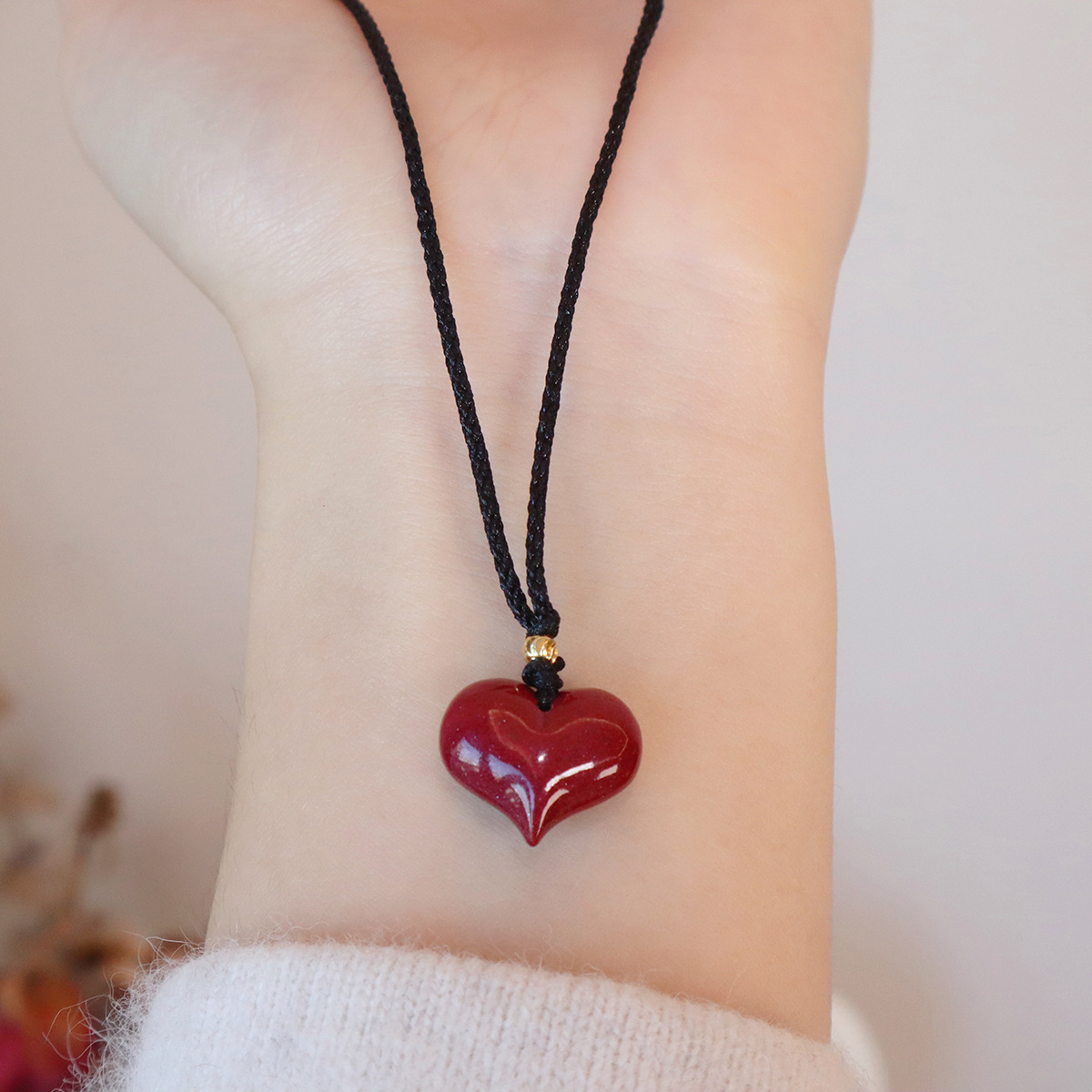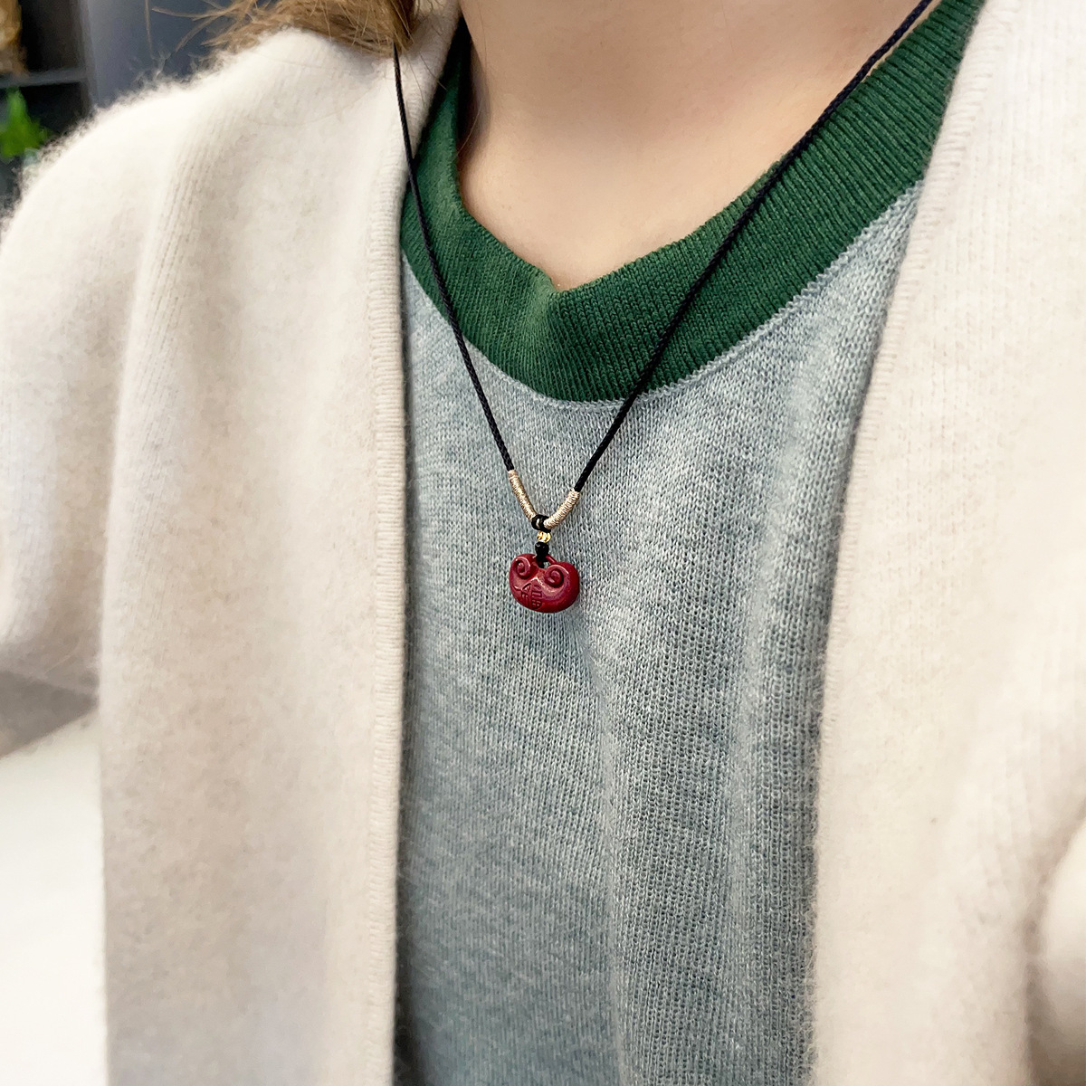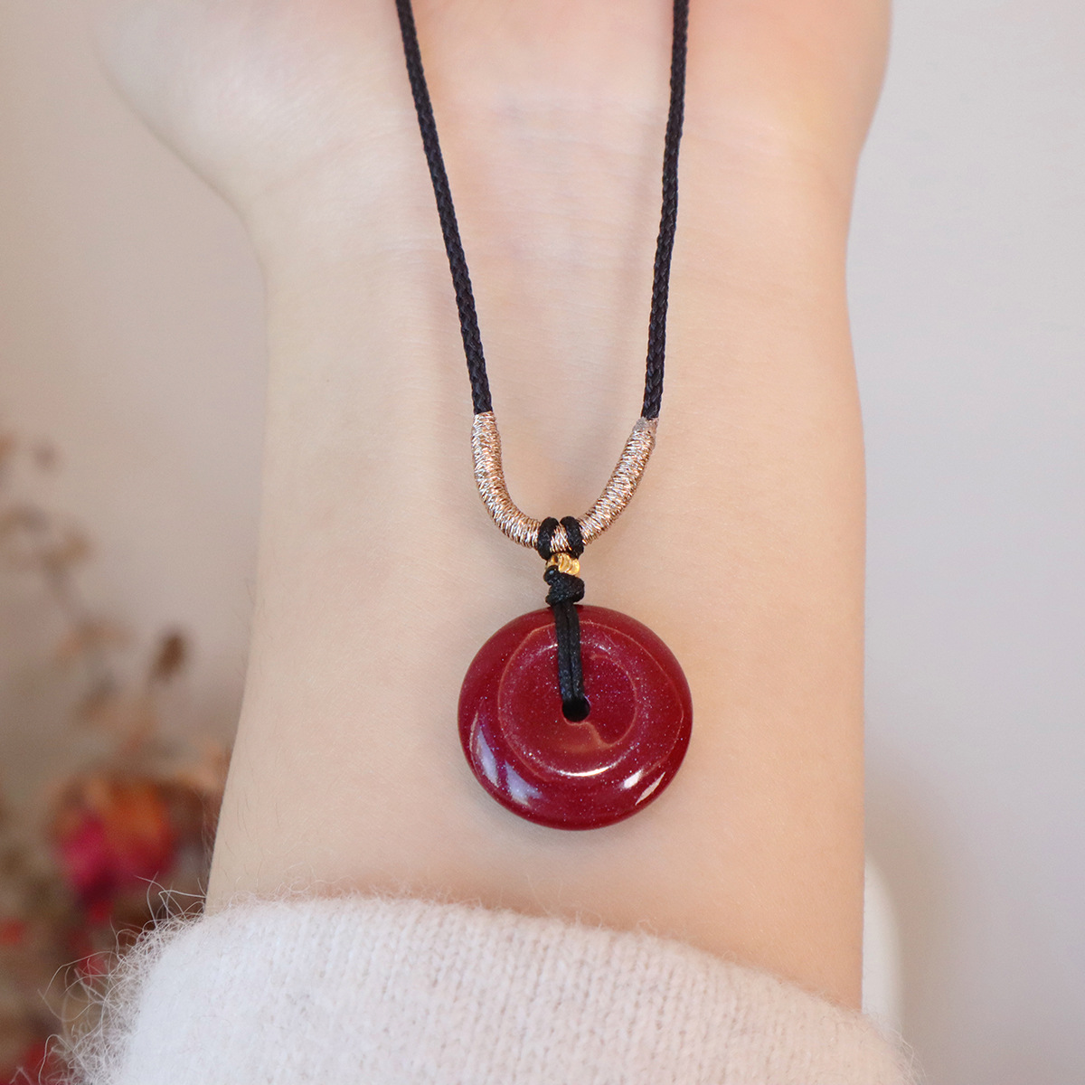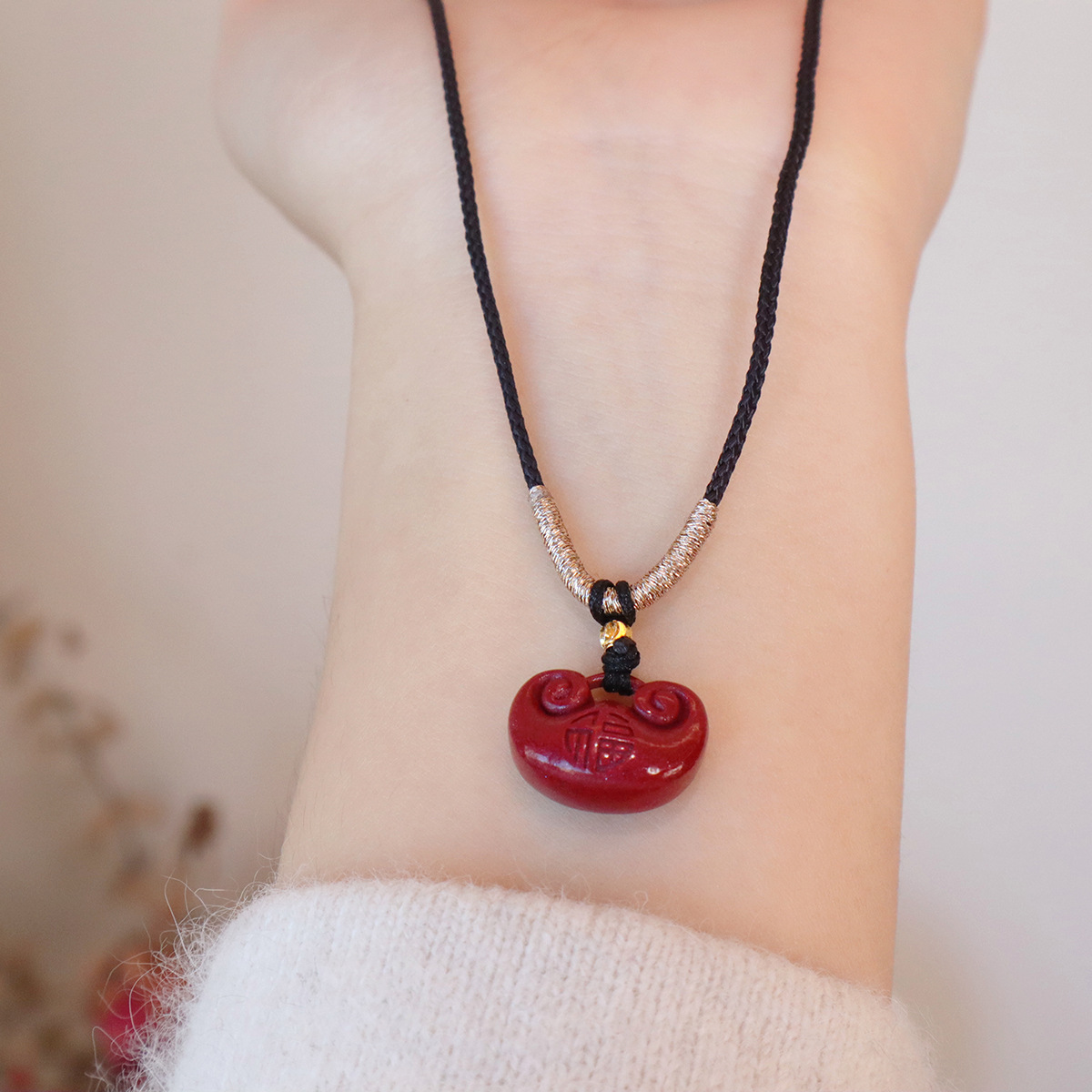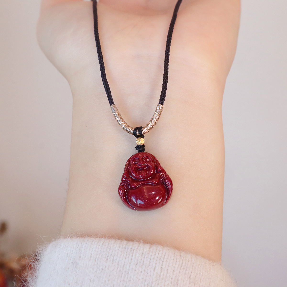 Natural raw ore high content cinnabar necklace peace buckle Buddha love pendant necklace men's and women's sweater chain wholesale