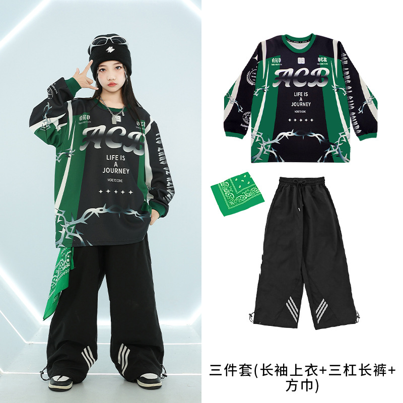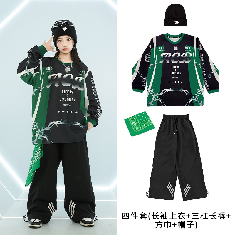 Color: Four-piece set [top + three-bar trousers + square scarf + hat]