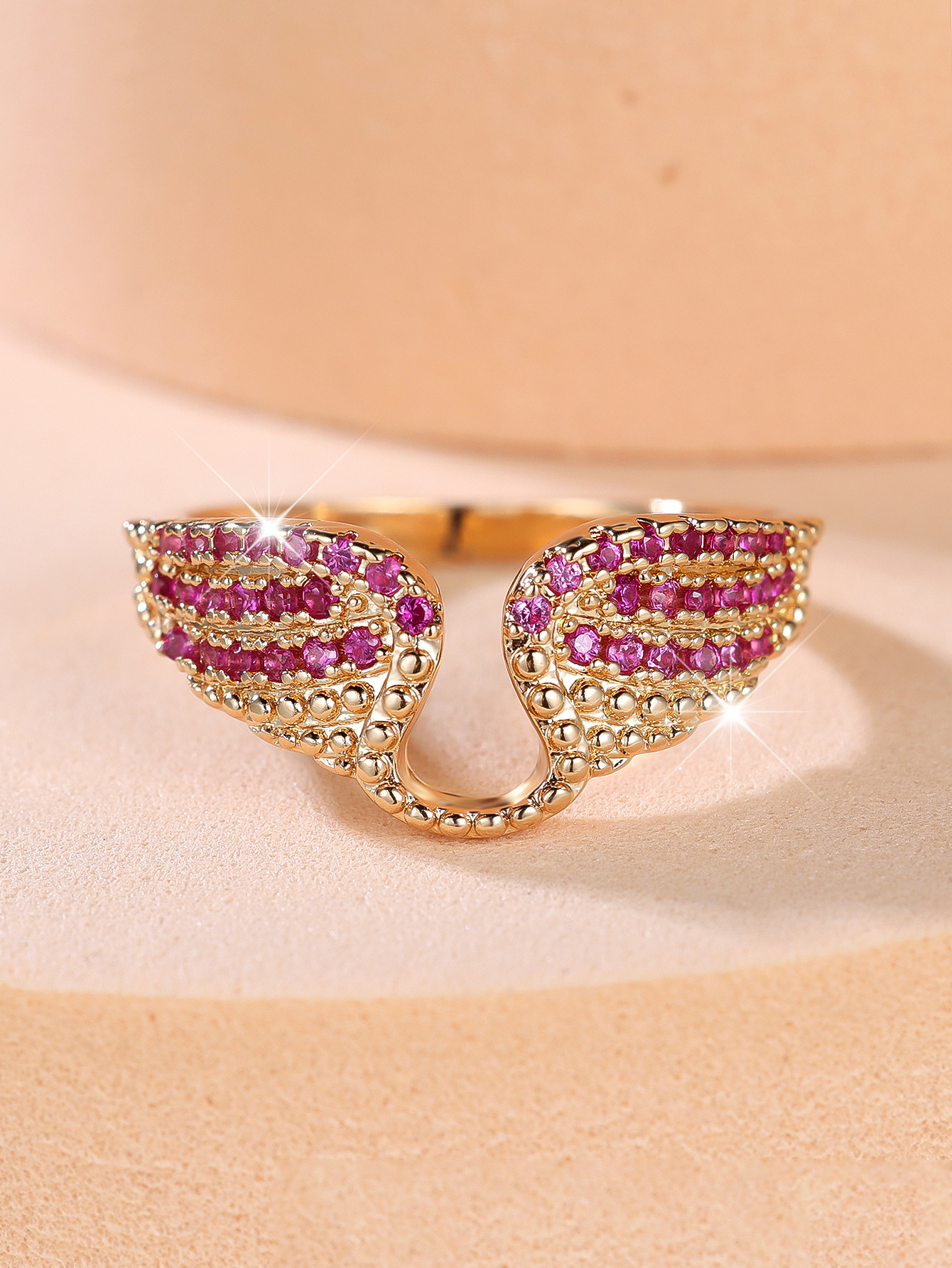 Cross-border New Hot Sale Round Wings Unique Design Ring Light Luxury High-end Women's Handwear Ring
