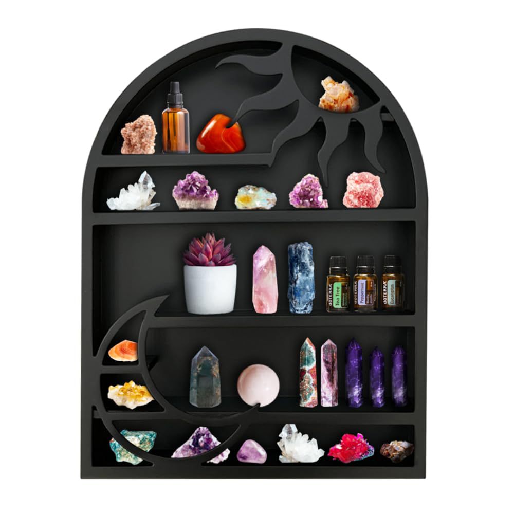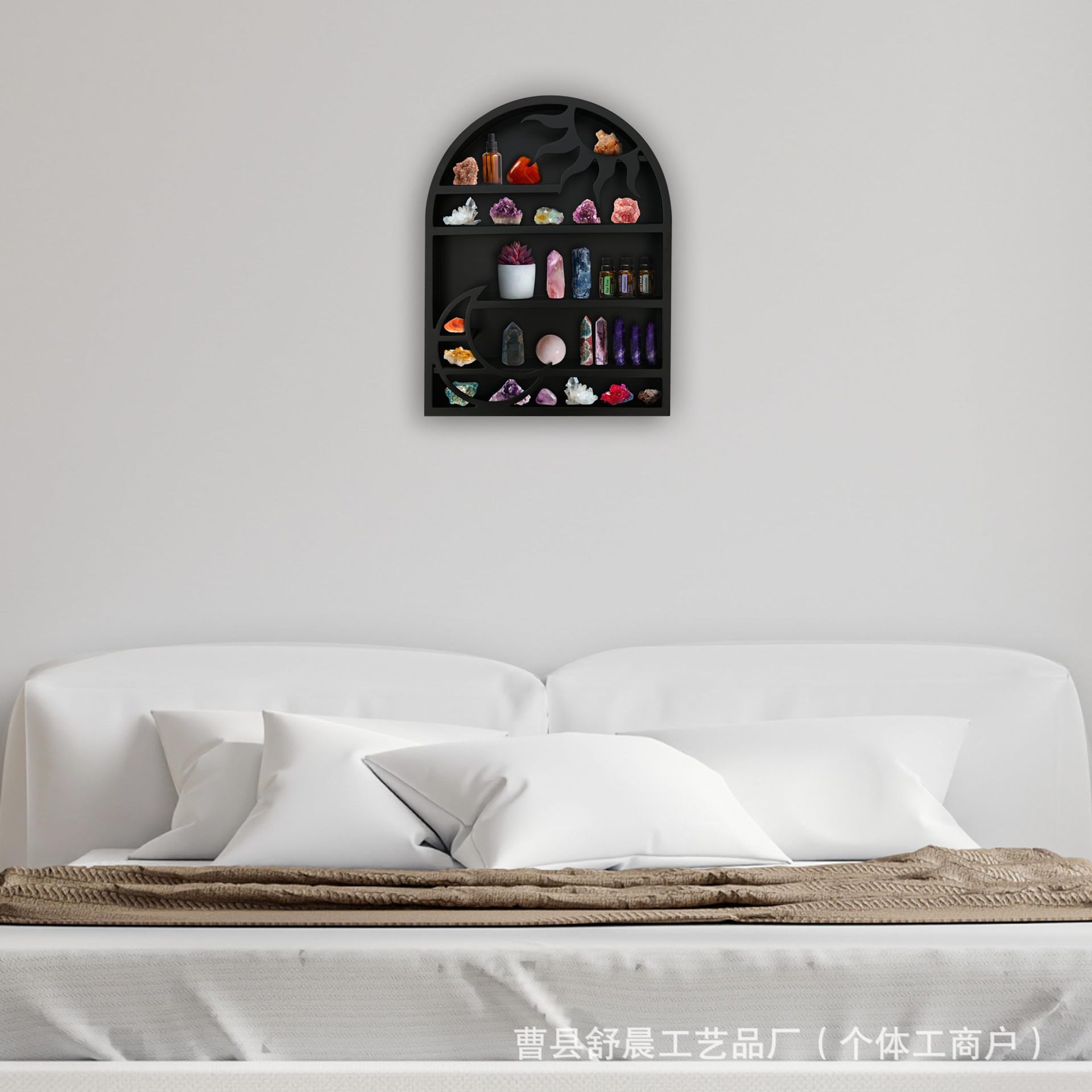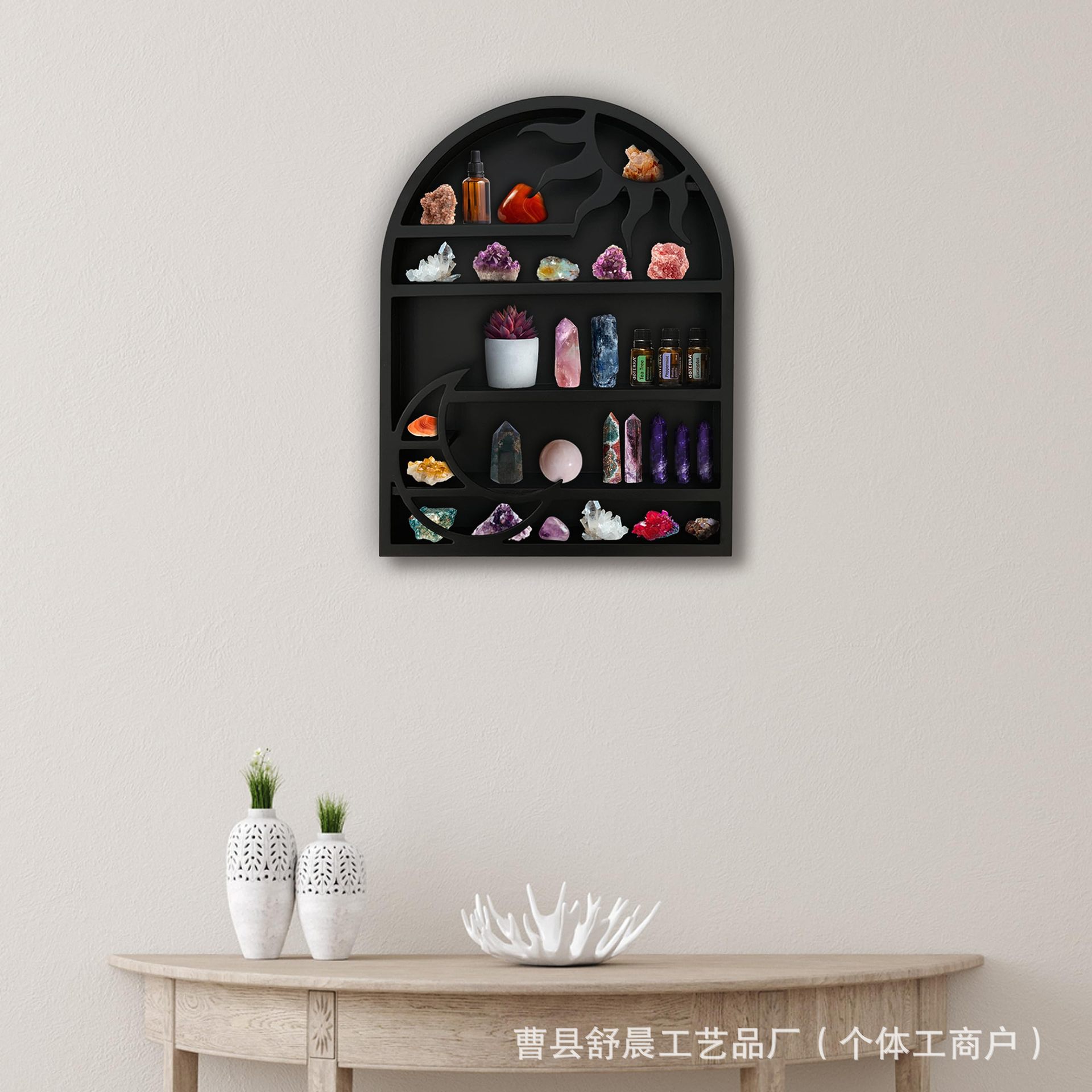Moon Crystal Display Shelves Moon Crystal Display Stand Decorative Wooden Wall Storage Rack