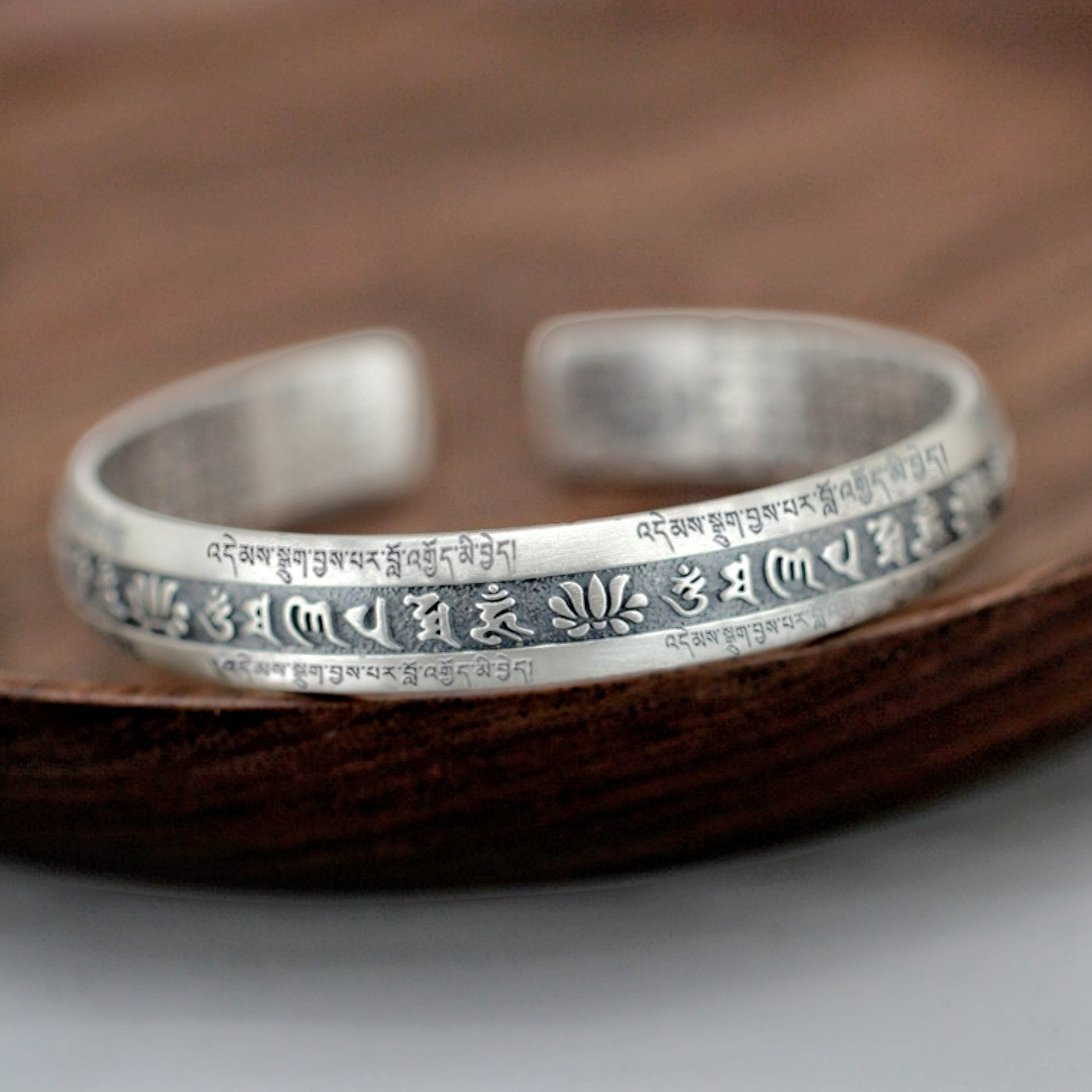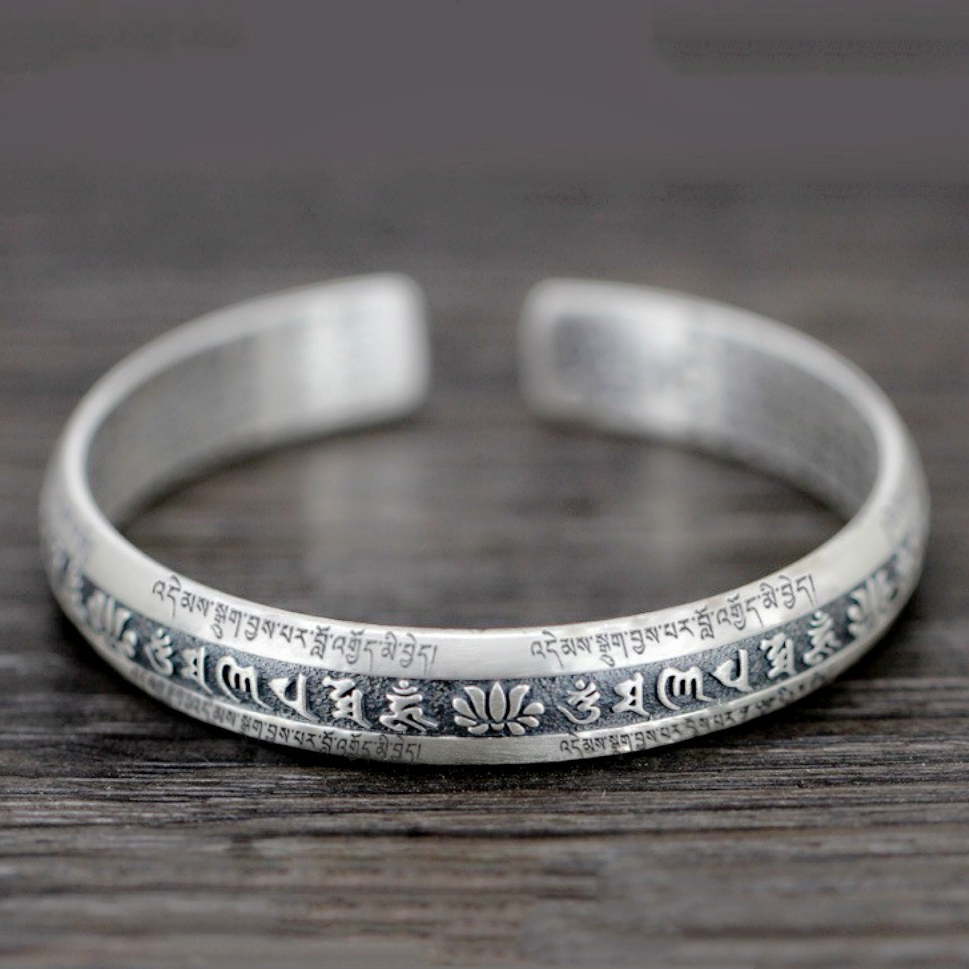 Item number: Kuaishou douyin live broadcast thai silver plated black heart sutra sterling silver bracelet ethnic style retro opening adjustable factory wholesale
