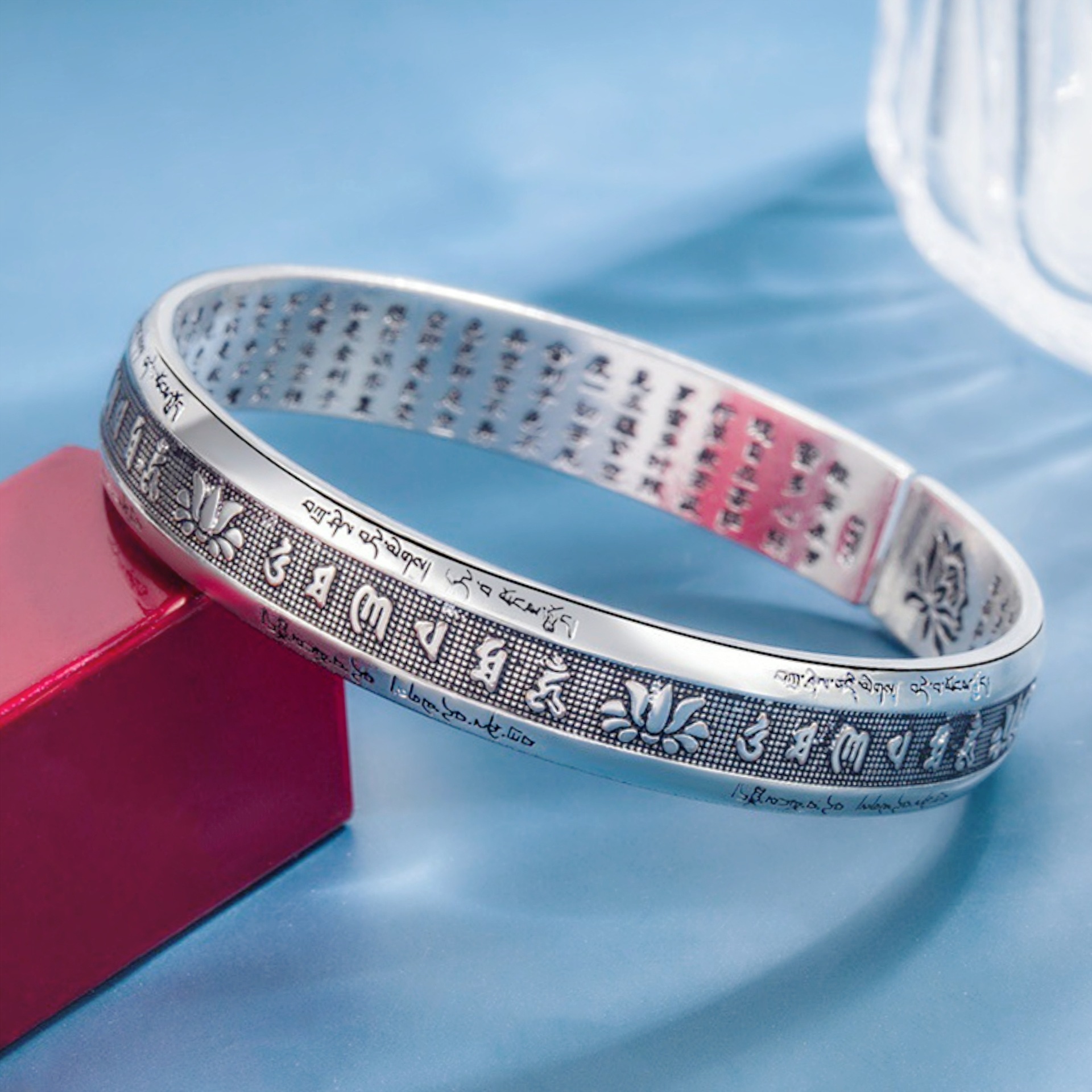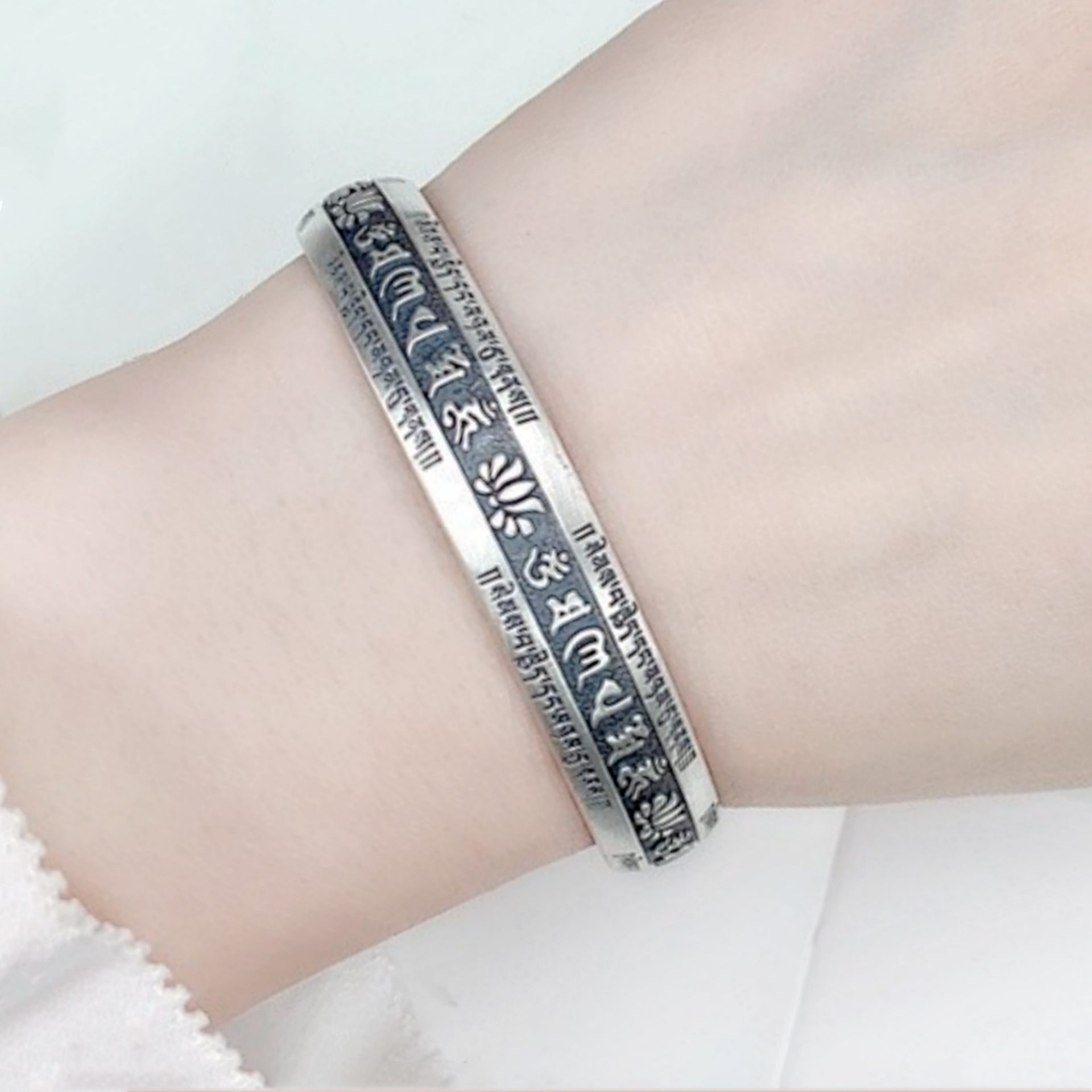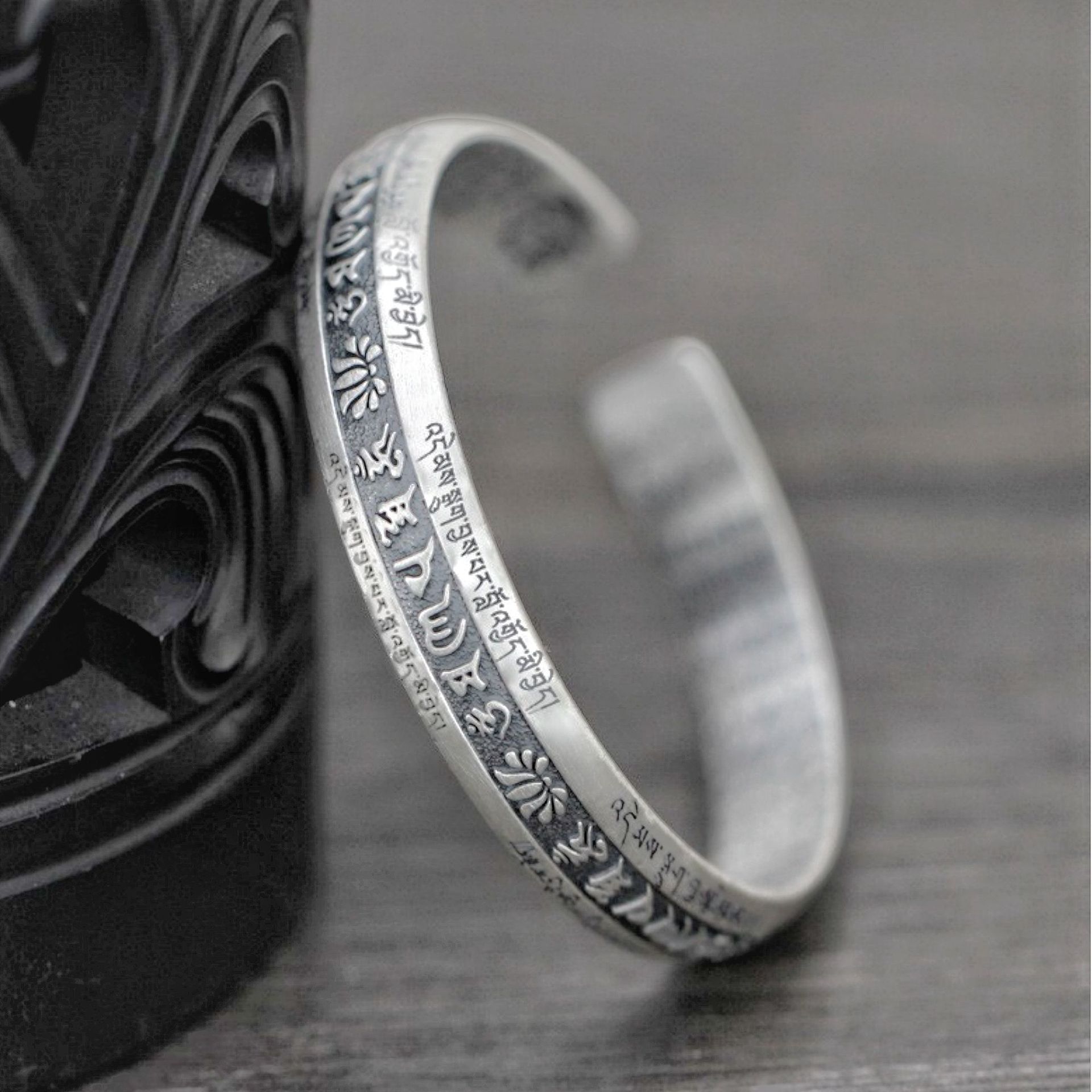 Weight: 32g kuaishou douyin live broadcast thai silver plated black heart sutra sterling silver bracelet ethnic style retro opening adjustable factory wholesale