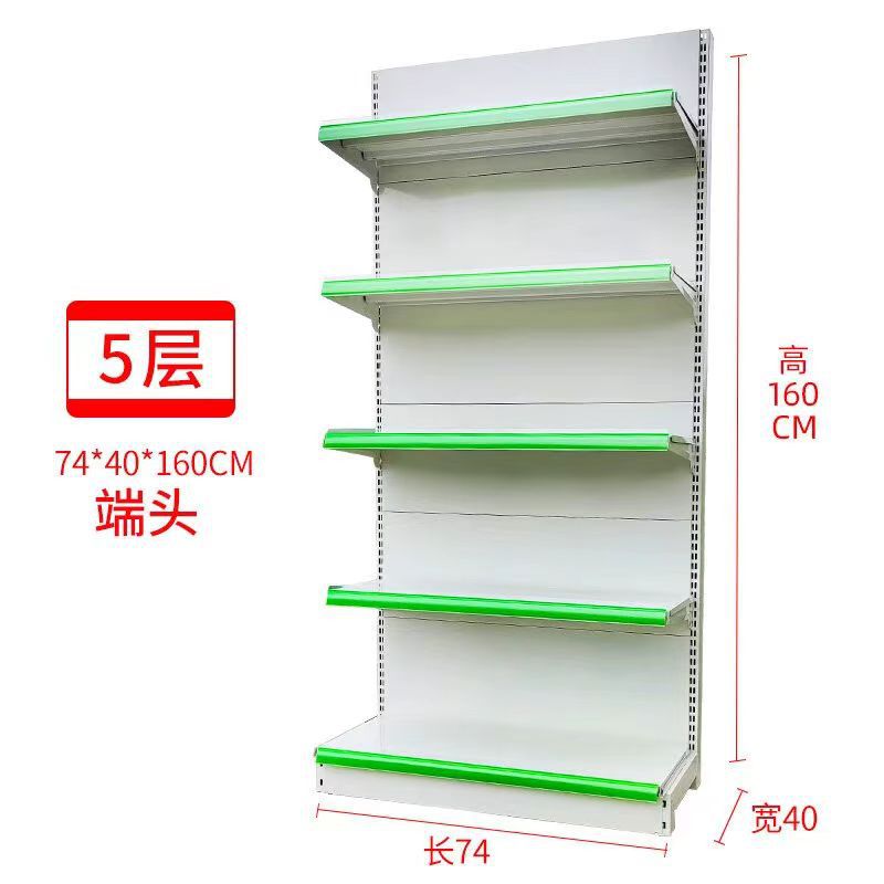 超市货架单面长度是0.9米0.75米长的(价格都是一样的哦),高度有1.3米、1.6米、1.9米、2.2米、2.4米