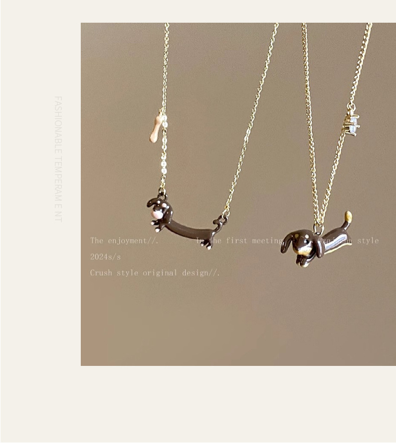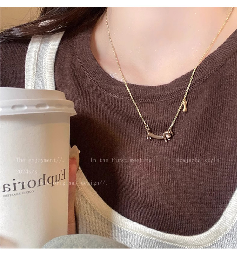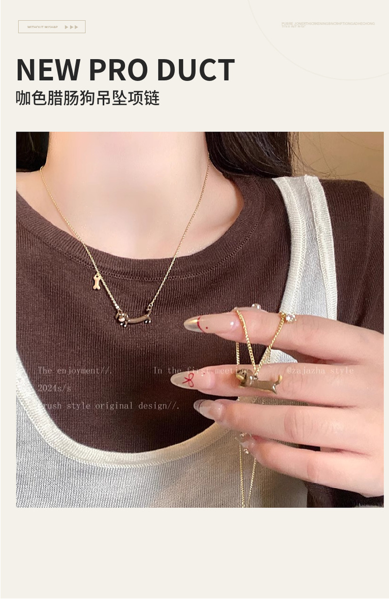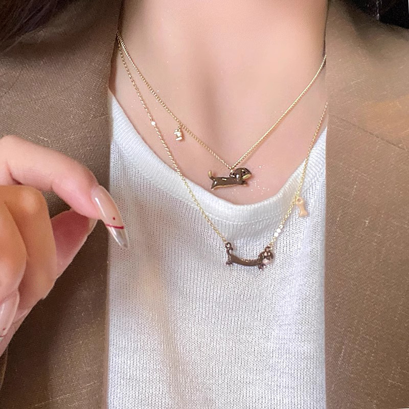 Cute Dachshund Pendant Necklace Women's Niche Light Luxury High-end Sweater Chain Elegant All-match Autumn and Winter Sweater Chain