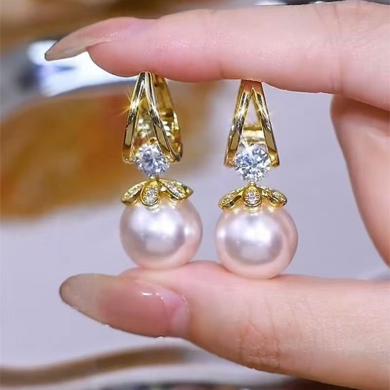 French Style Light Luxury High-end Micro-set Pearl Earrings 2024 New Elegant Exquisite Earrings Women's Fashionable All-match Earrings