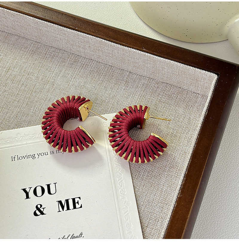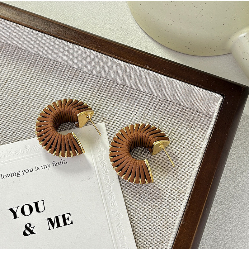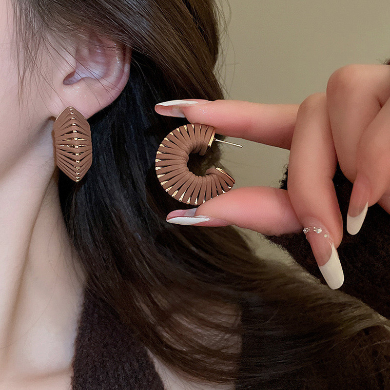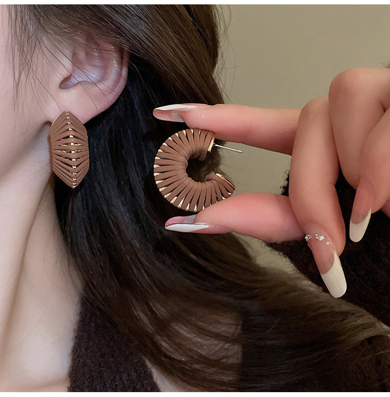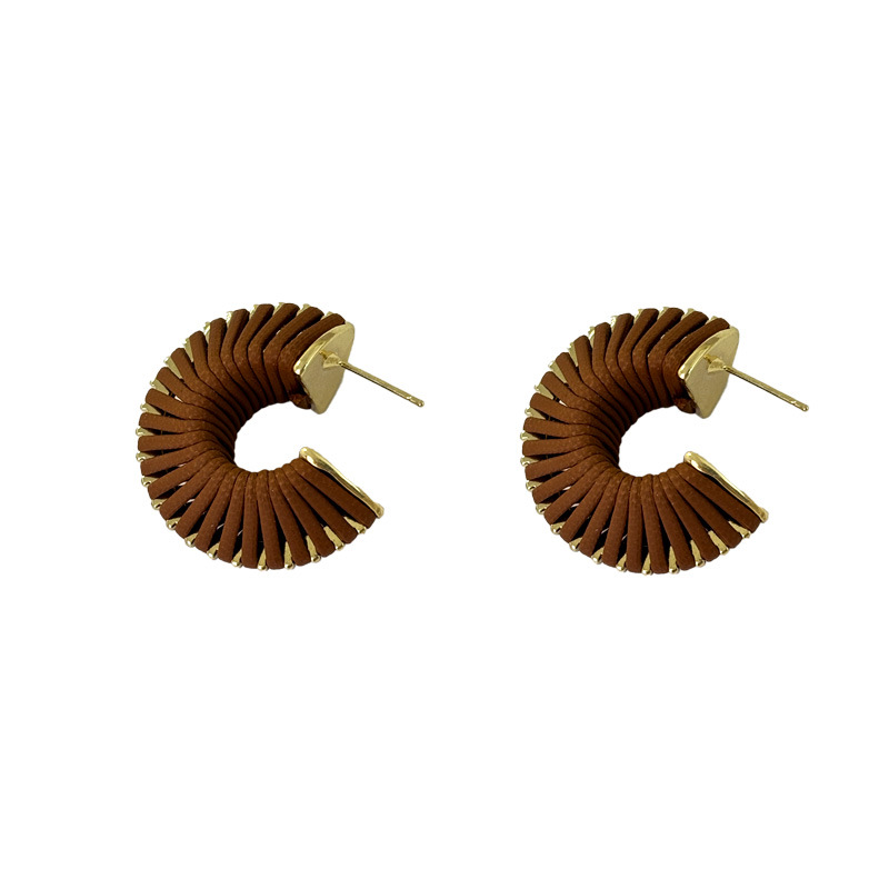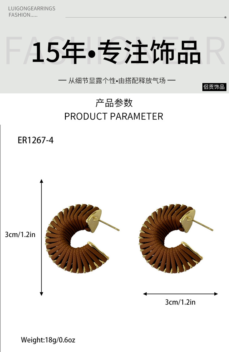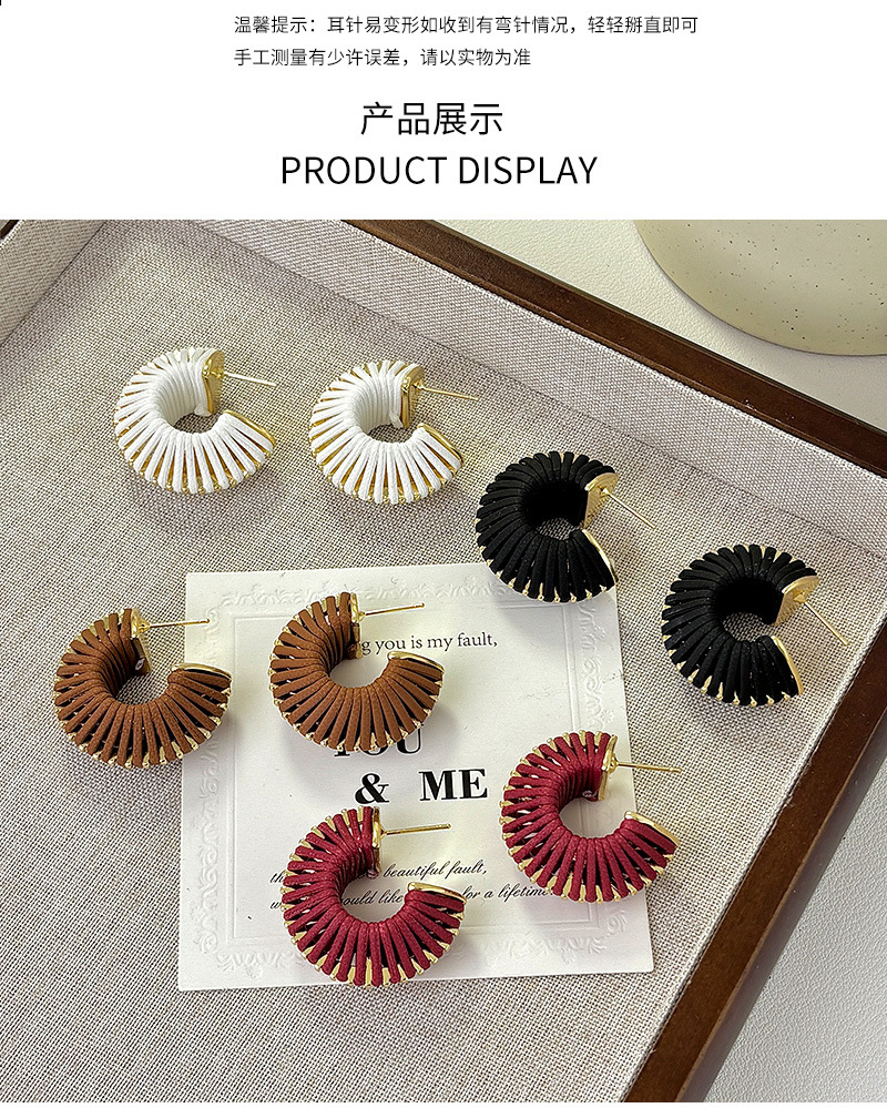 European and American artificial leather C- shaped striped earrings cross-border ins retro fashion earrings niche high-end earrings wholesale