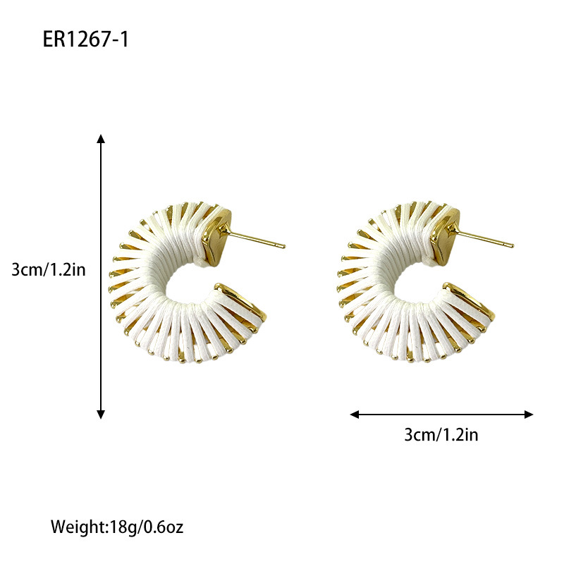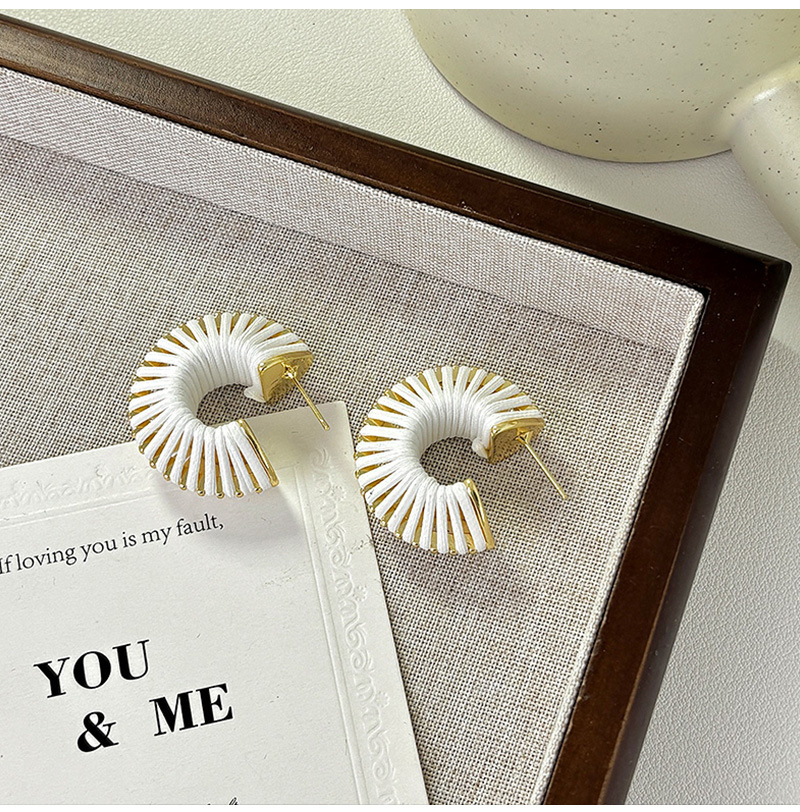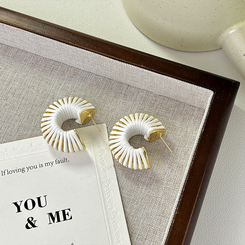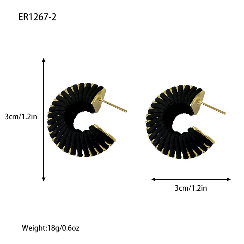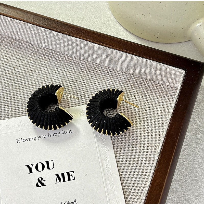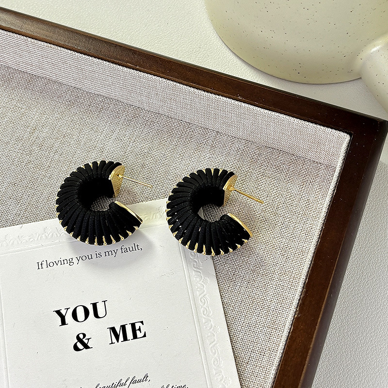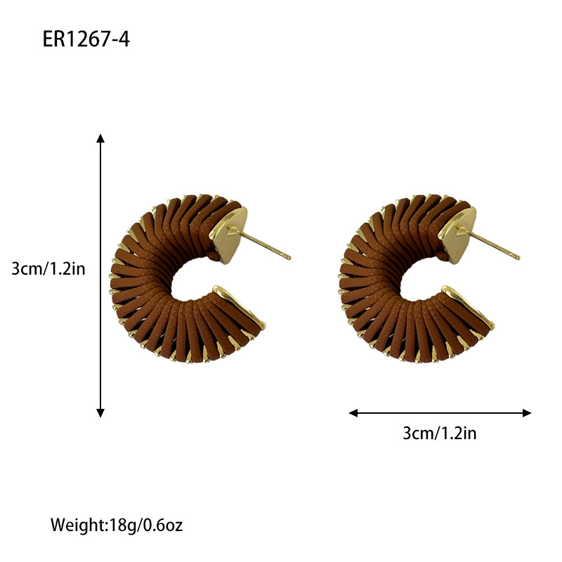 European and American artificial leather C- shaped striped earrings cross-border ins retro fashion earrings niche high-end earrings wholesale