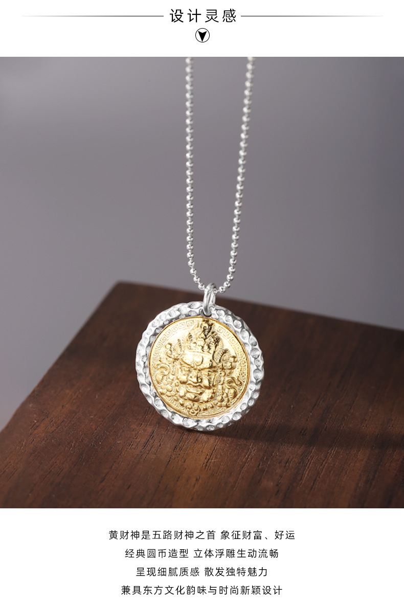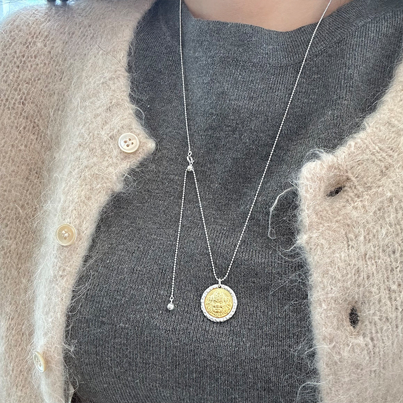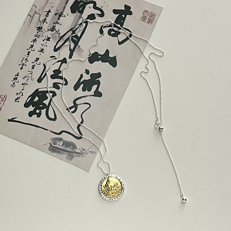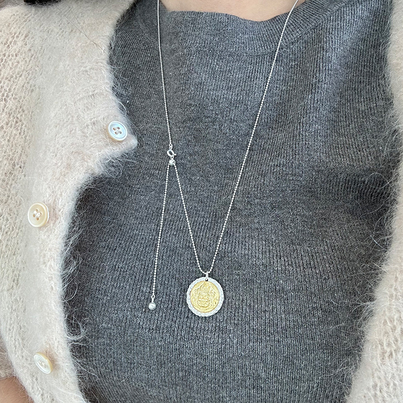 925 Sterling Silver Gold and Silver Color Matching God of Wealth Necklace Women's Long Design Round Brand Sweater Chain Autumn and Winter New Hot Sale 7135B