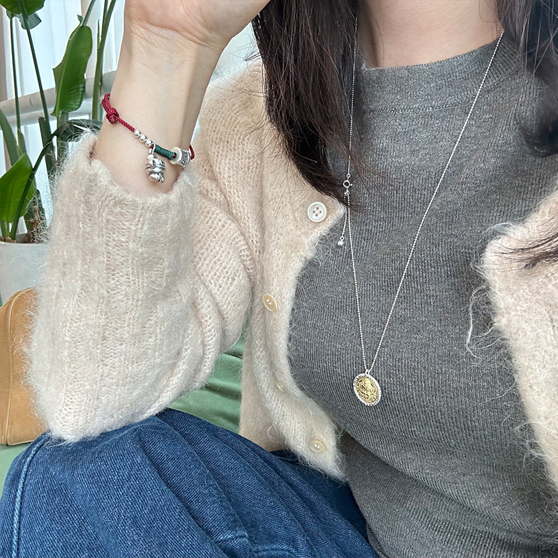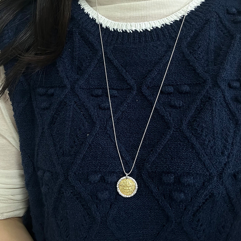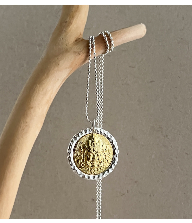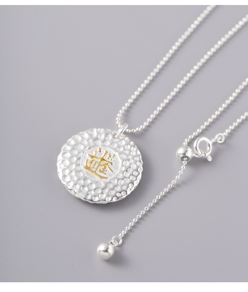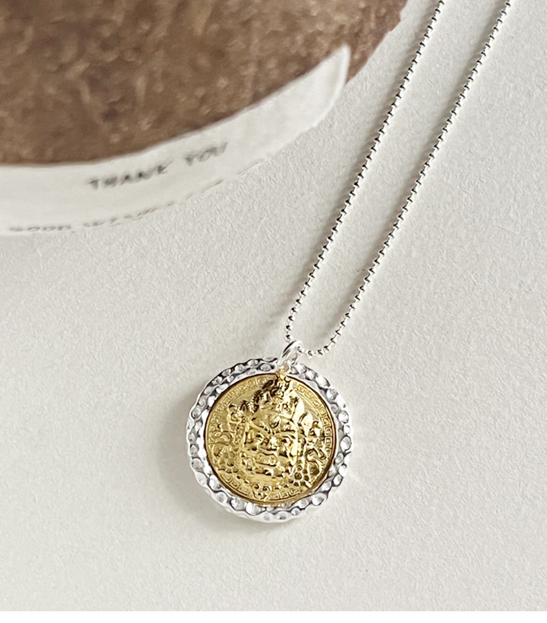 925 Sterling Silver Gold and Silver Color Matching God of Wealth Necklace Women's Long Design Round Brand Sweater Chain Autumn and Winter New Hot Sale 7135B