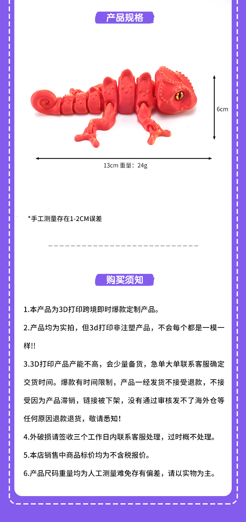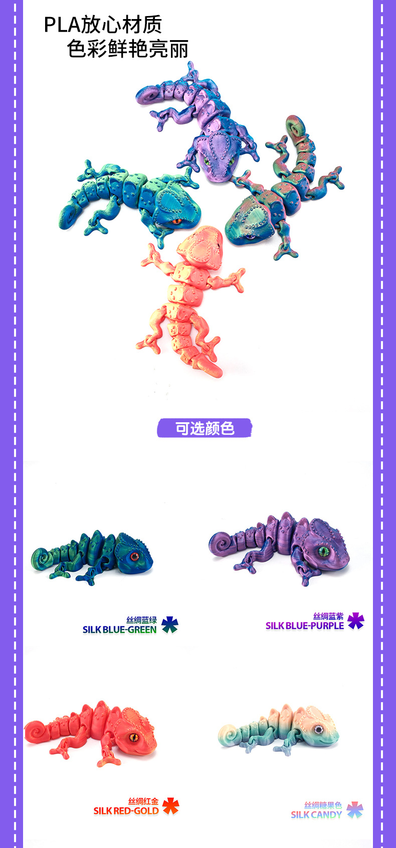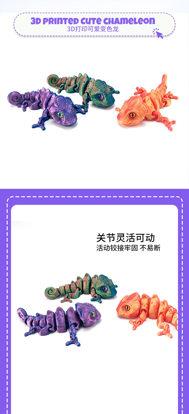 3D printing cute chameleon cute lizard joint movable simulation eyes toy ornaments children gift