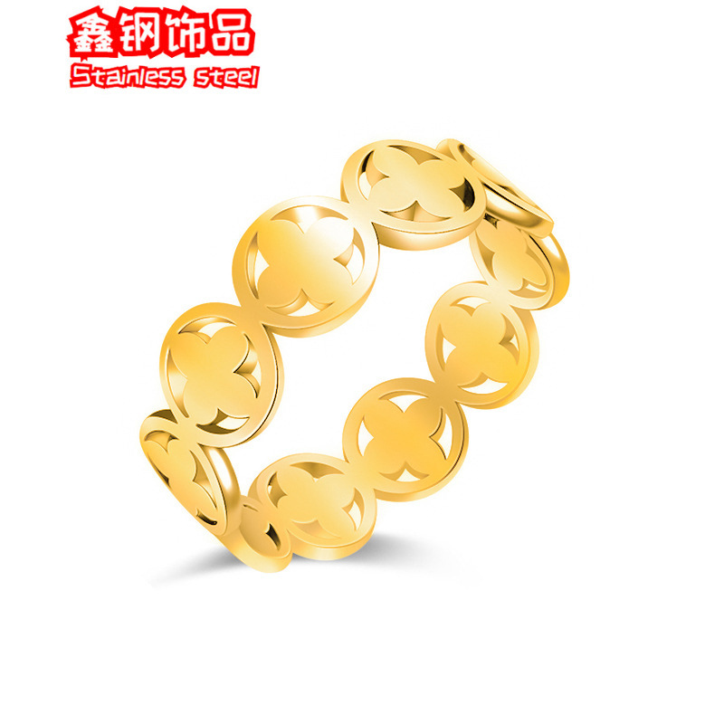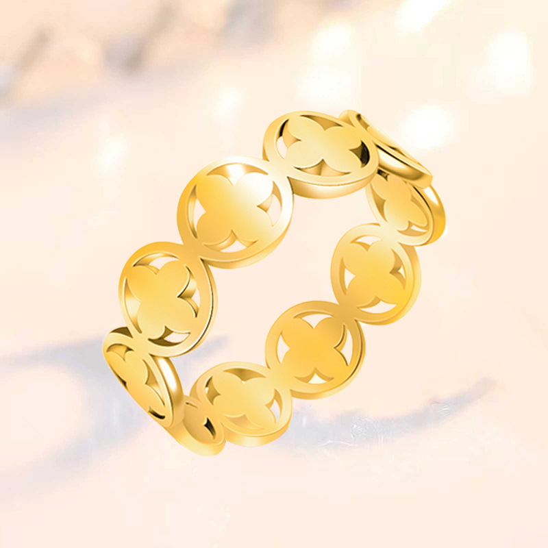 in stock Light Luxury Titanium Steel Four-leaf Clover Ring Women's Color-free Design Niche South Korea Hip Hop Popular Style Women's Fine Pad Ring