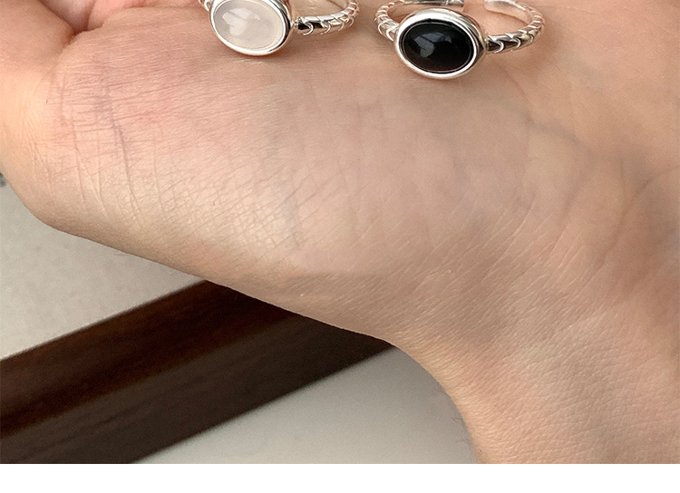 Oval Chalcedony Ring Women's Fashion Personalized Ins Cool Style Niche Design Sense Opening Adjustable Ring Jewelry