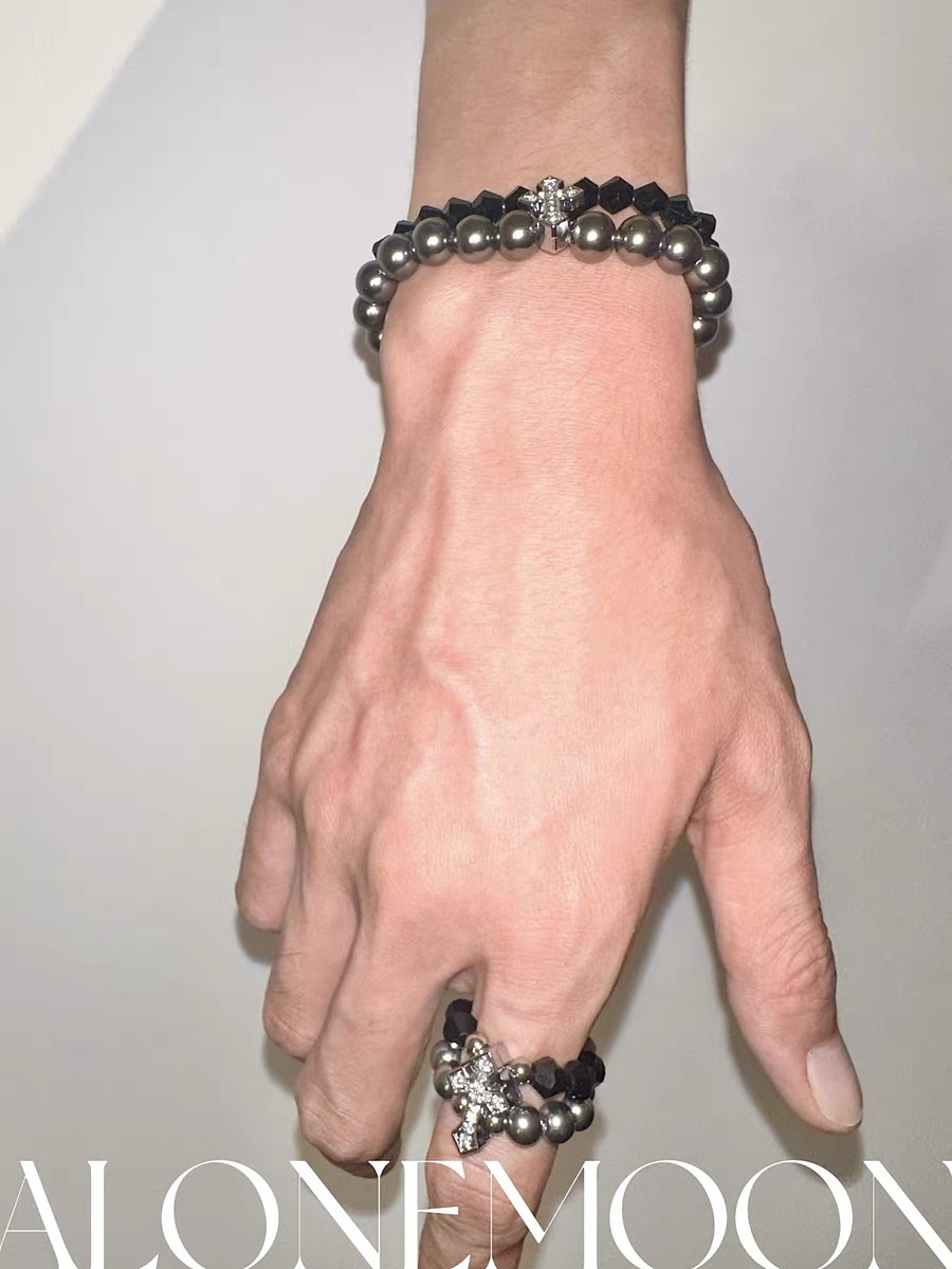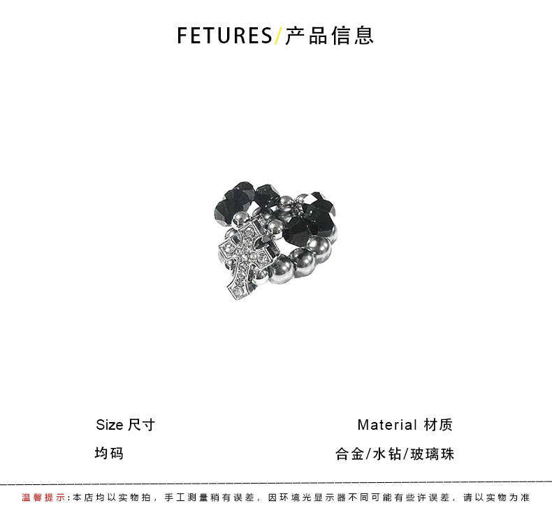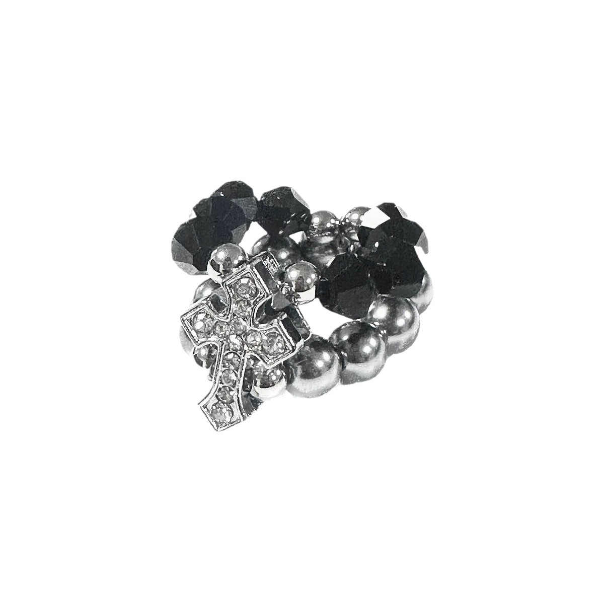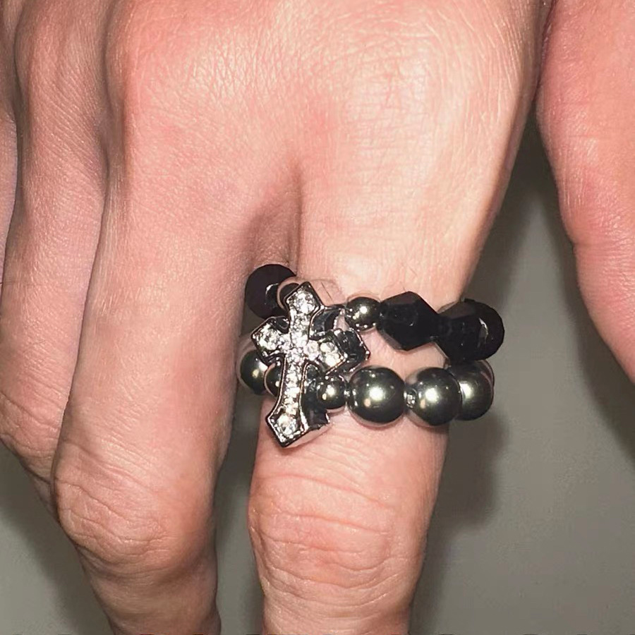 Original Design Black Silver Pearl Stretch Flash Diamond Cross Ring Hip Hop Punk Style Boys Ring