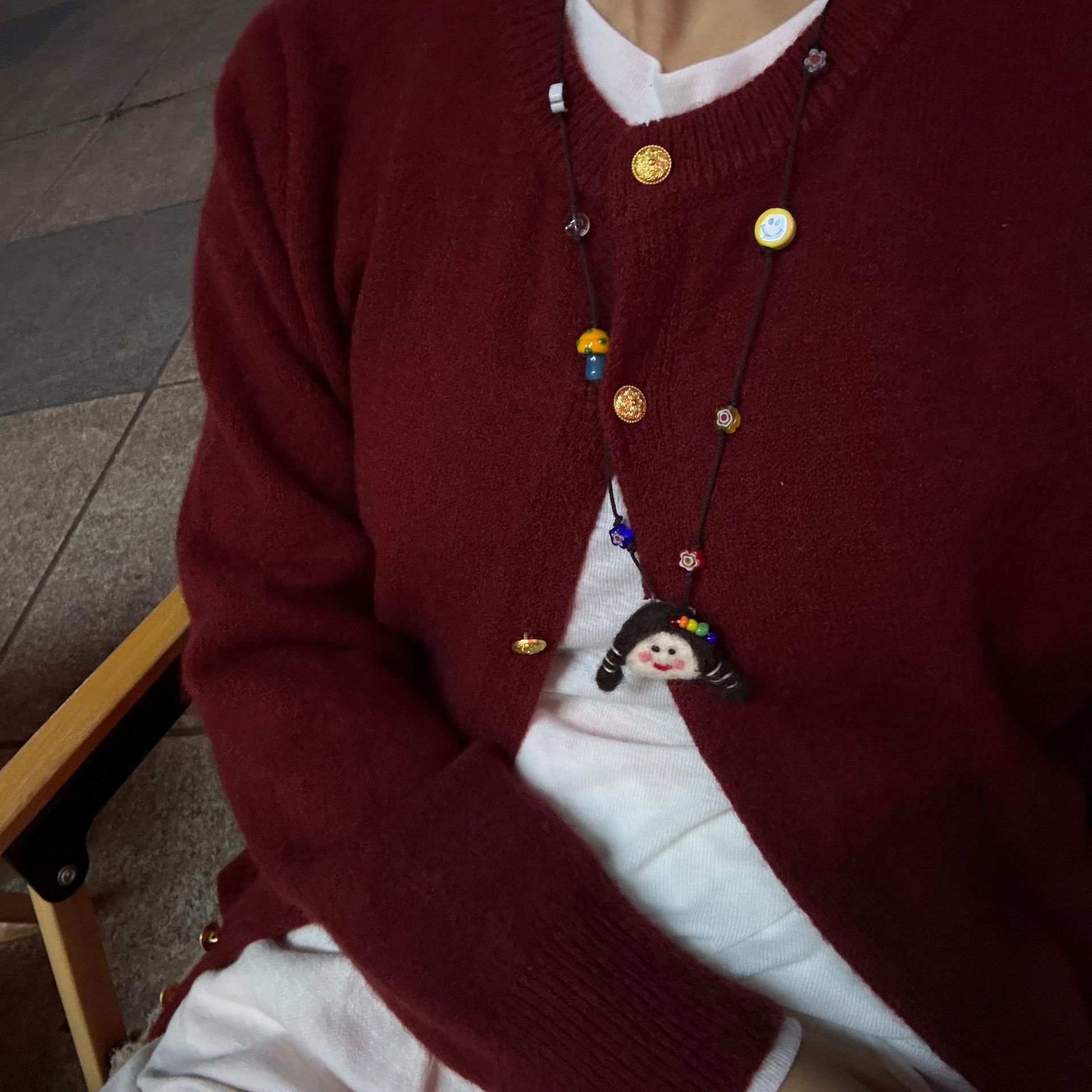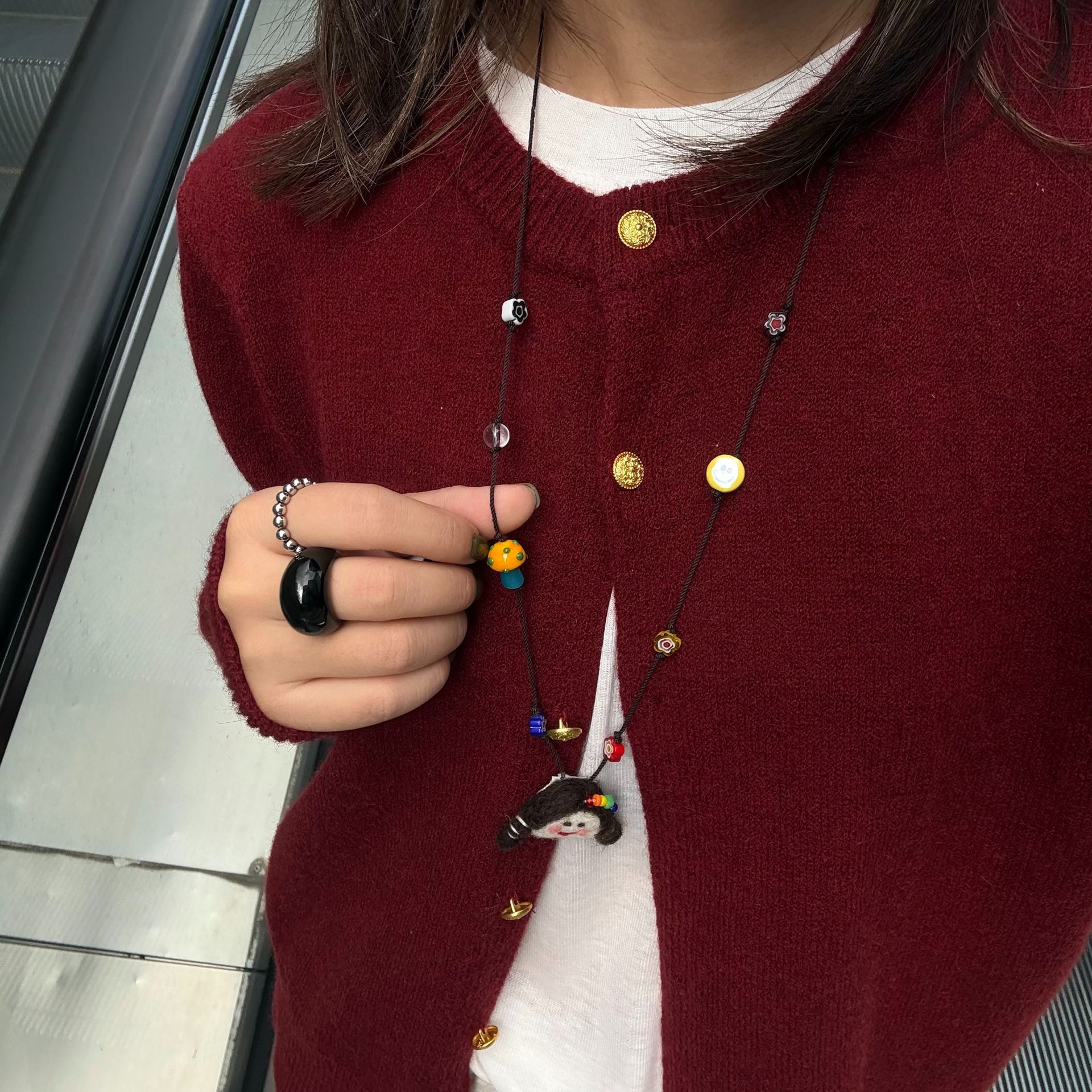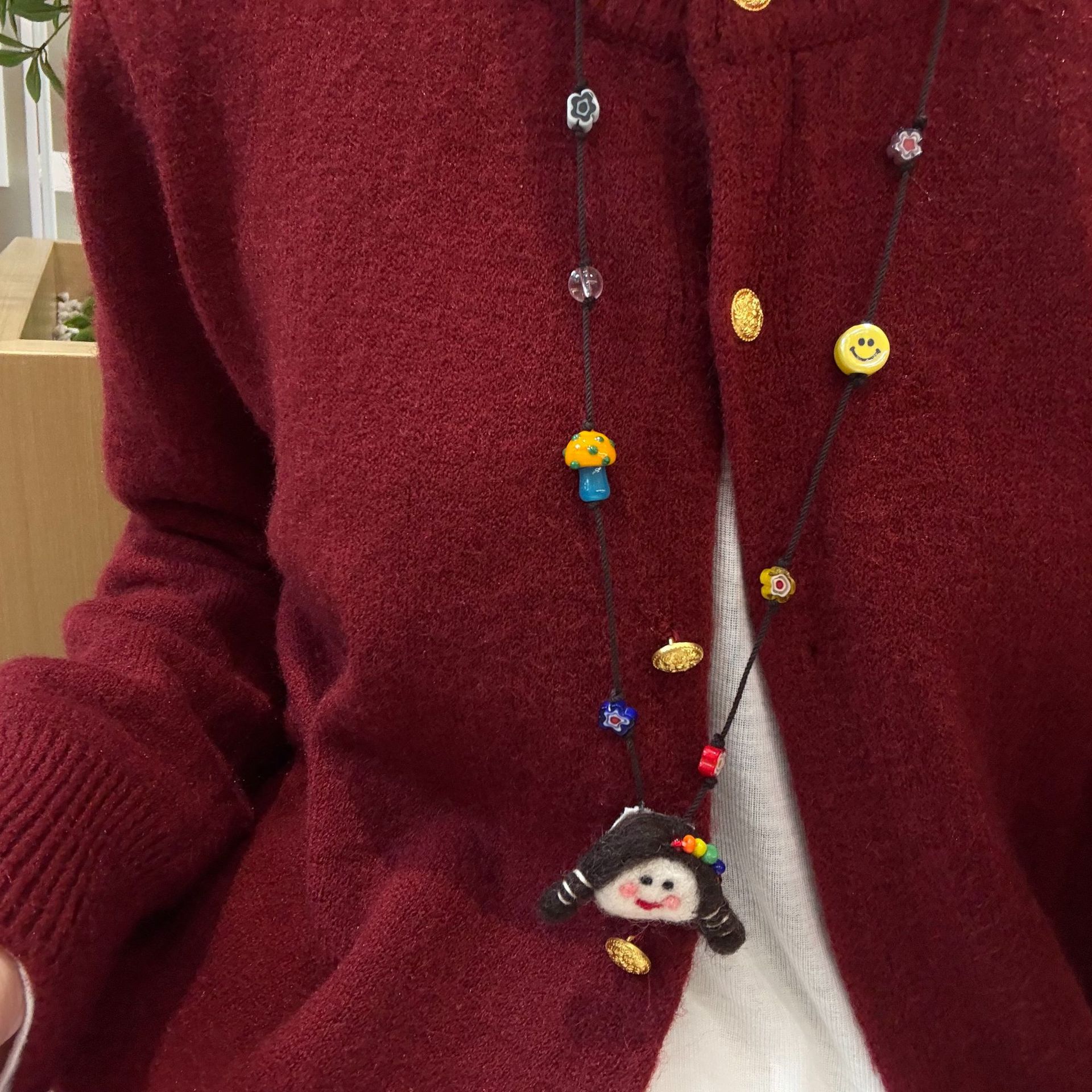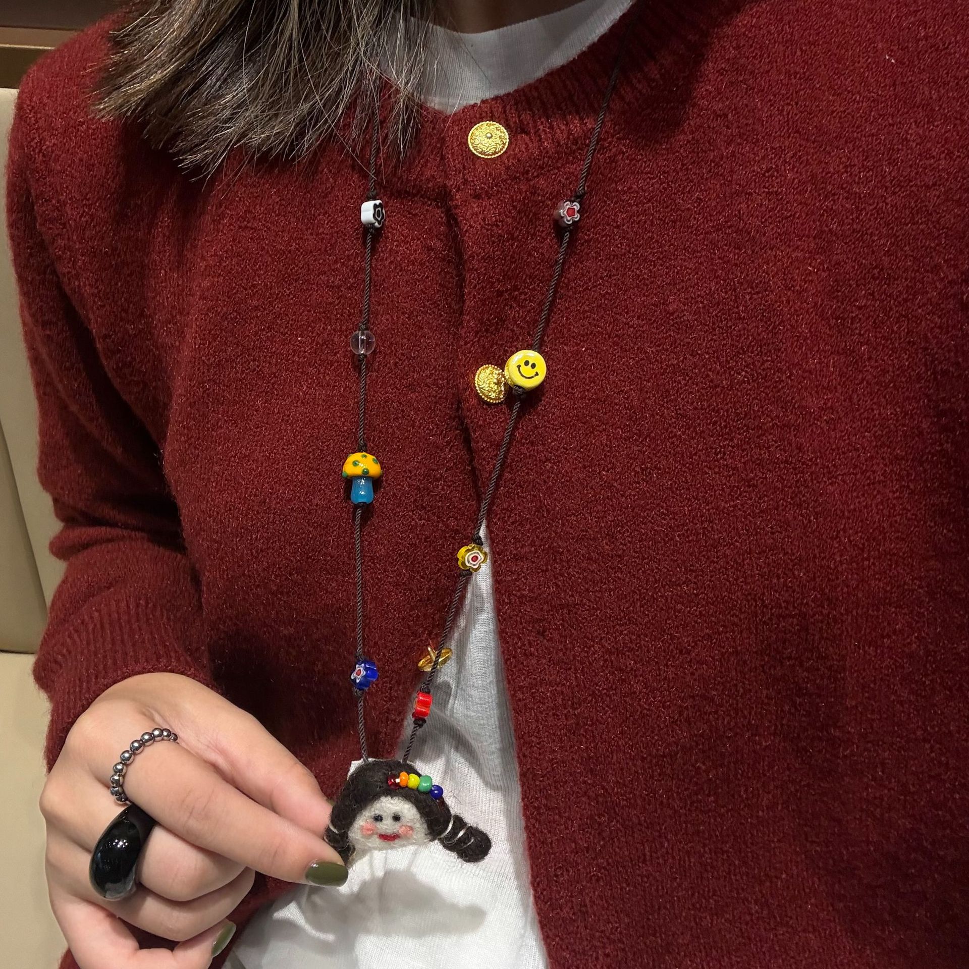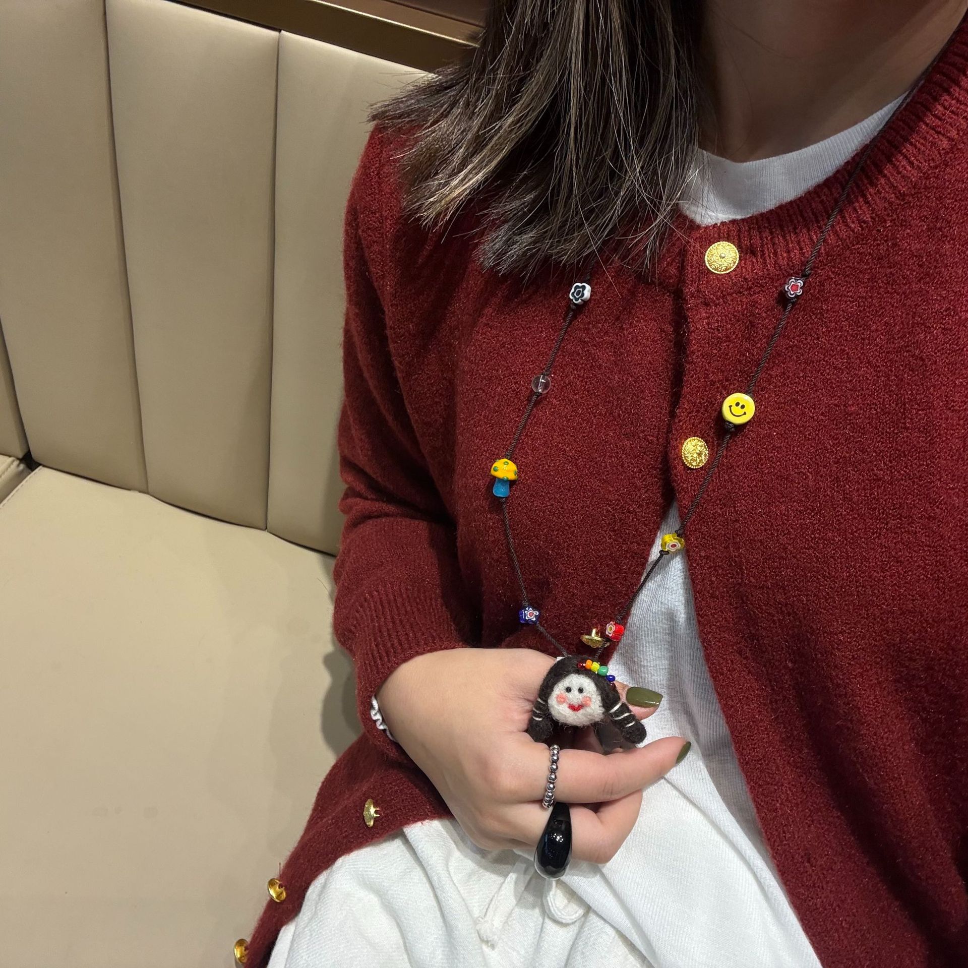 Autumn and Winter Cute Childlike Doll Pendant Necklace Women's Long Fashion Cartoon Woolen Chain All-match Elegant Neck Hanging Accessories