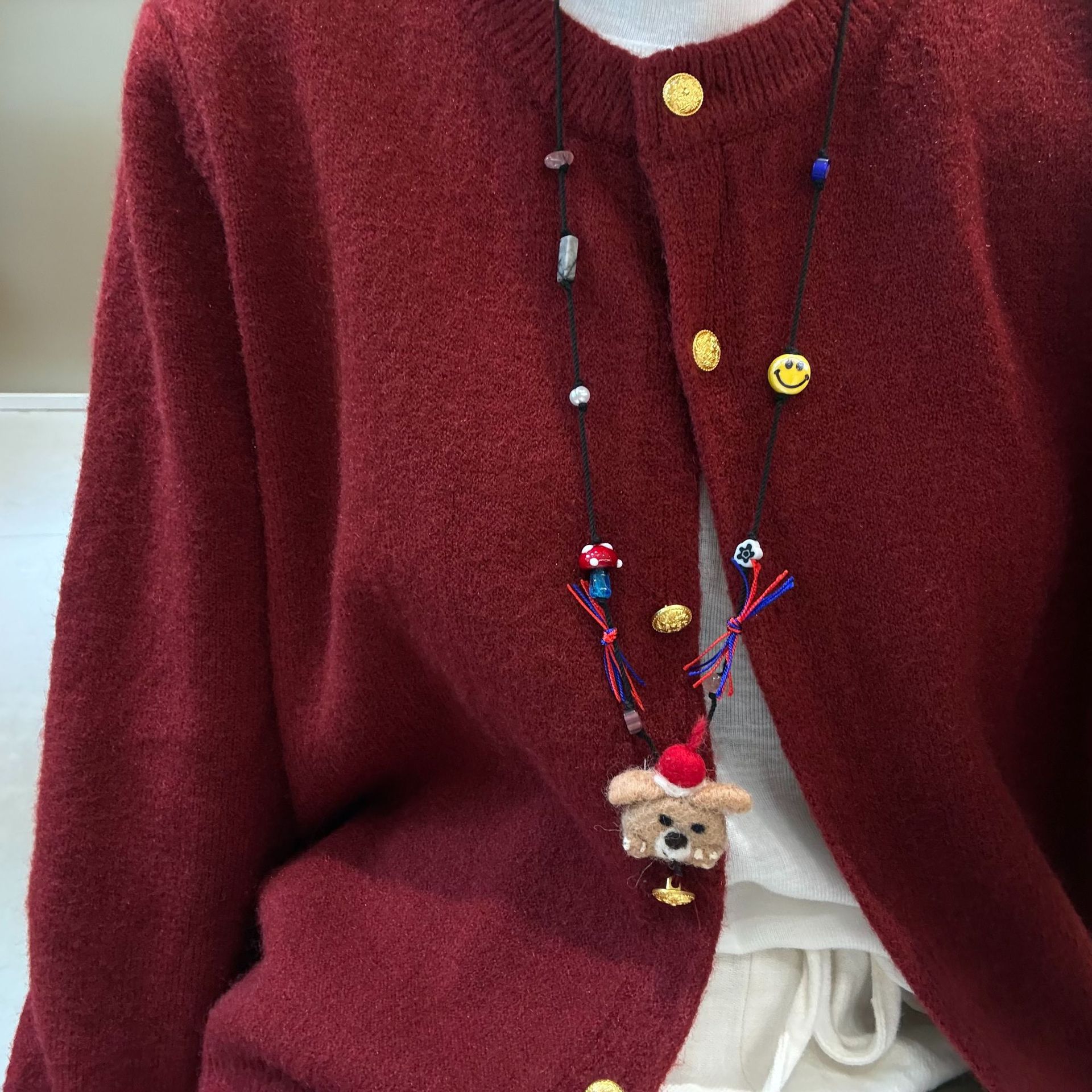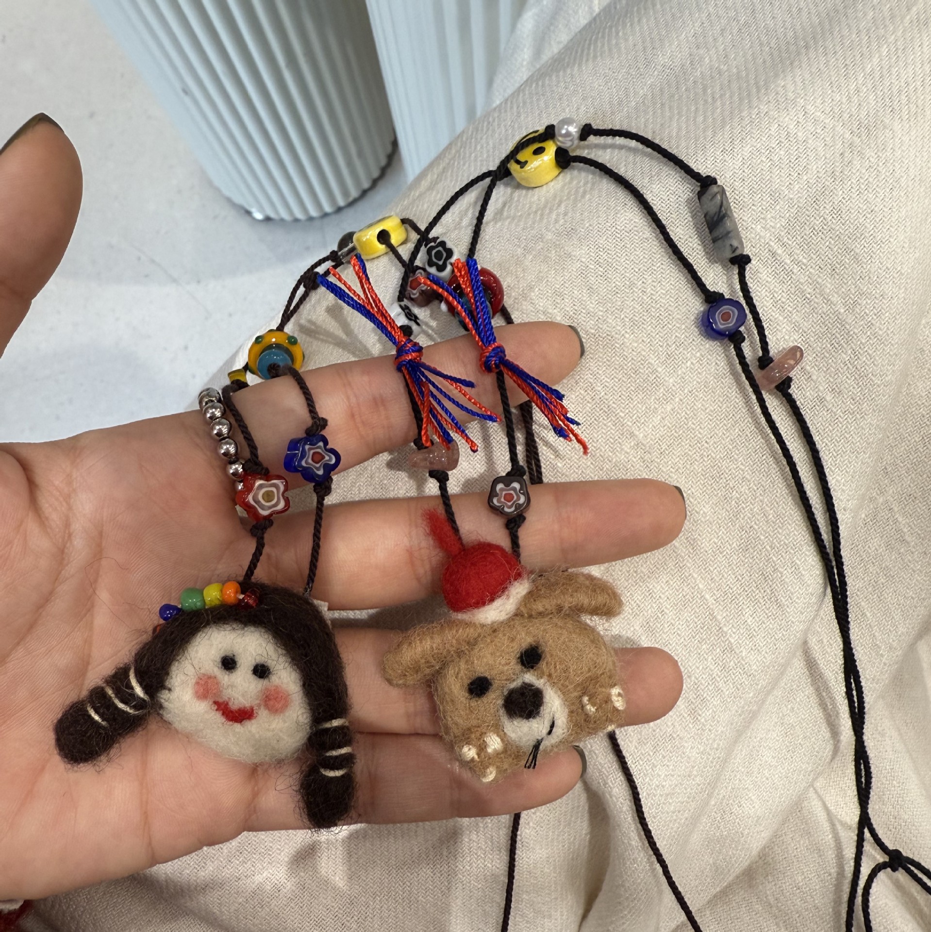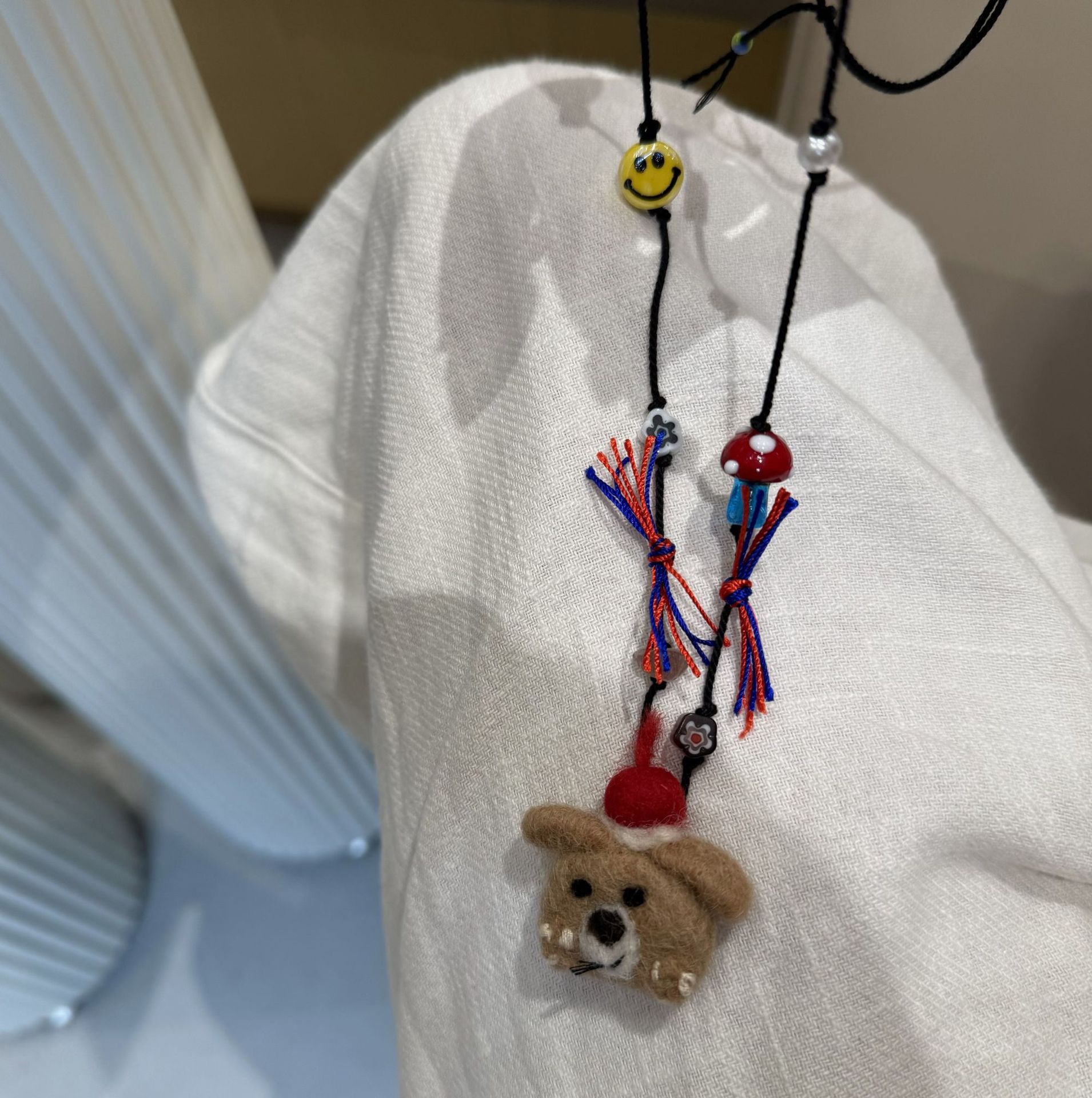 Color: Dog wool felt necklace drawstring