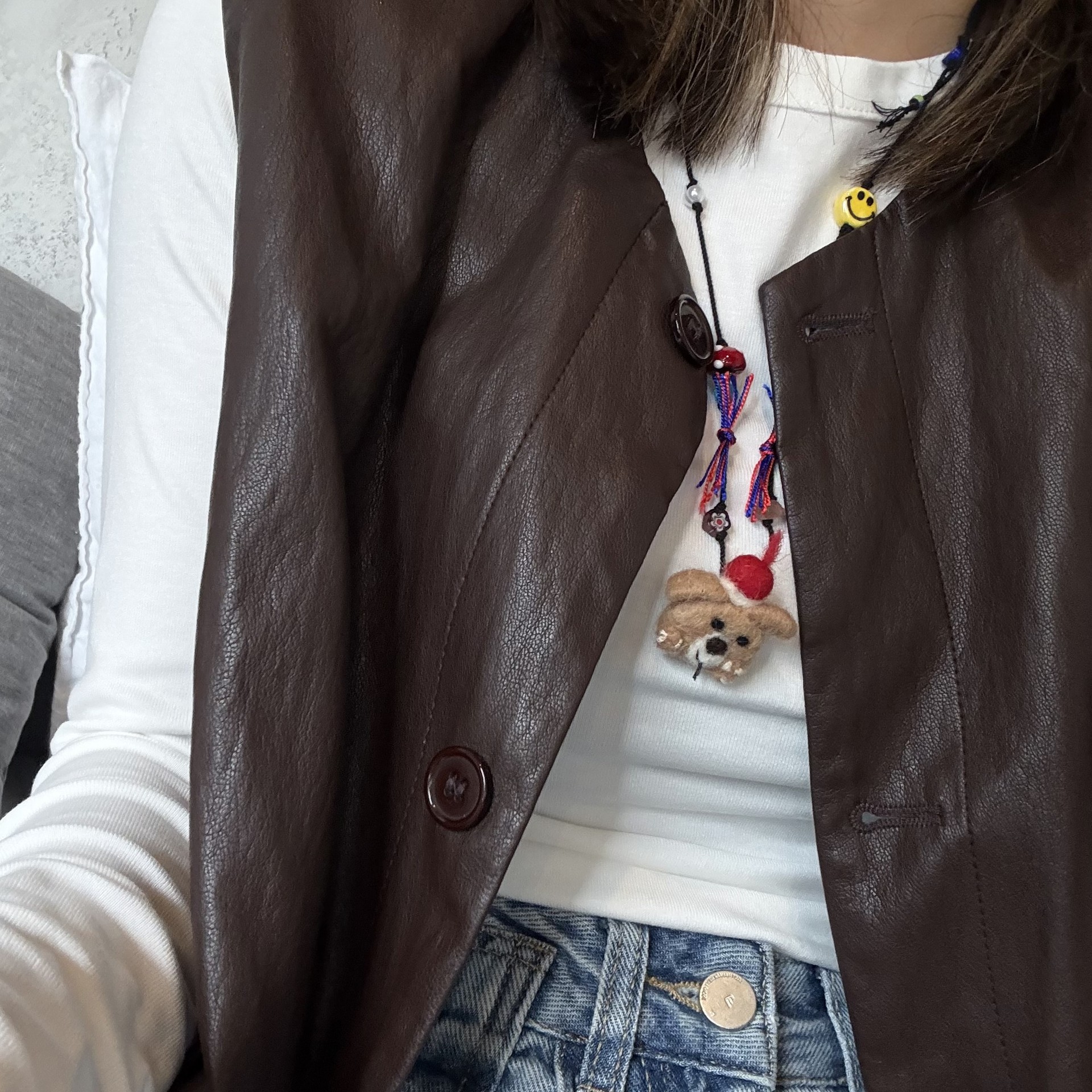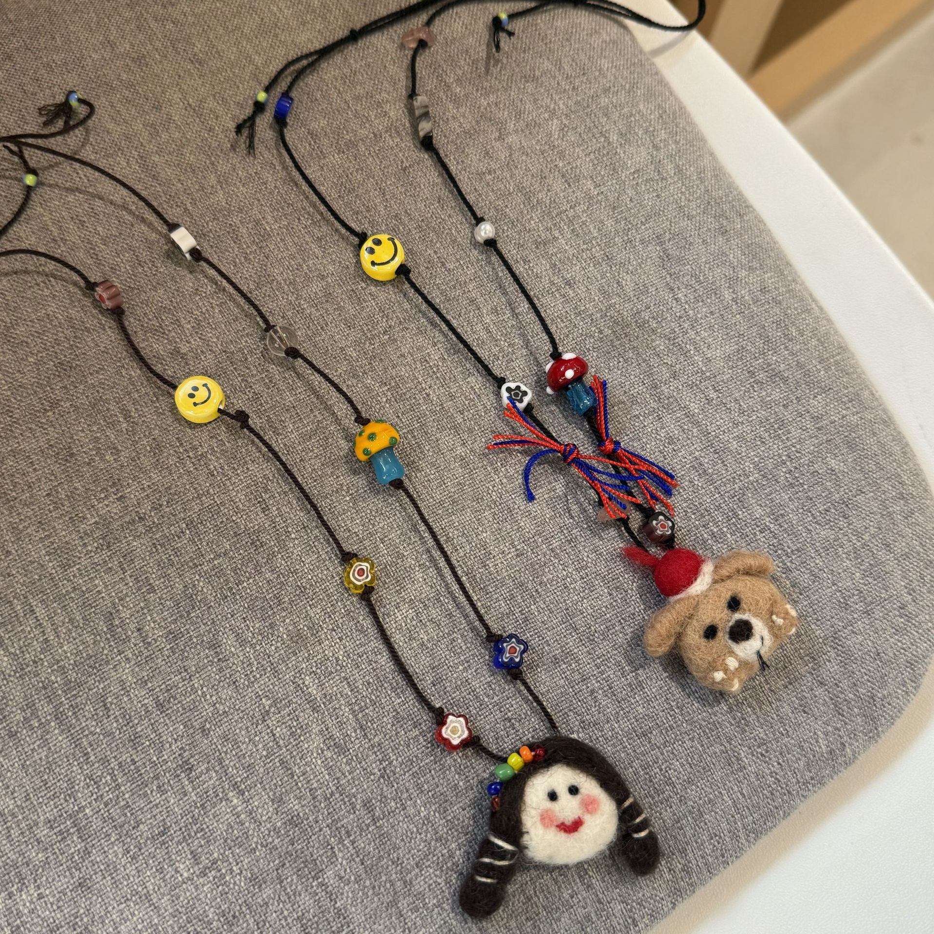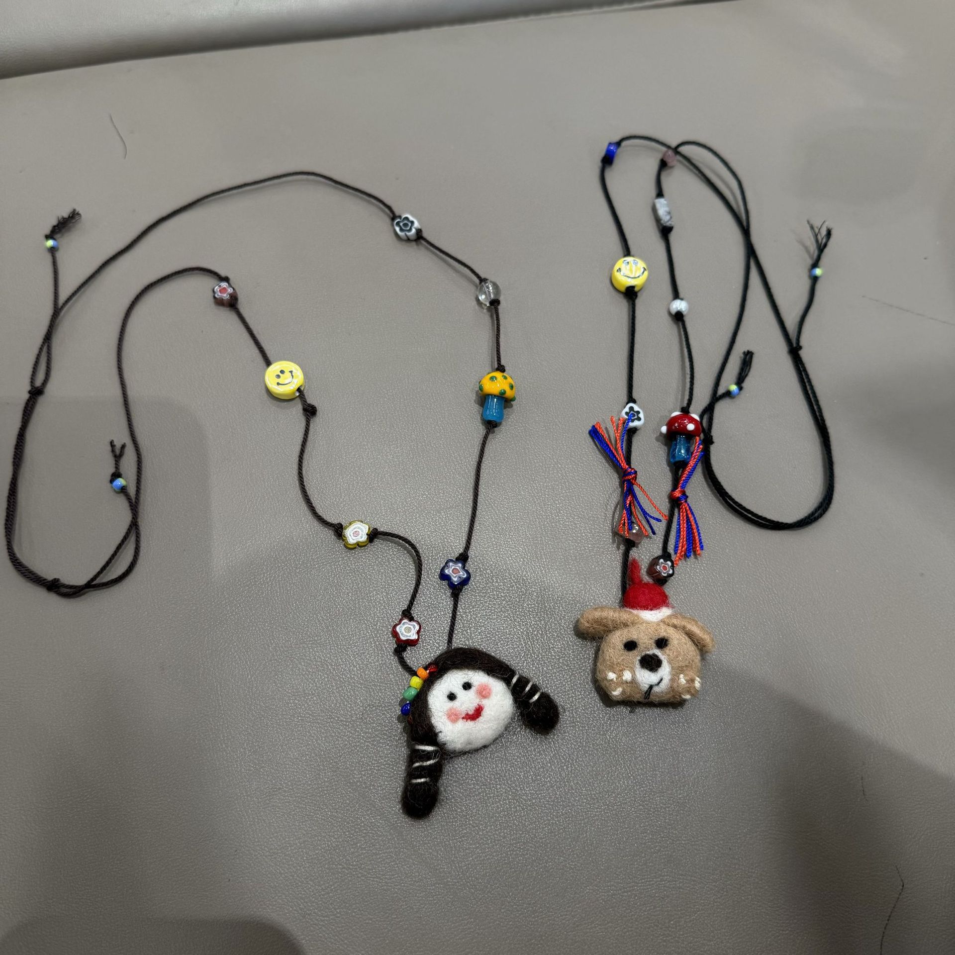 Dog wool felt necklace drawstring