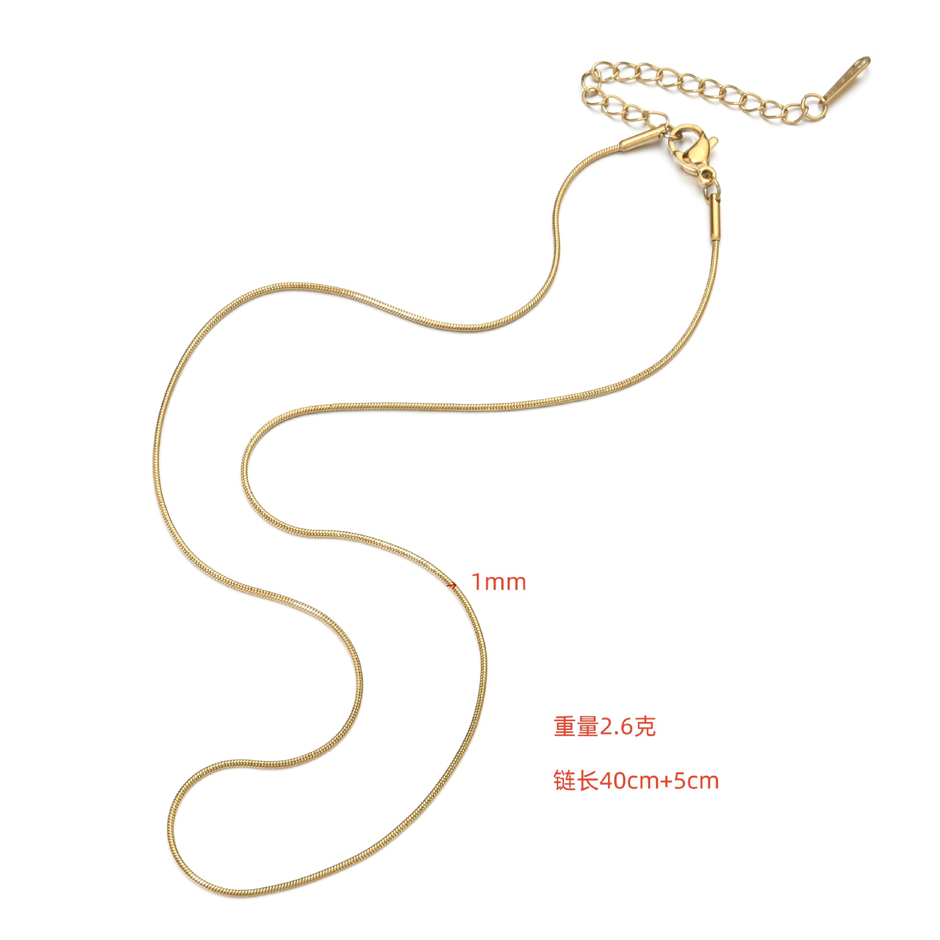 Color: Lt006 [gold round snake chain] 40cm+5cm